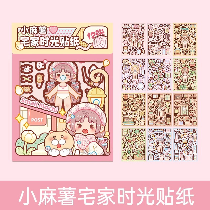 小麻薯宅家时光贴纸包小女孩换装贴纸儿童玩具手账贴纸卡通小贴画