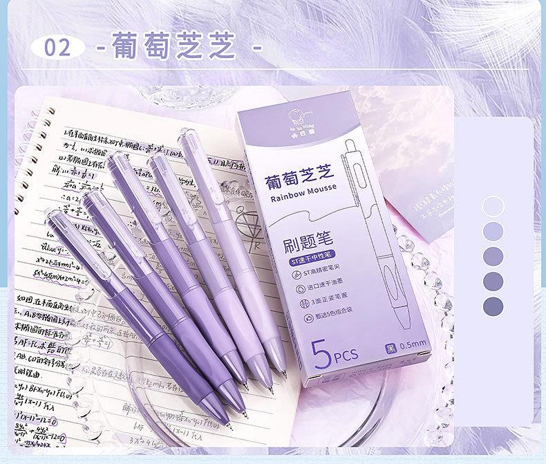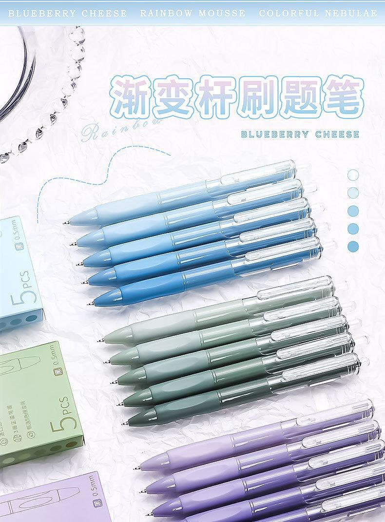 咔巴熊ins按动中性笔ST笔尖学生考试刷题笔少女渐变色速干0.5黑笔