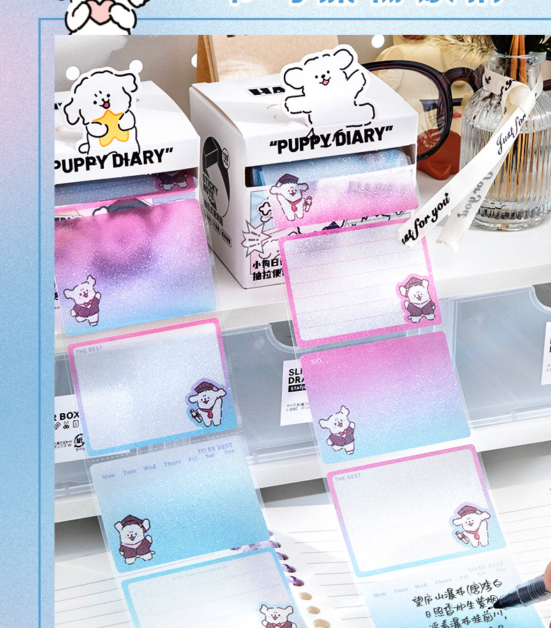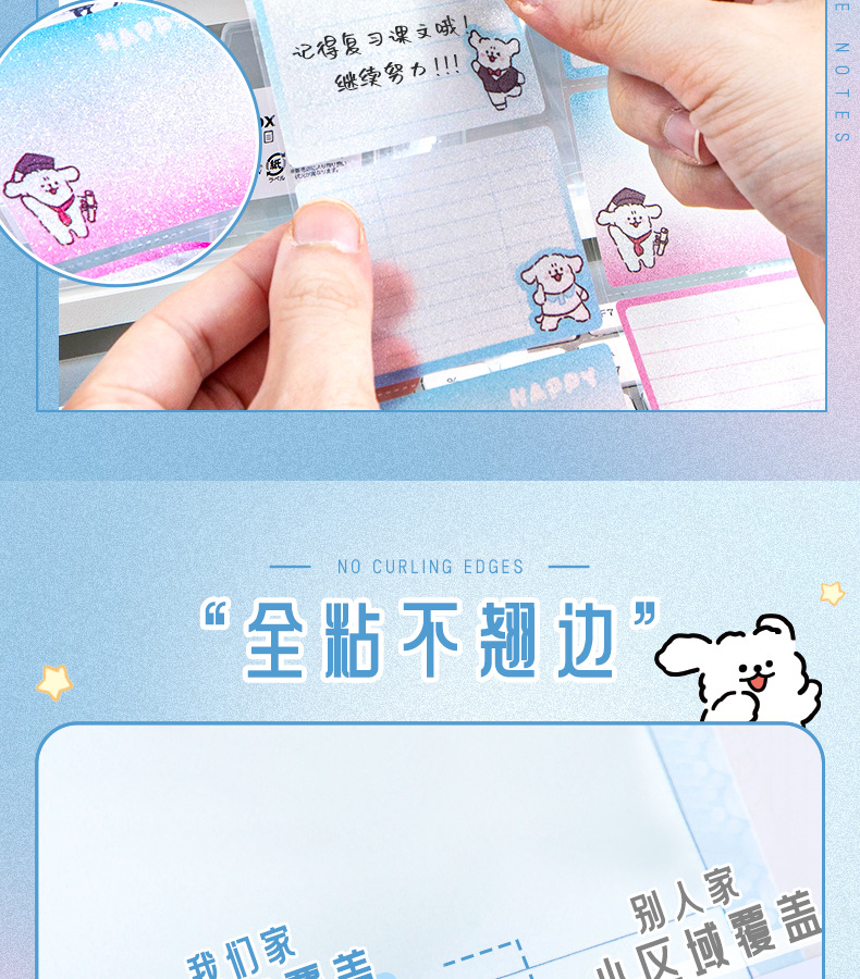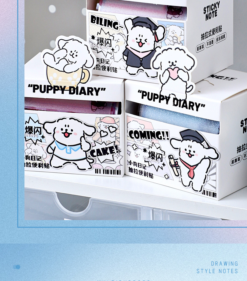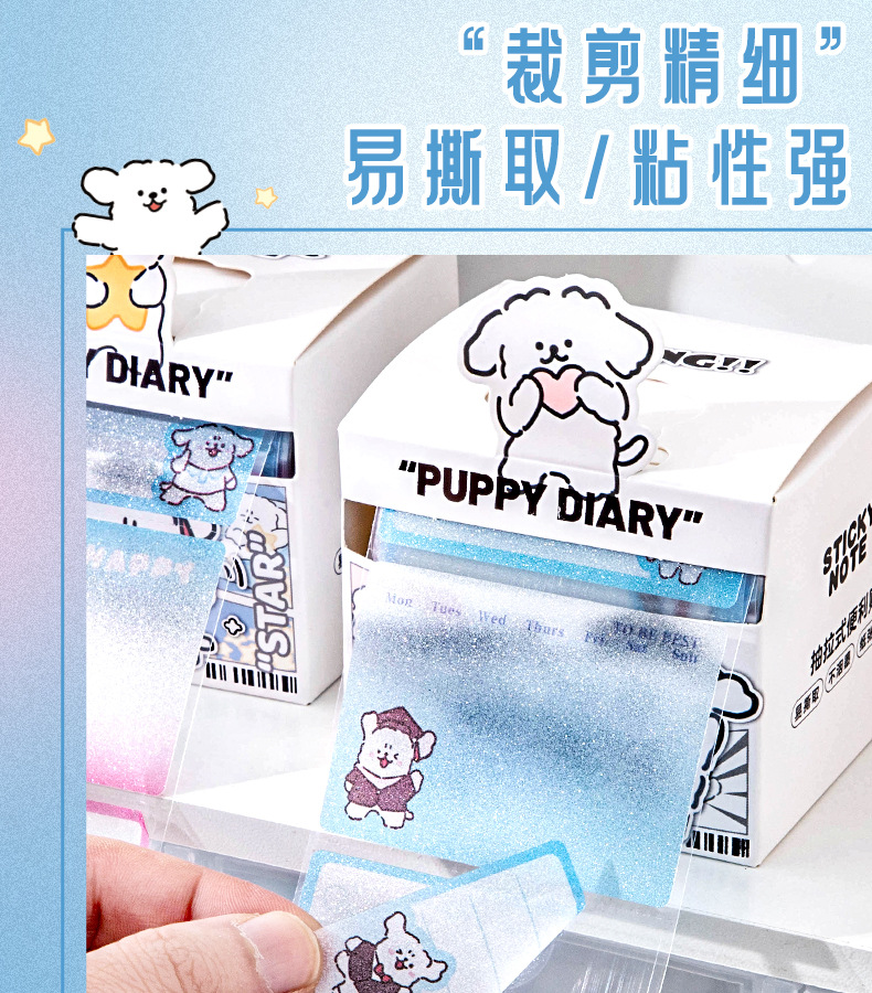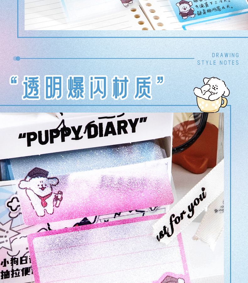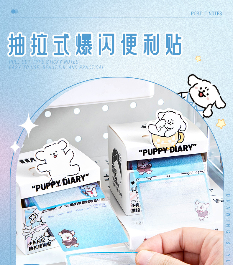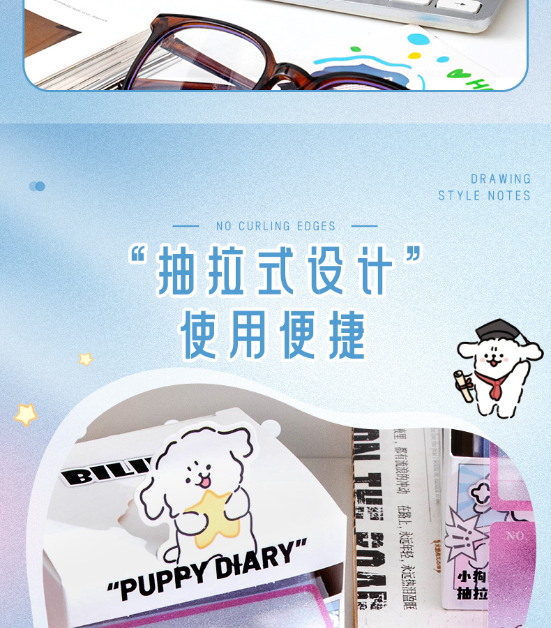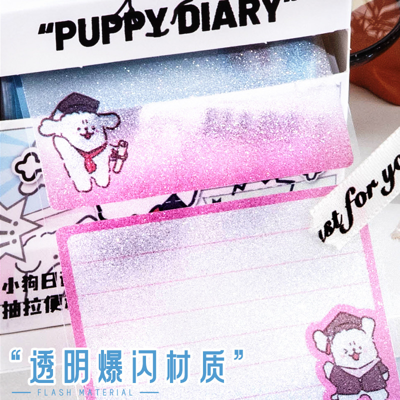 小狗乐园抽拉式便利贴高颜值爆闪便签贴纸学生用全粘性索引标签贴