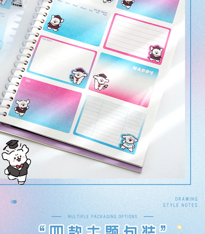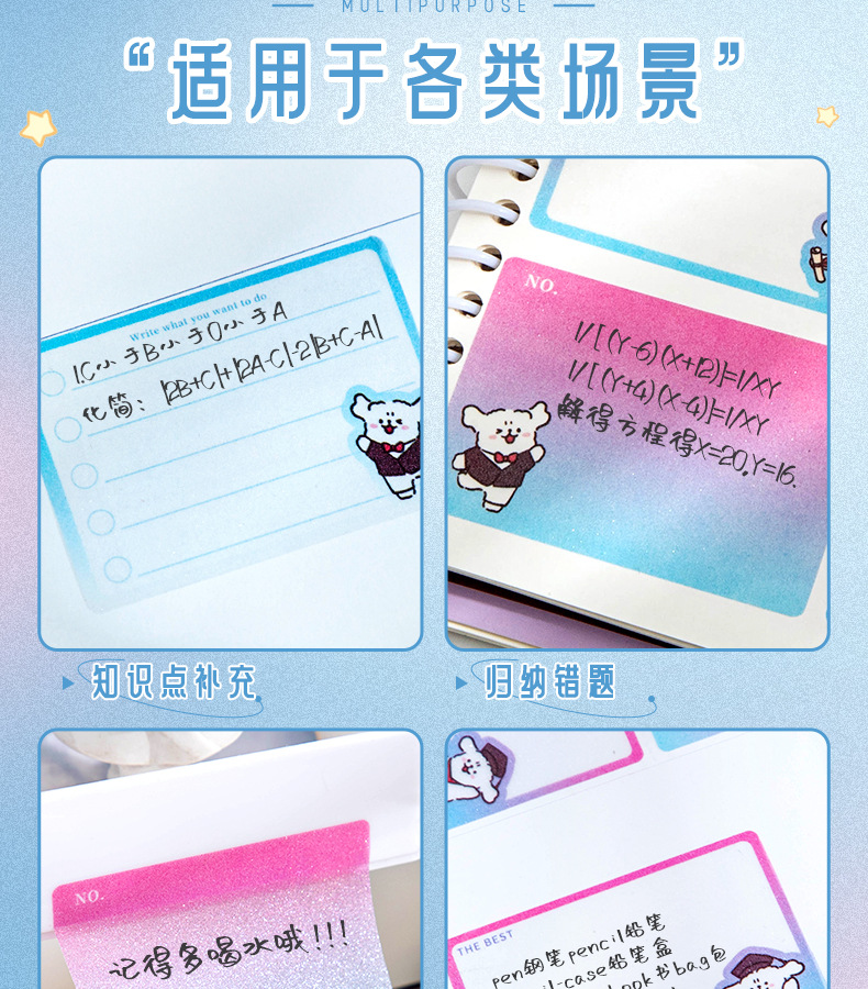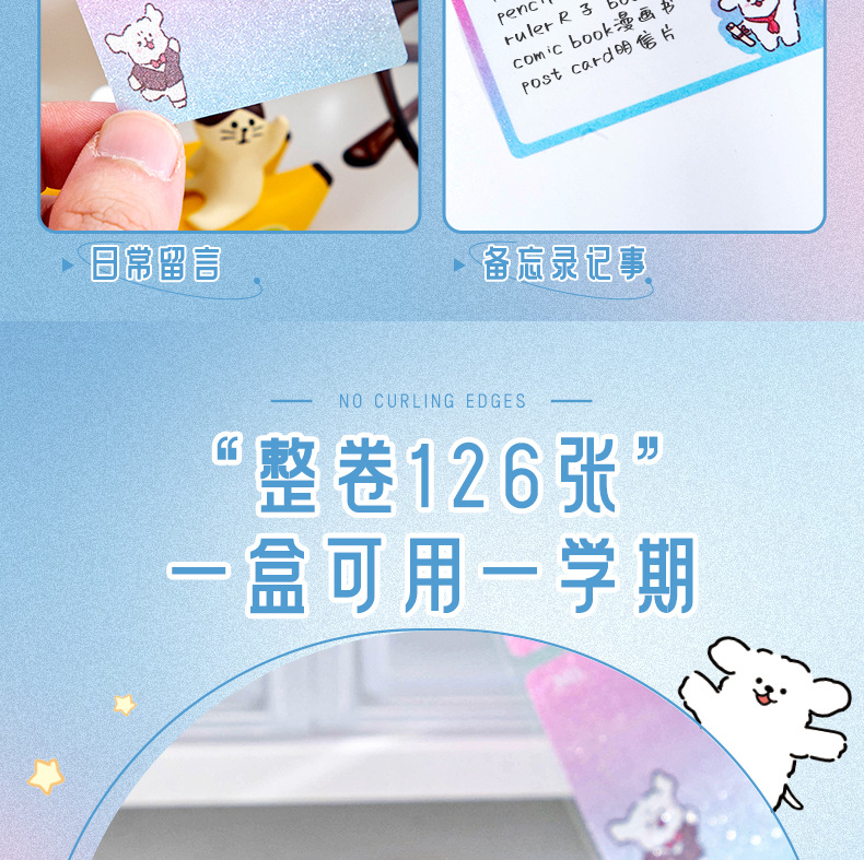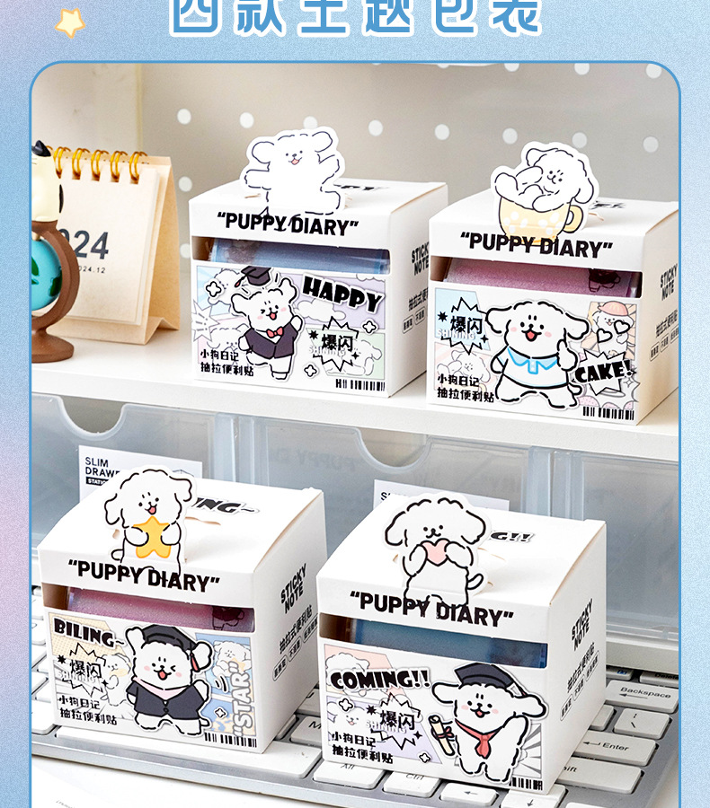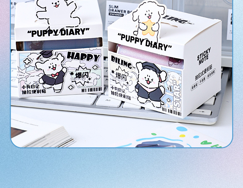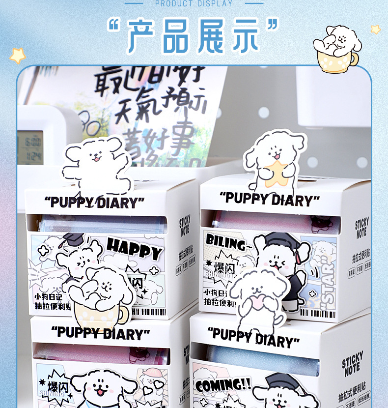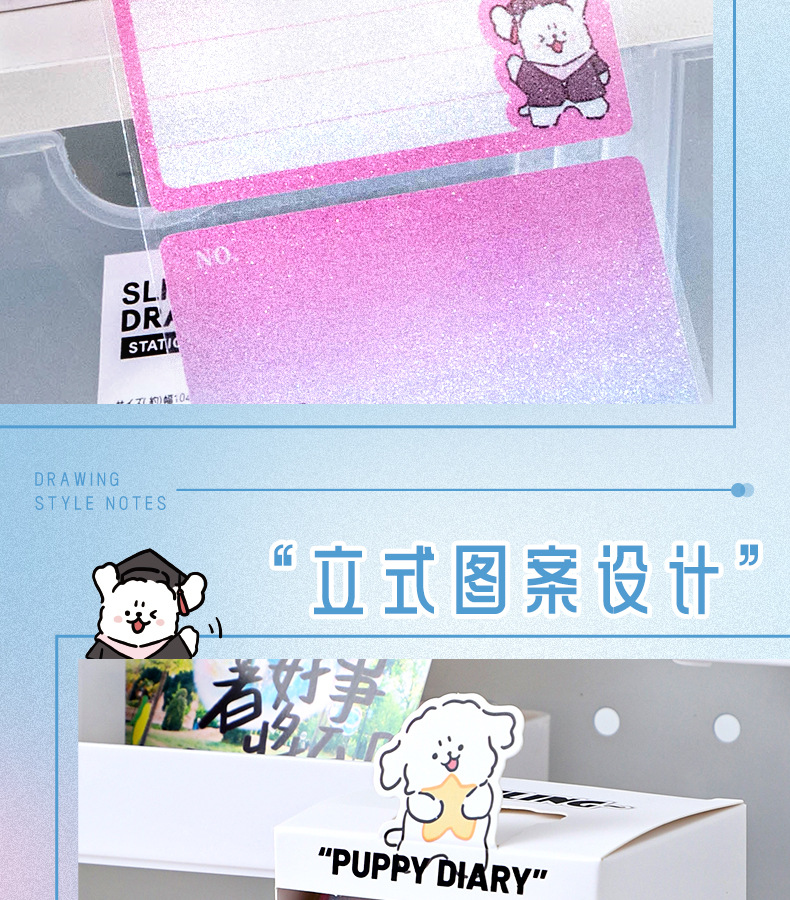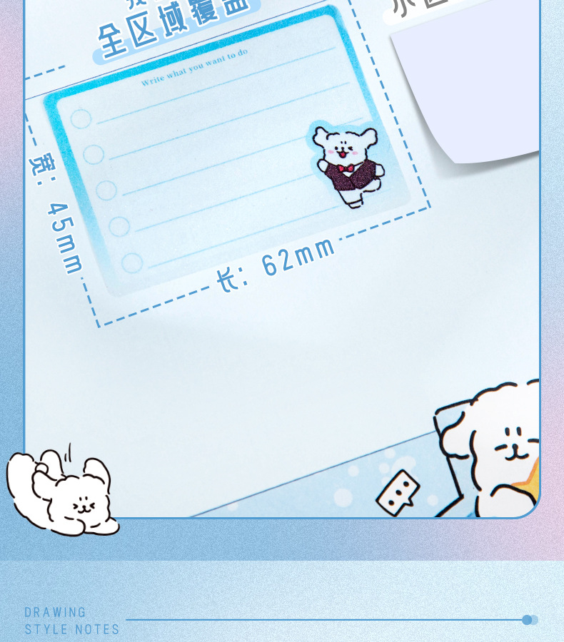 小狗乐园抽拉式便利贴高颜值爆闪便签贴纸学生用全粘性索引标签贴