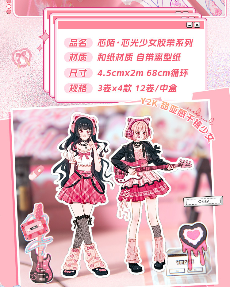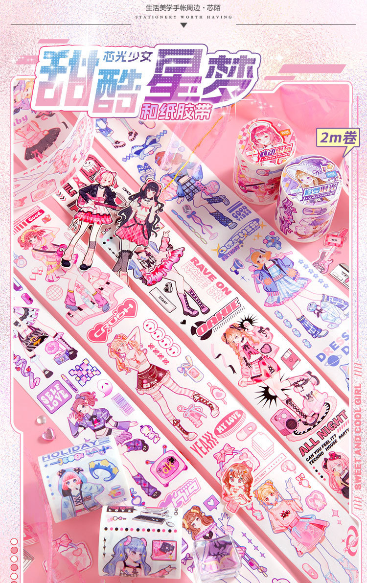 芯陌芯光少女手账胶带贴纸新款高颜值手账胶带可爱和纸胶带素材纸