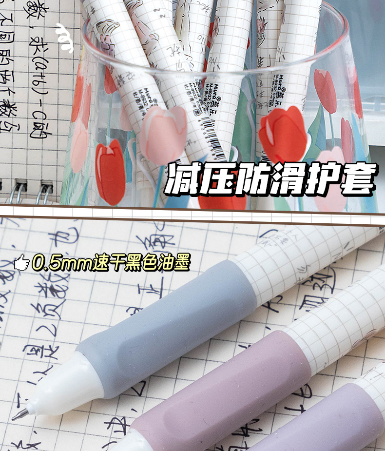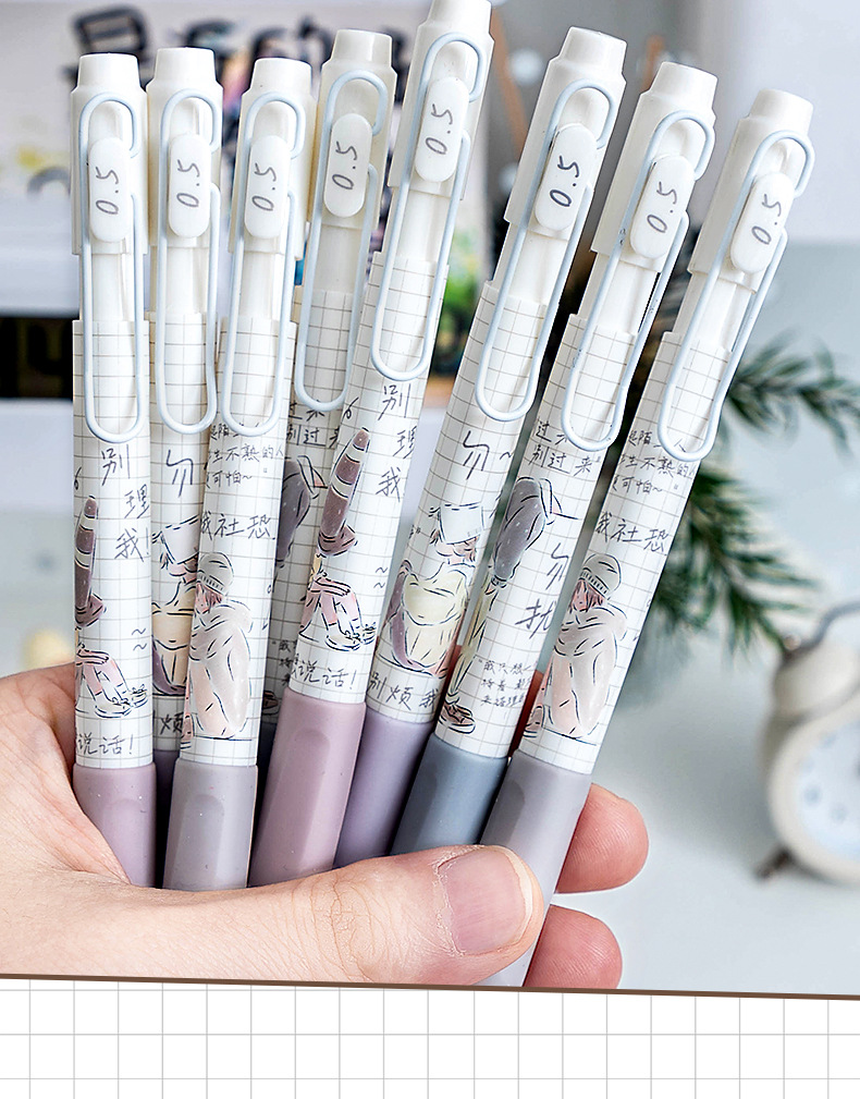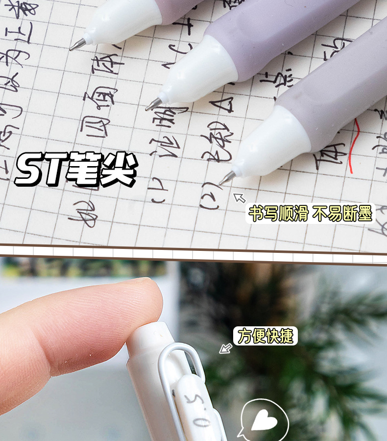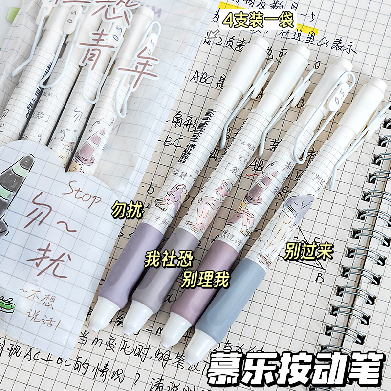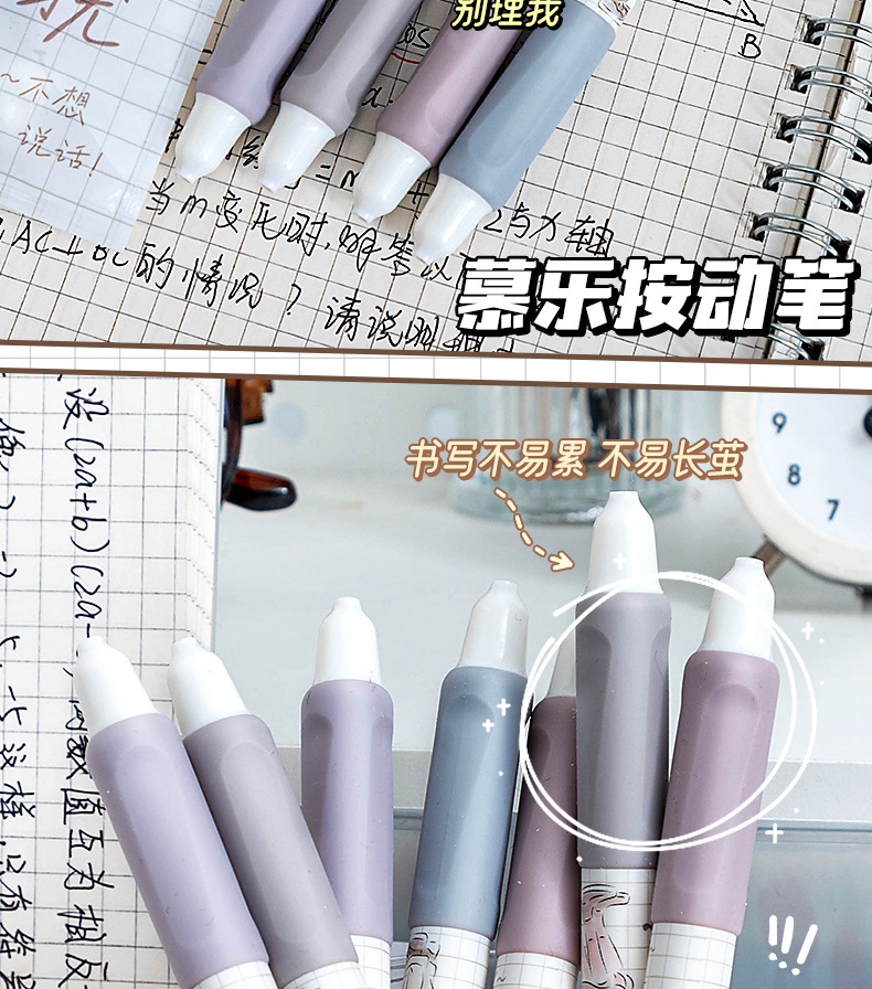 慕乐8932新款莫兰迪社恐青年创意按压式速干刷题笔ST头0.5中性笔