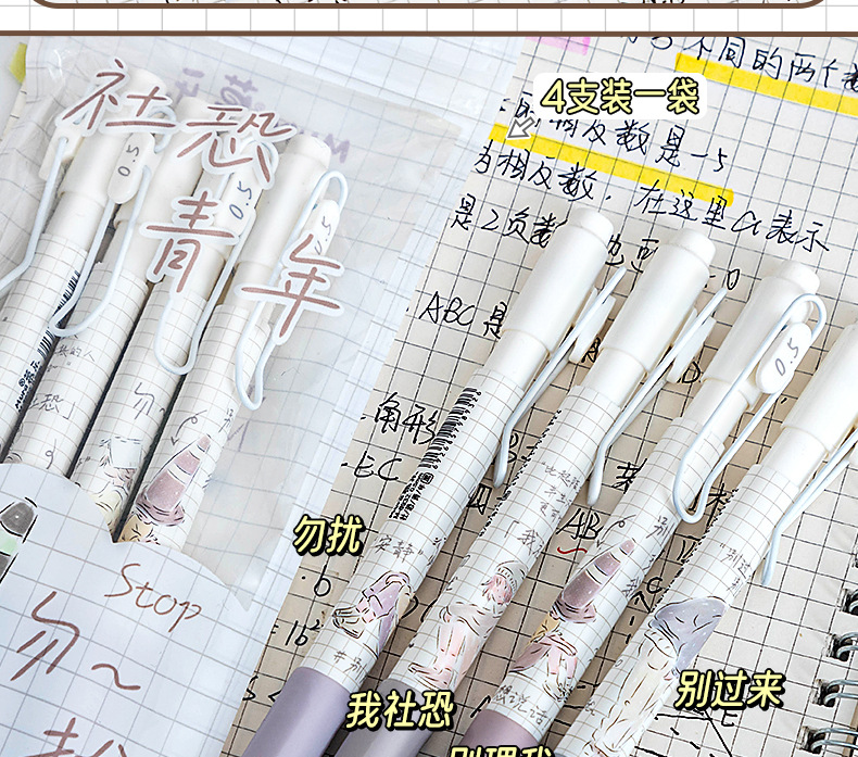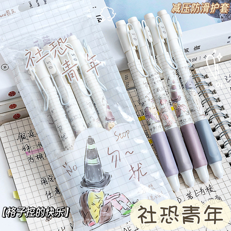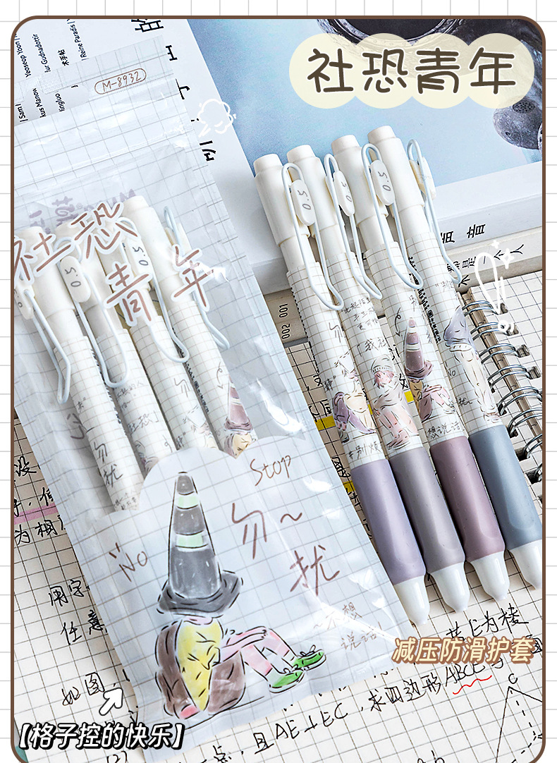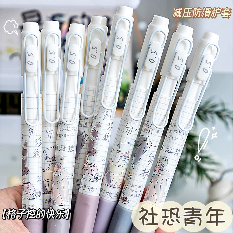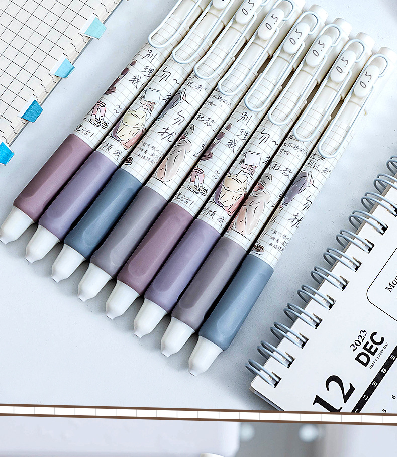 慕乐8932新款莫兰迪社恐青年创意按压式速干刷题笔ST头0.5中性笔