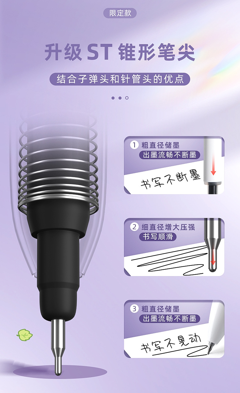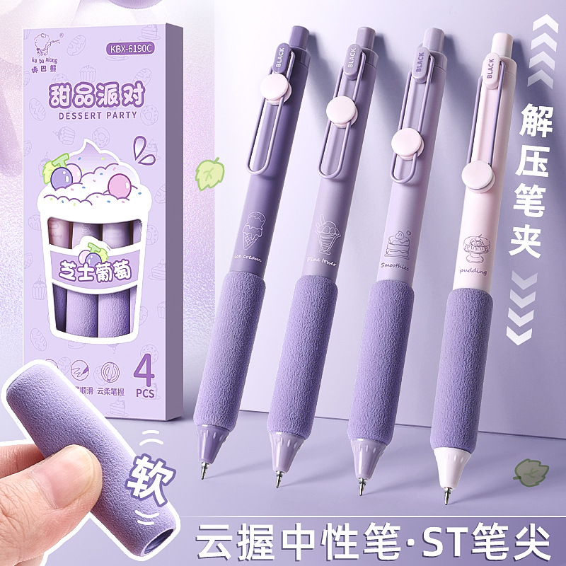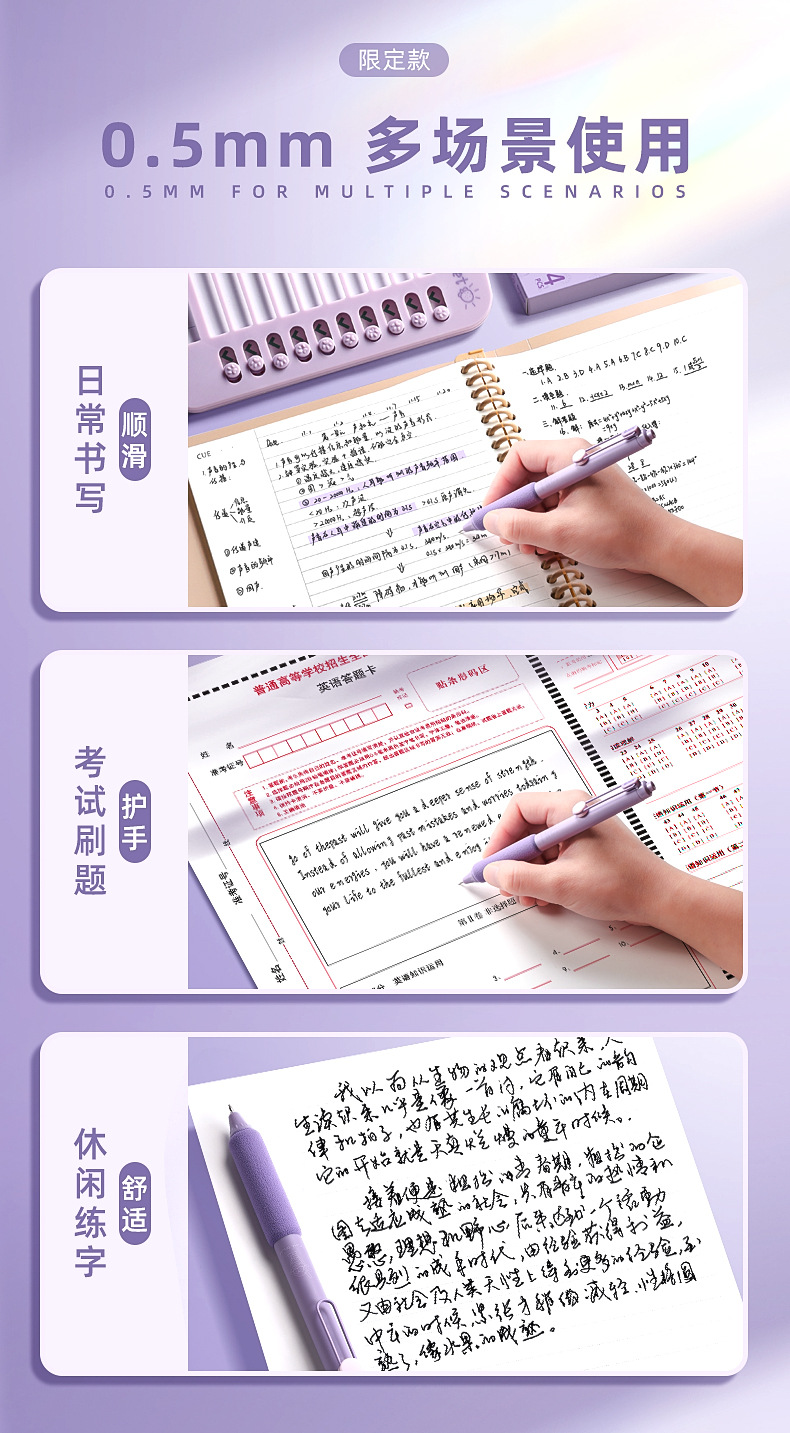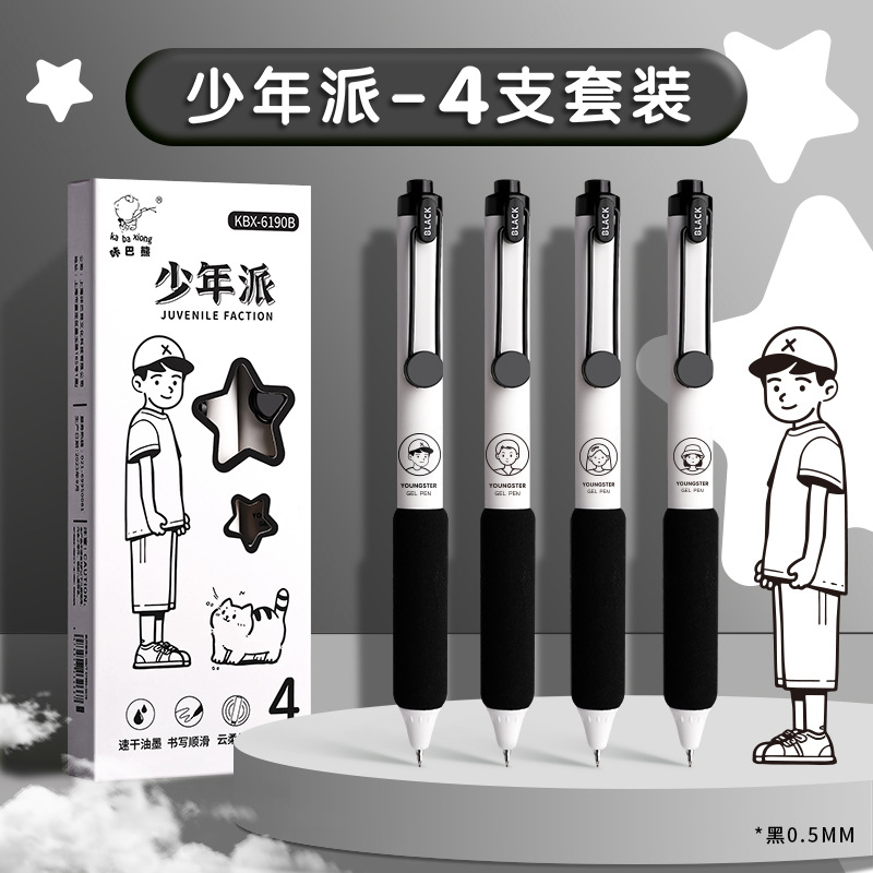 咔巴熊软握刷题笔ST笔头按动中性笔速干考试专用黑色水笔签字笔芯