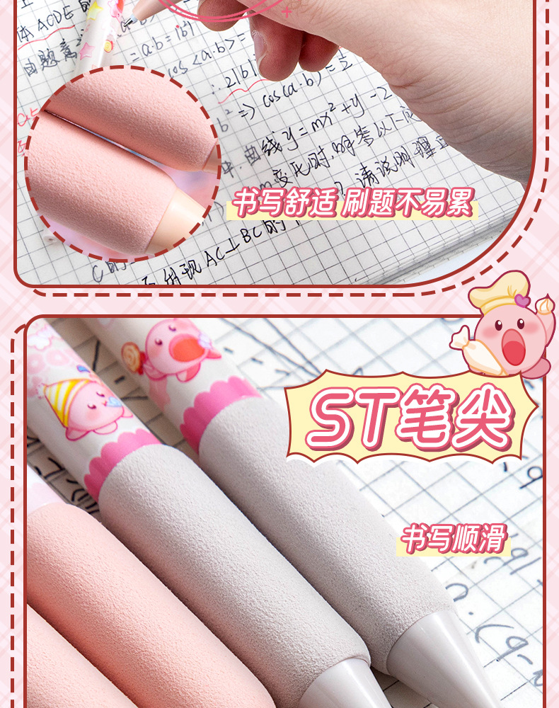 可爱中性笔软欧包笔海绵护套按动笔学生减负笔ST头刷题笔速干笔芯