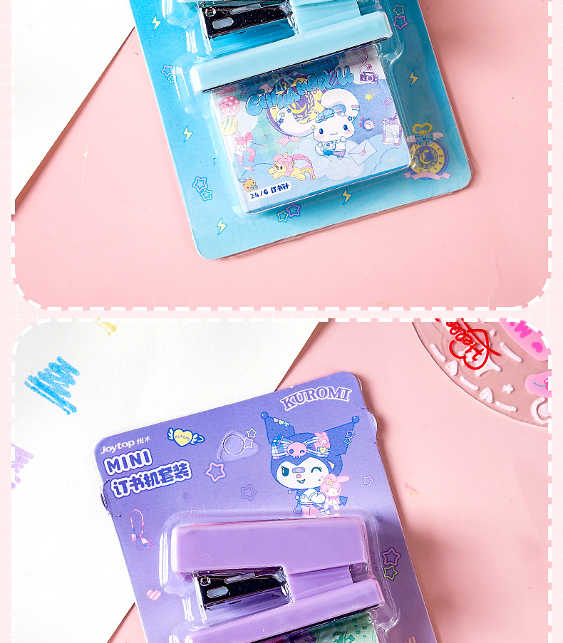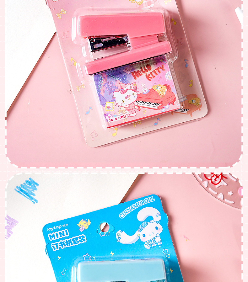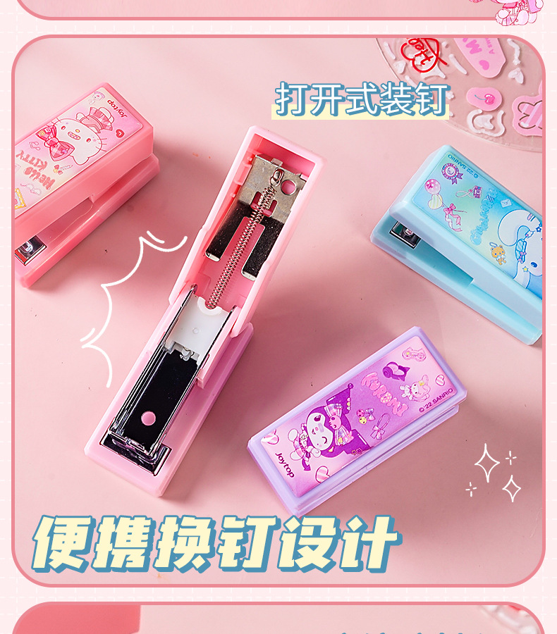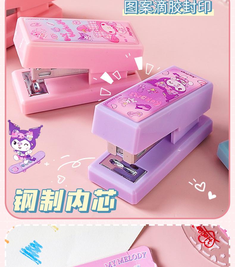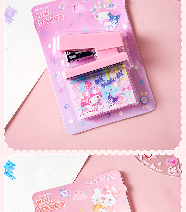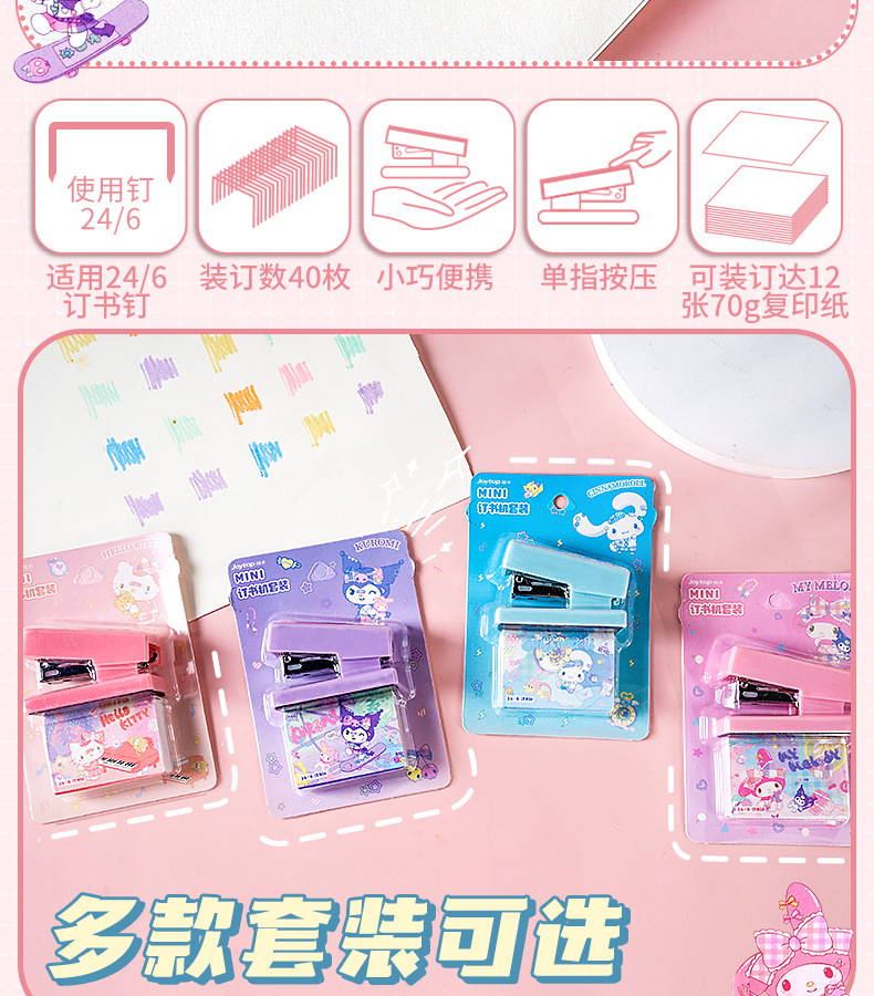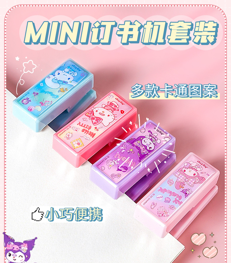 悦木三丽鸥迷你小型订书机办公便携式儿童学生可爱少女心装订机