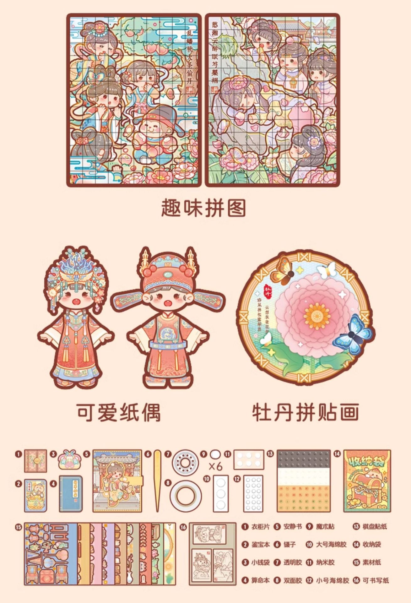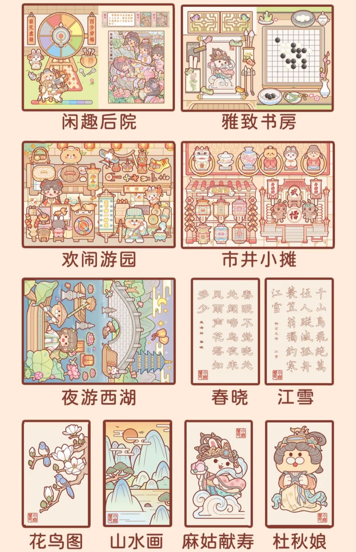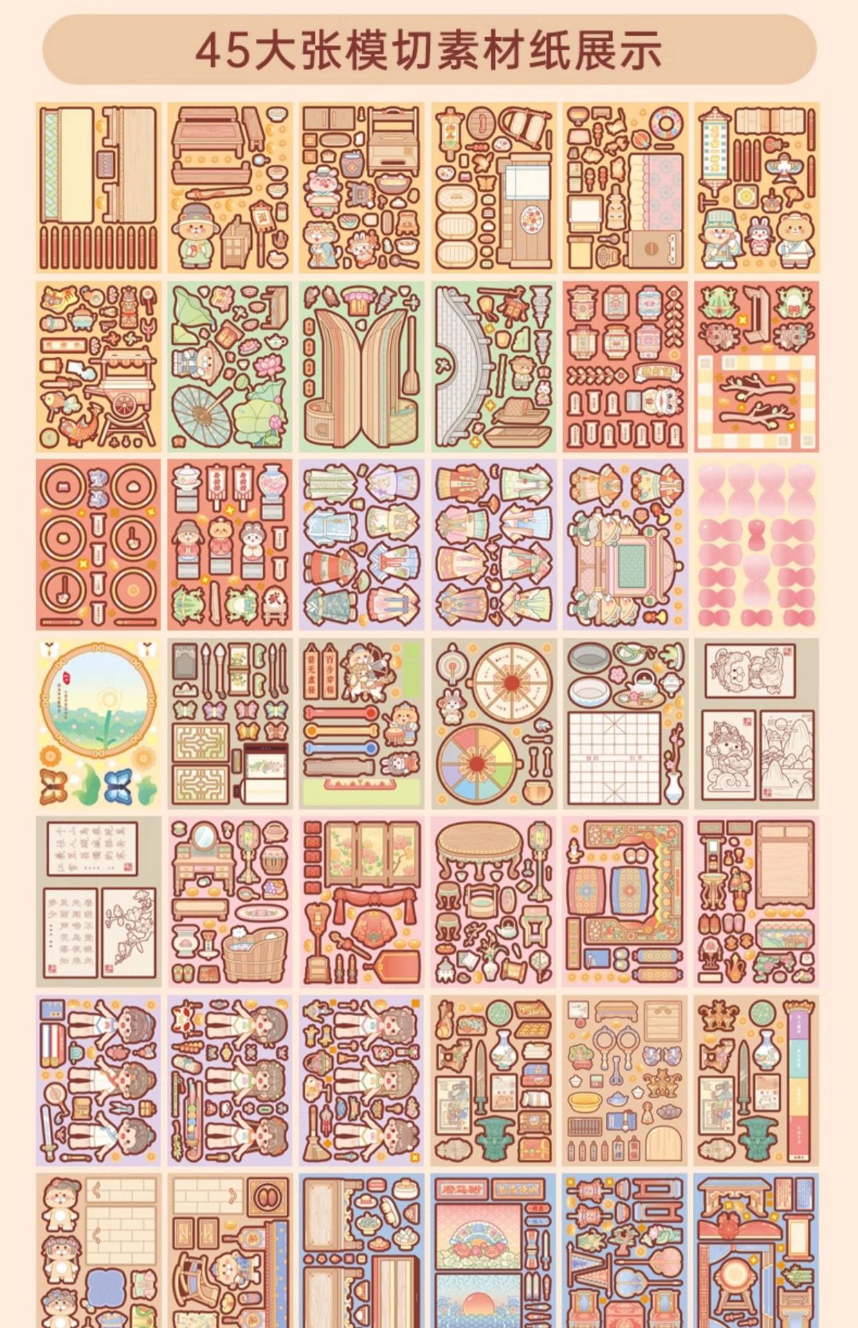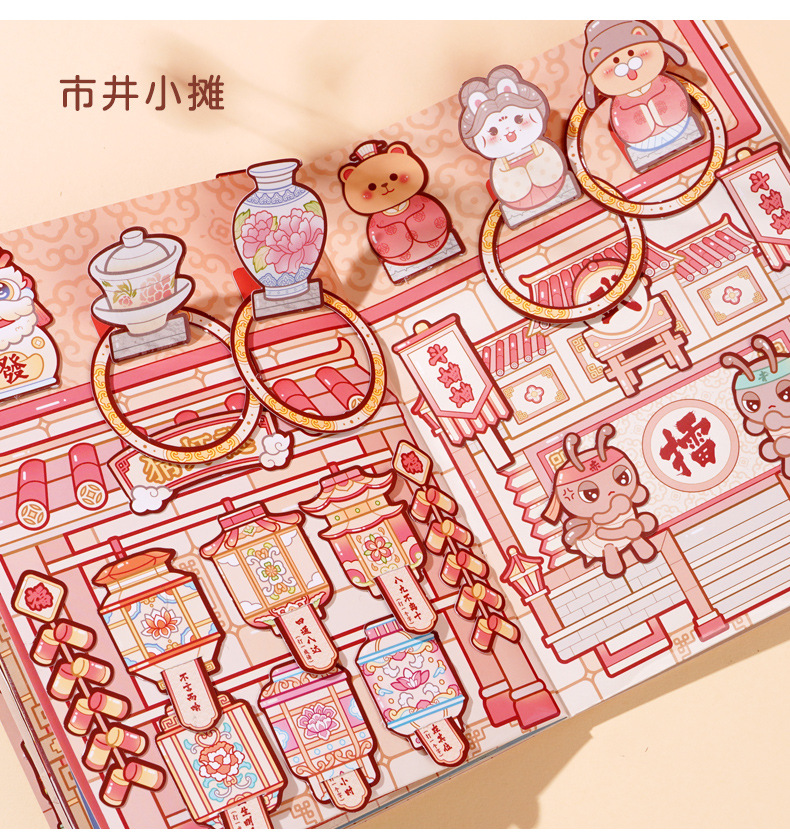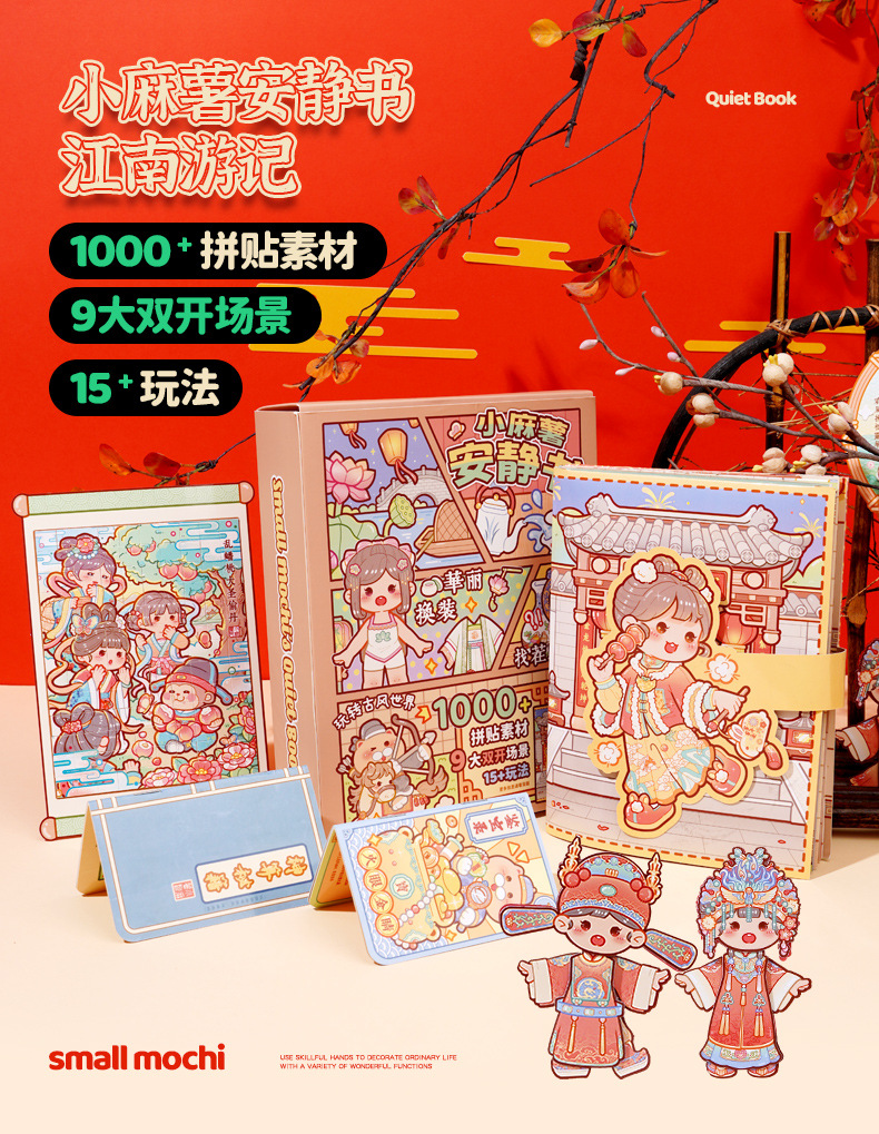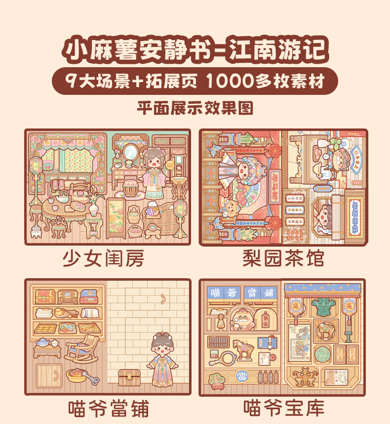 小麻薯DIY安静书贴纸江南游记手工书免裁剪立体场景换装贴纸装饰