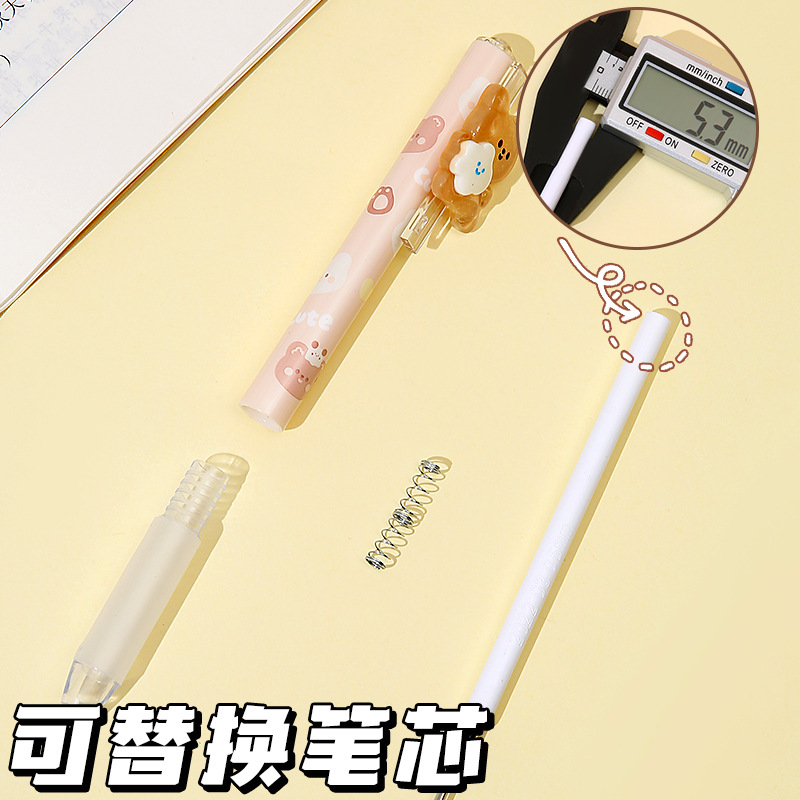 尤美甜筒熊按动中性笔学生可爱冰淇淋小熊刷题笔少女心贴片笔黑笔