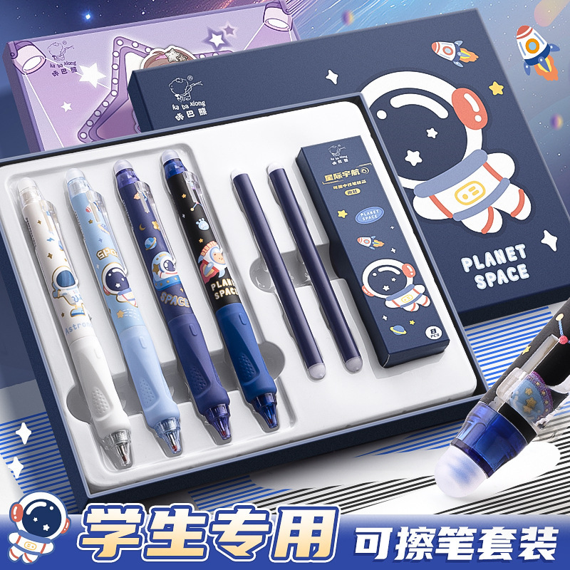 咔巴熊可擦中性笔小学生专用魔力擦笔摩乐擦黑色按动控笔热摩易擦