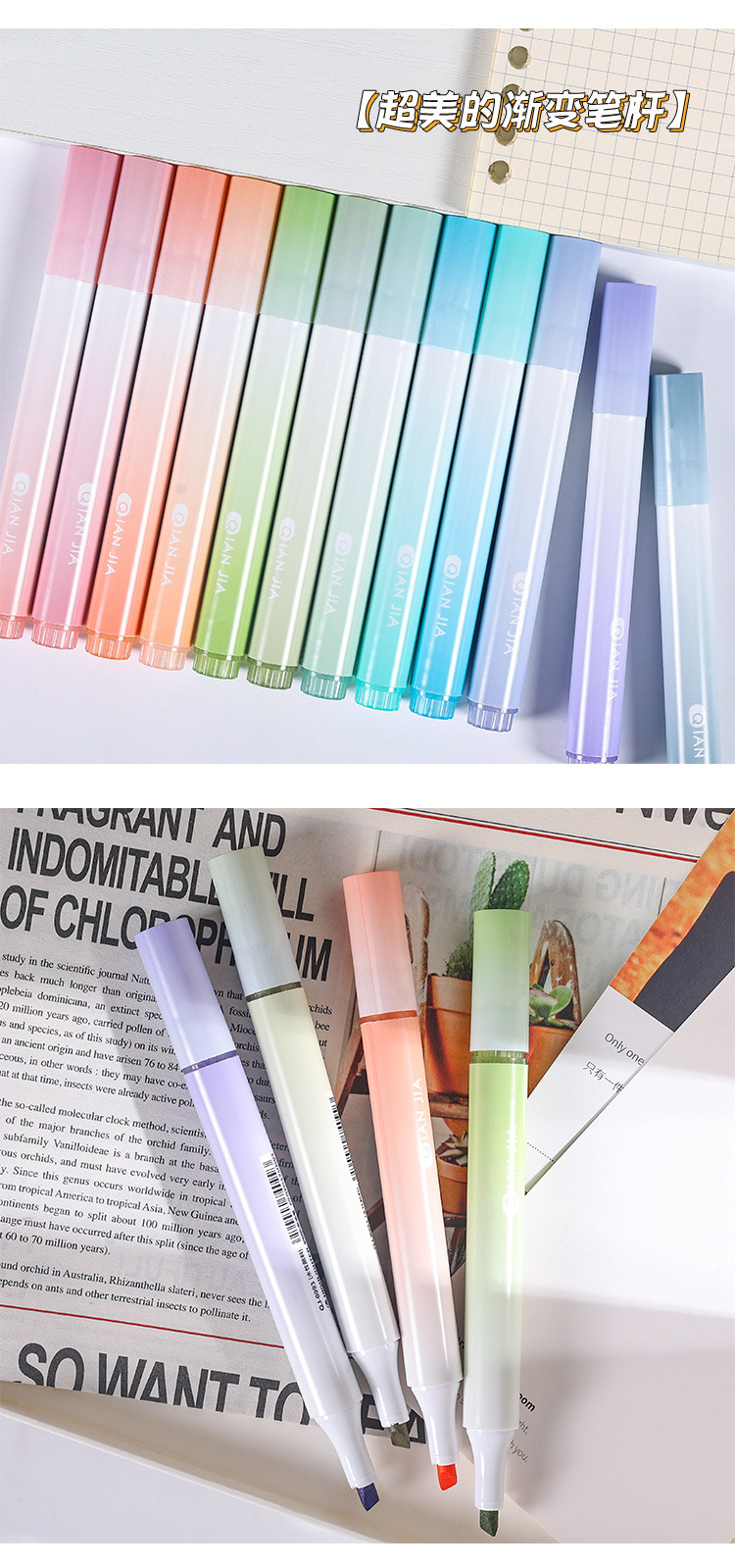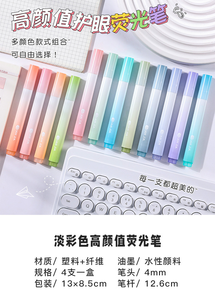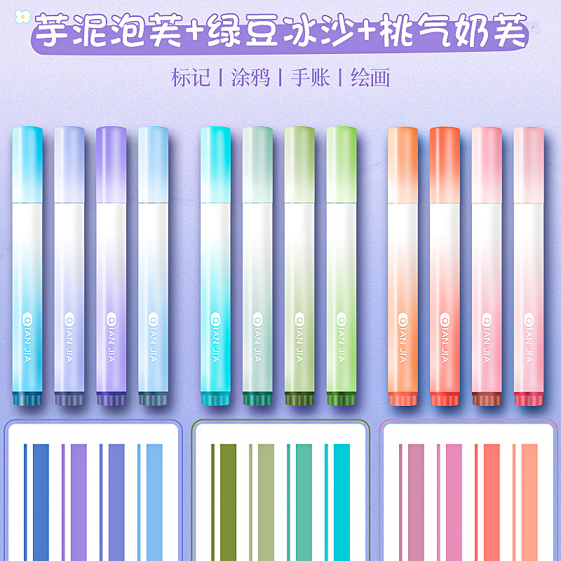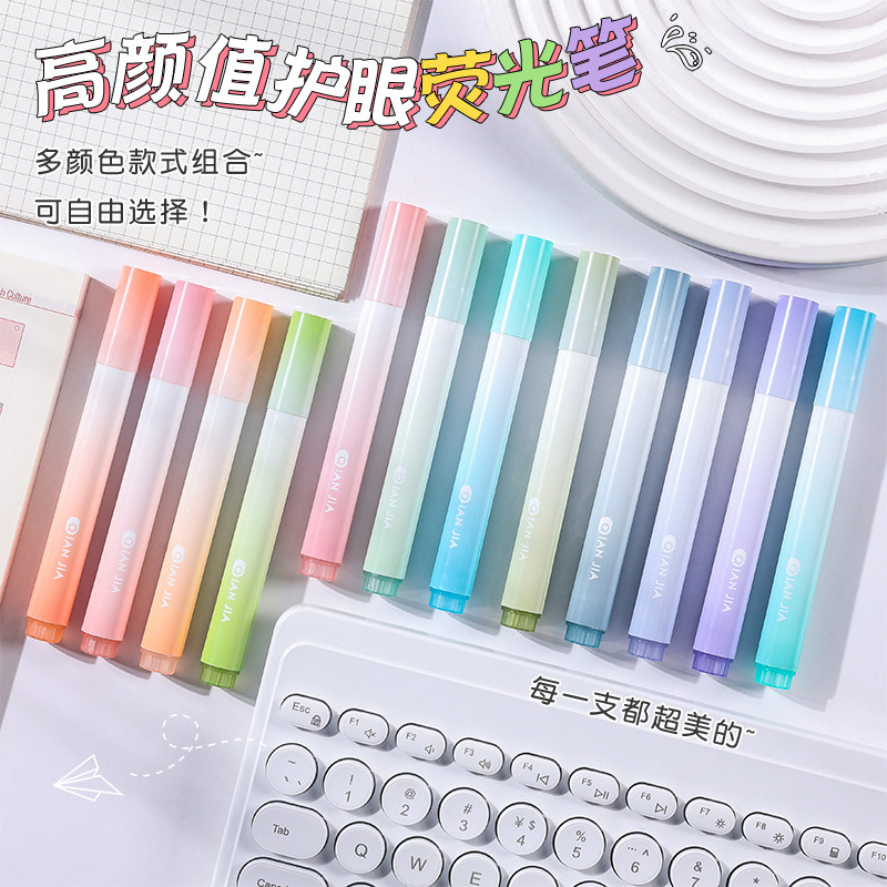 高颜值渐变色荧光笔标记笔学生用大容量记号笔彩色划重点彩色笔做