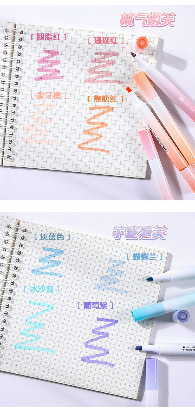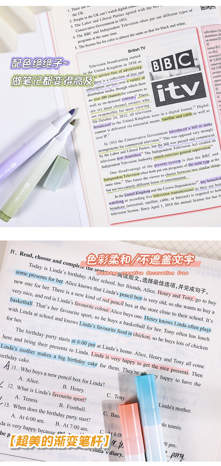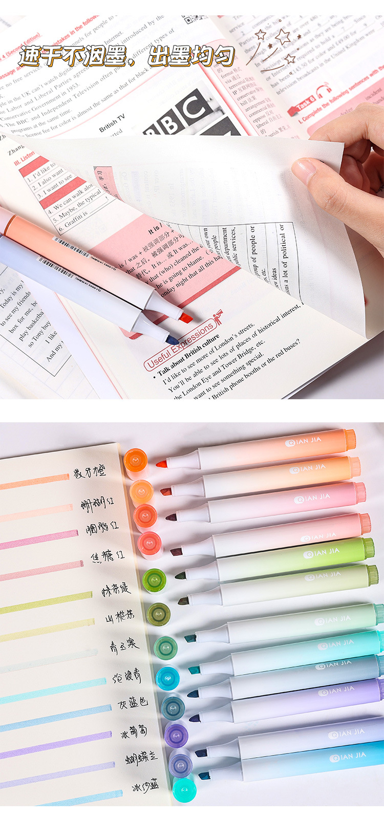 高颜值渐变色荧光笔标记笔学生用大容量记号笔彩色划重点彩色笔做