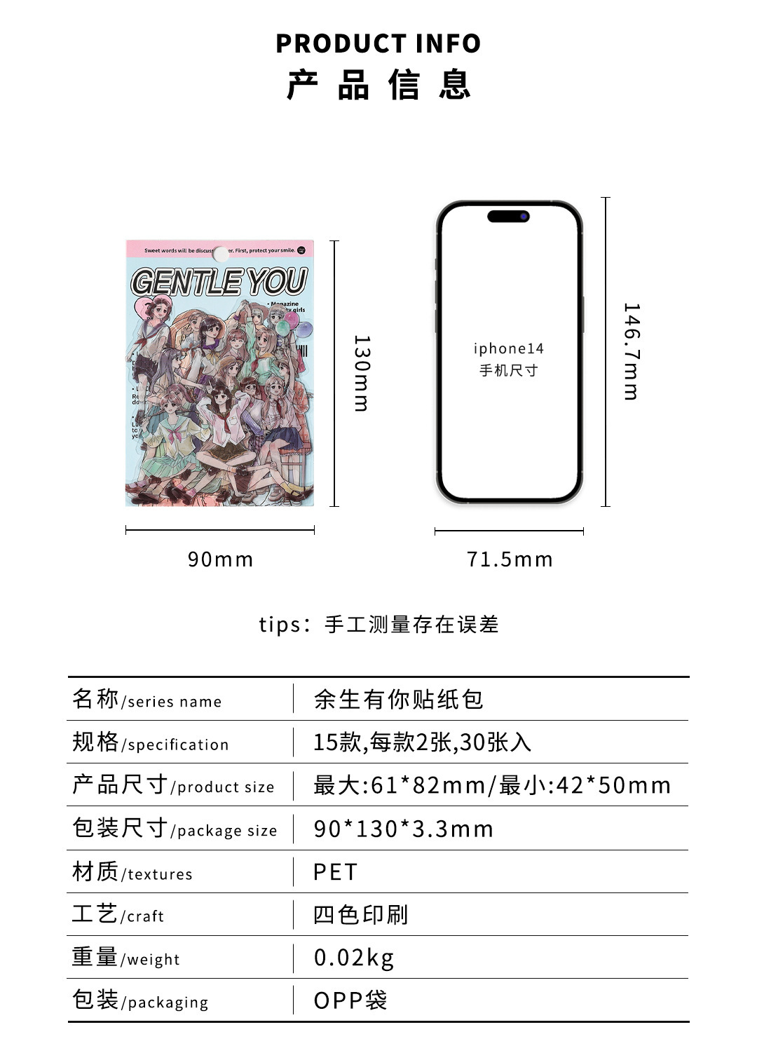 Infeel.Me余生有你系列PET贴纸包韩系可爱女孩手帐装饰相册装饰贴