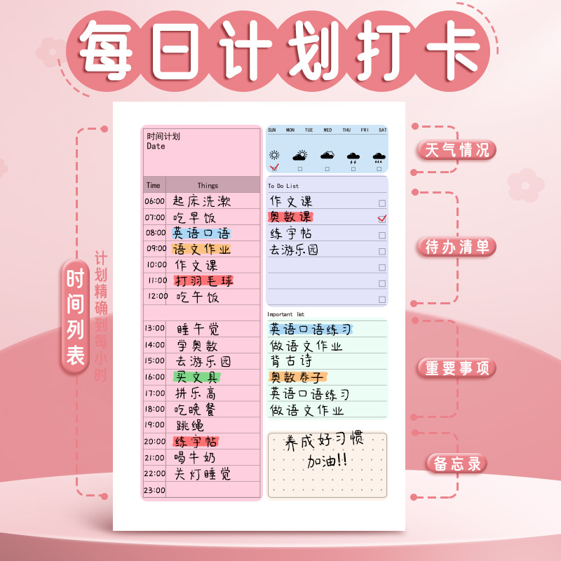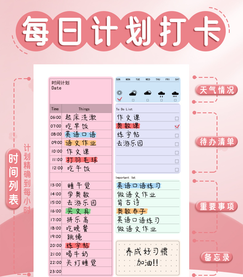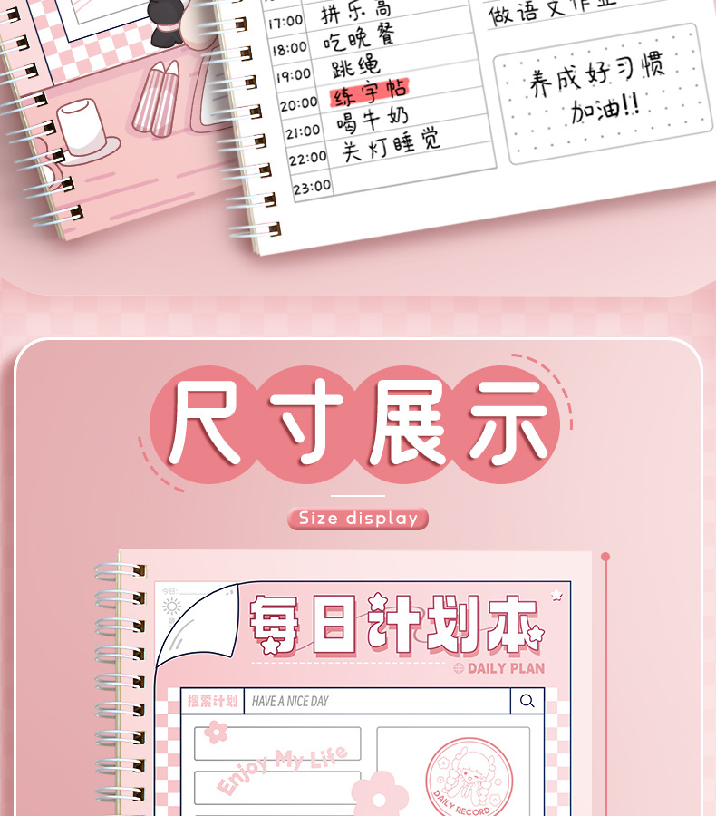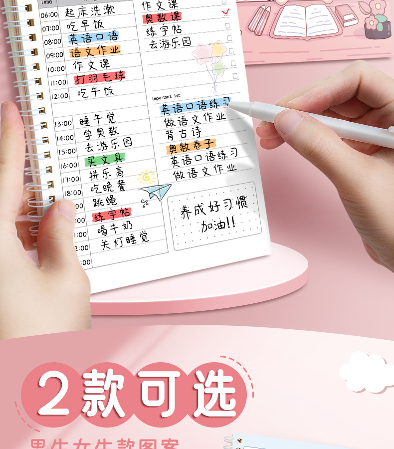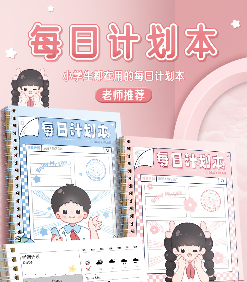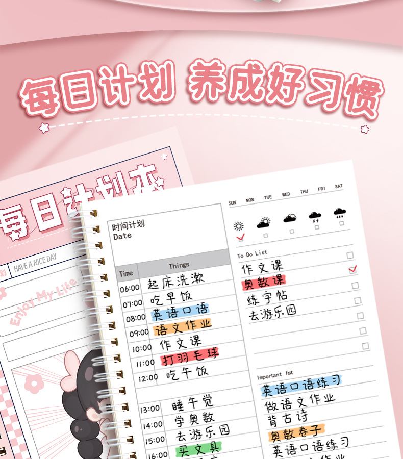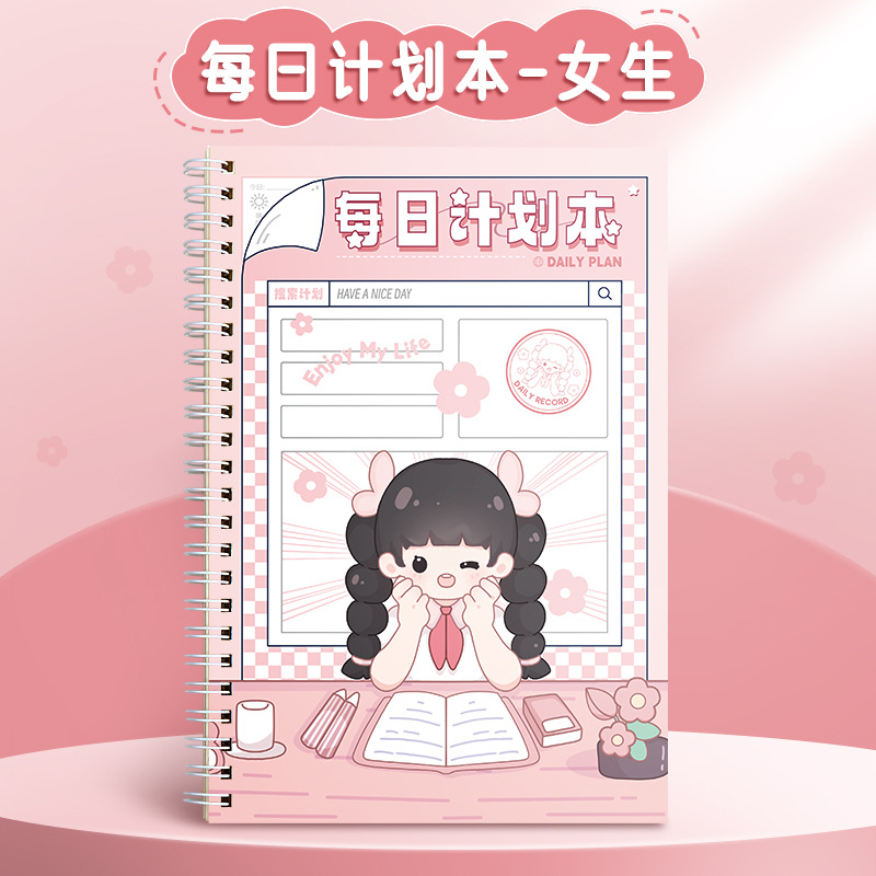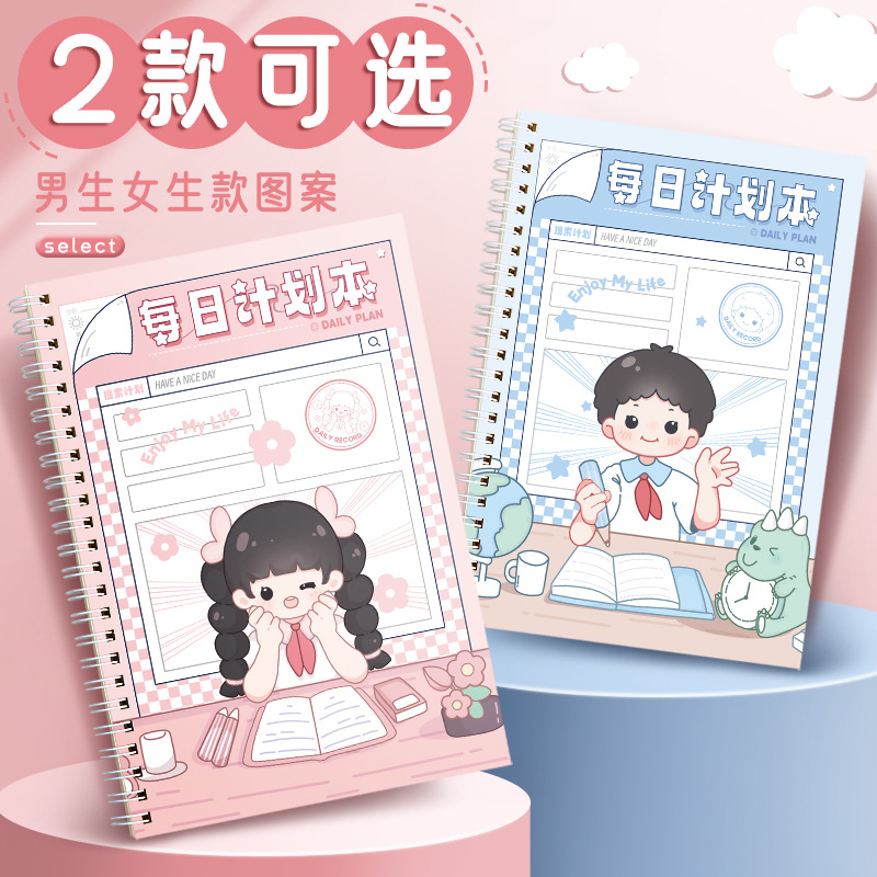 每日计划本自律打卡本日程表线圈笔记本子小学生时间管理规划本