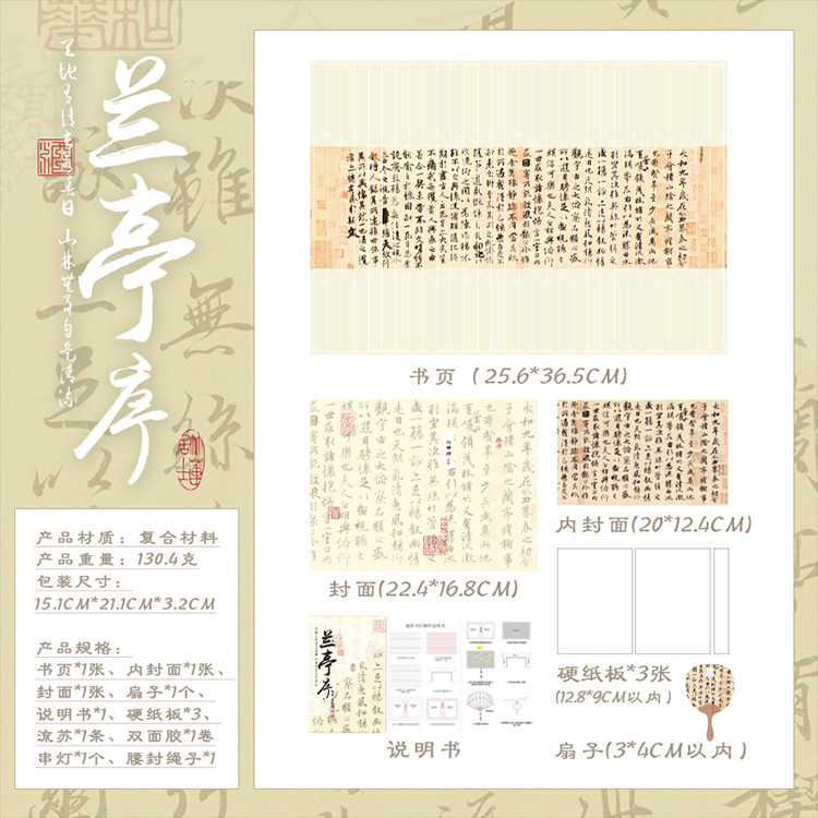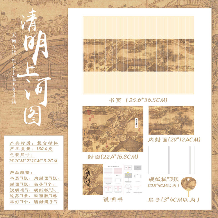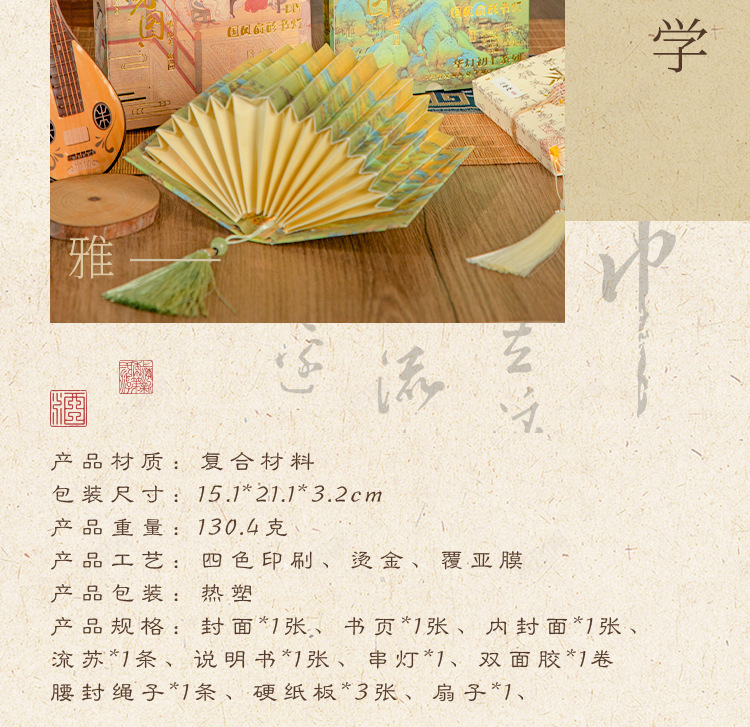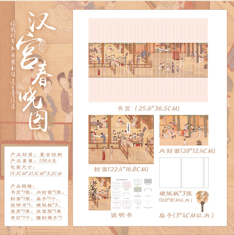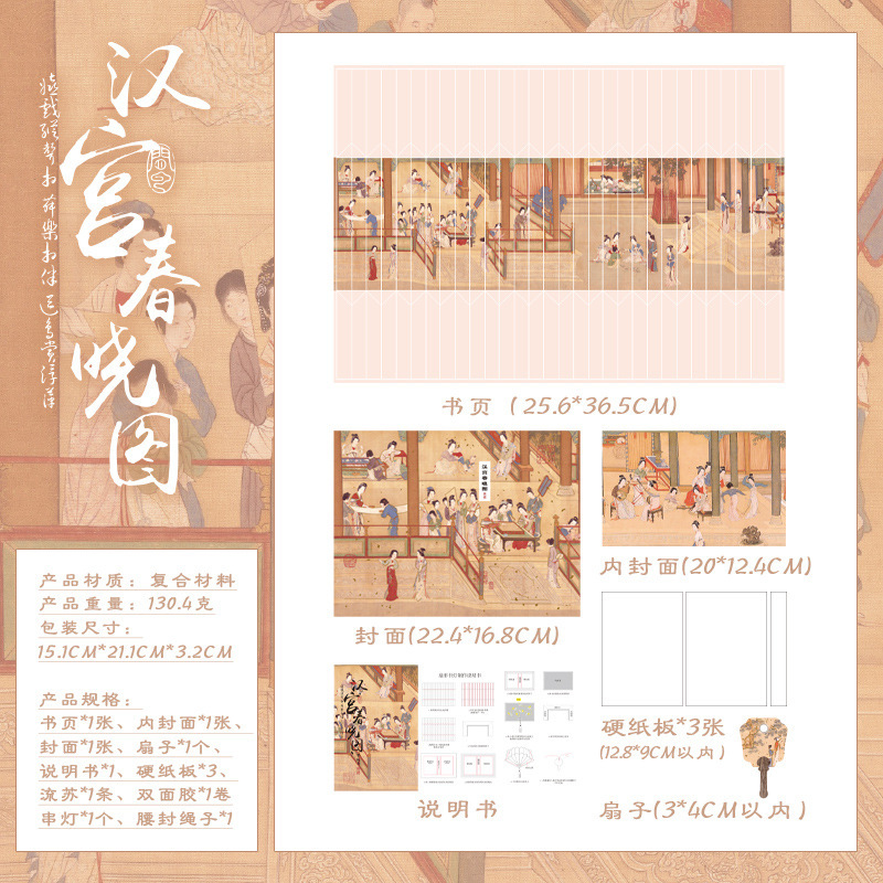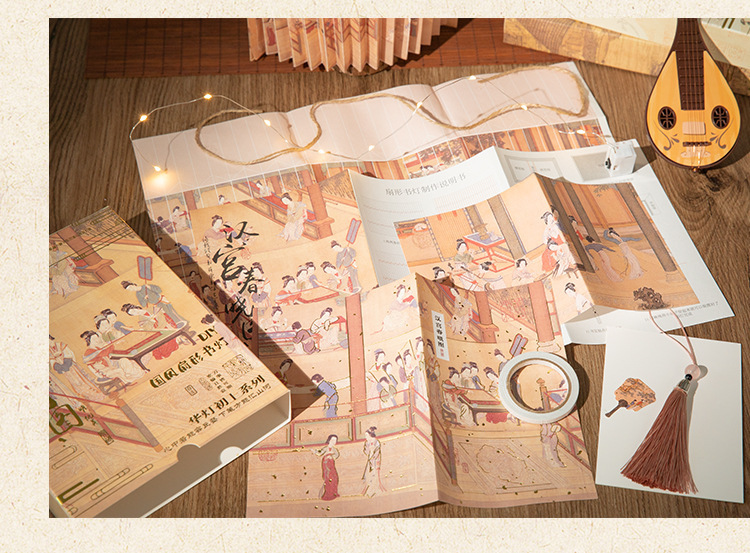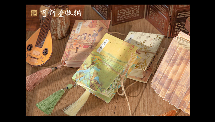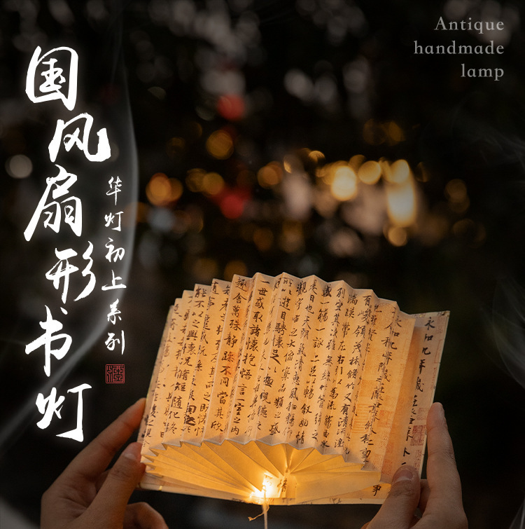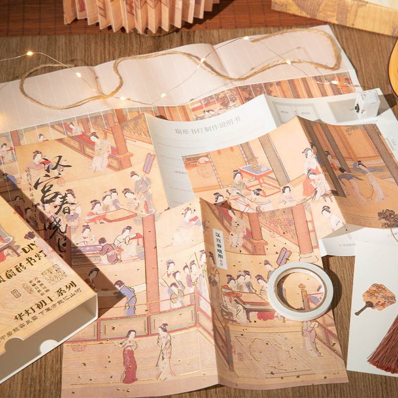 语闲DIY国风扇形书灯贴纸 华灯初上系列古风文艺书法名画儿童手工