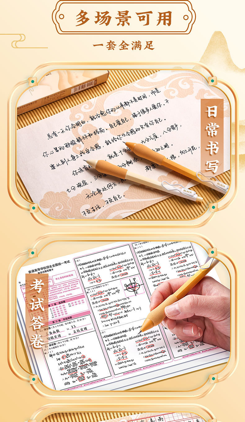 咔巴熊低重心刷题笔学生考试专用中性笔套装软欧包护套笔按动水笔