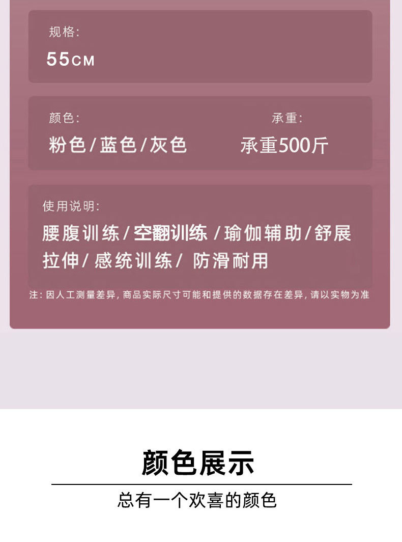 空翻辅助球瑞士球健身球加厚防爆瑜伽球家用训练平衡球配打气筒