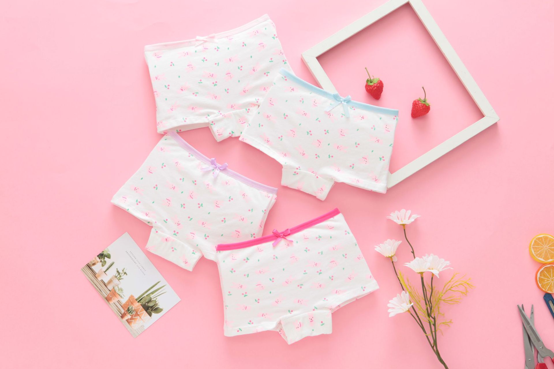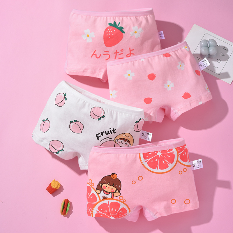 新款儿童内裤女童纯棉平角裤 女生短裤可爱卡通透气内裤