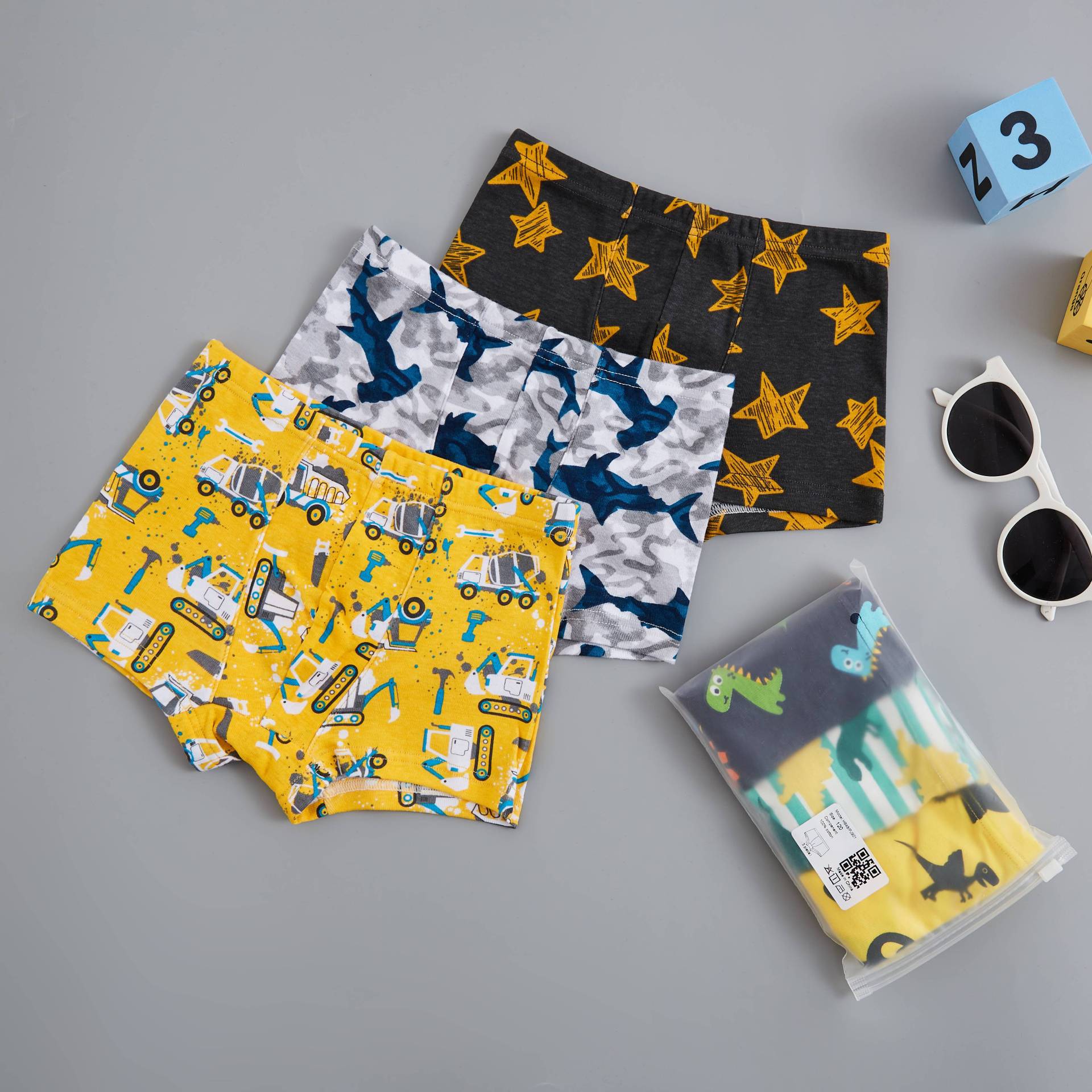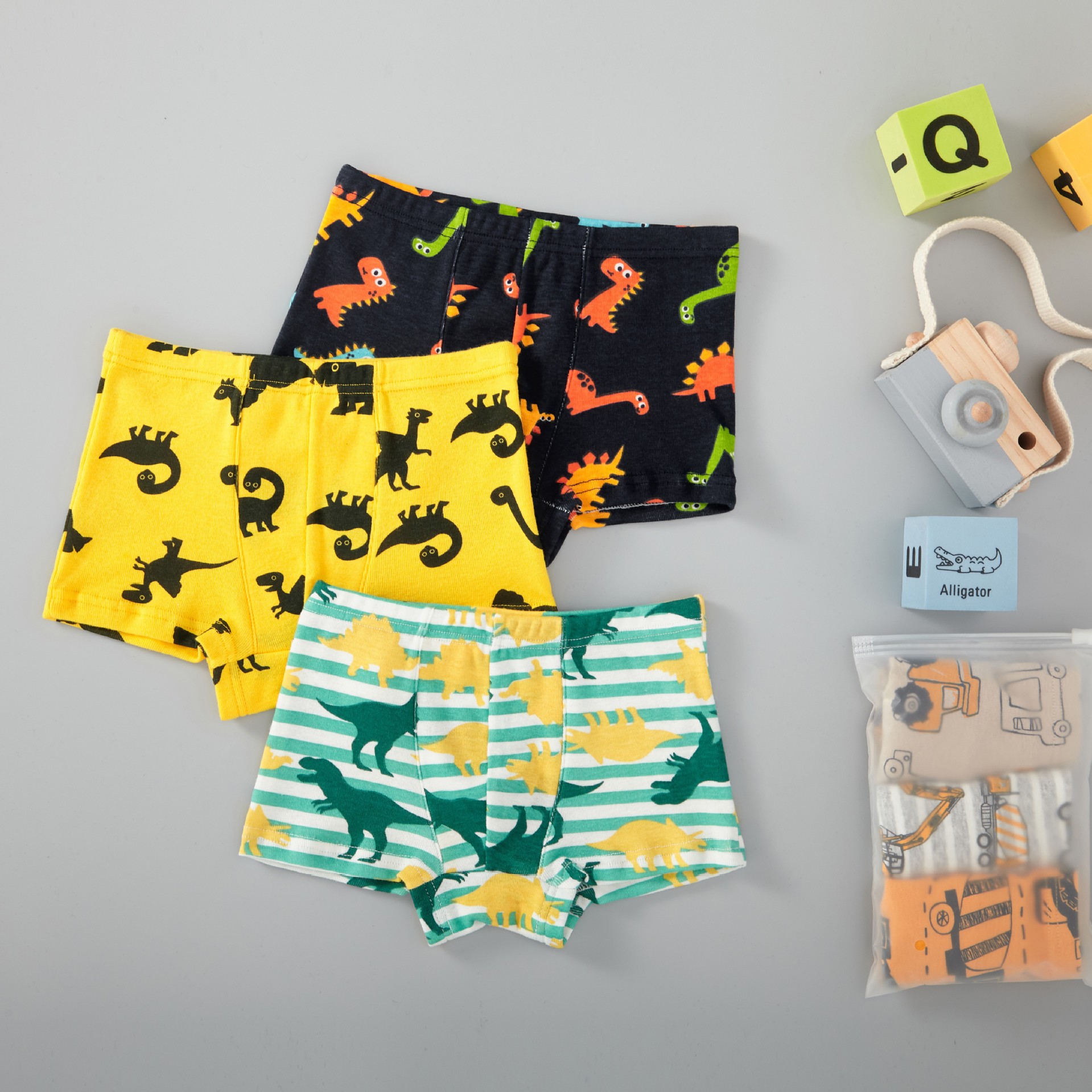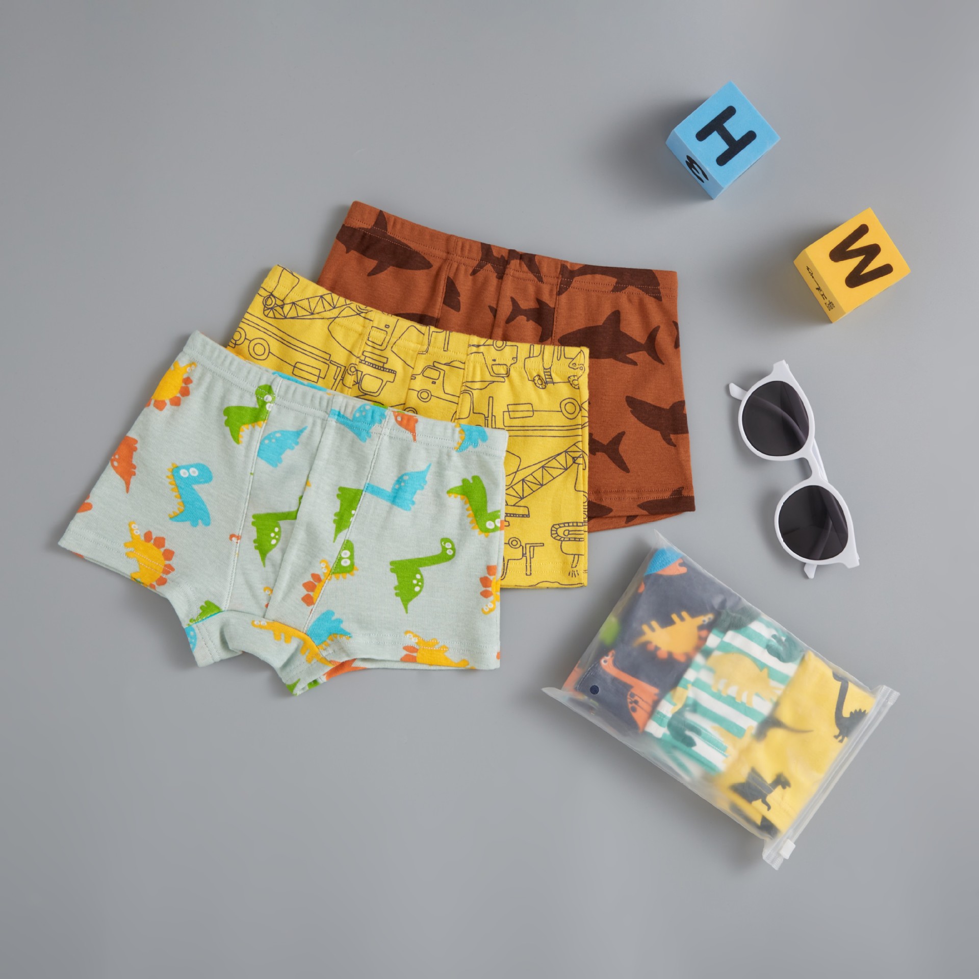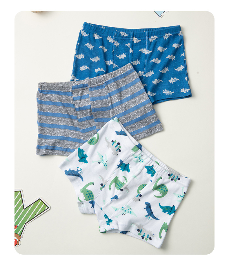 欧美款式儿童内裤男童螺纹纯棉卡通平角内裤恐龙卡通短裤跨境男童
