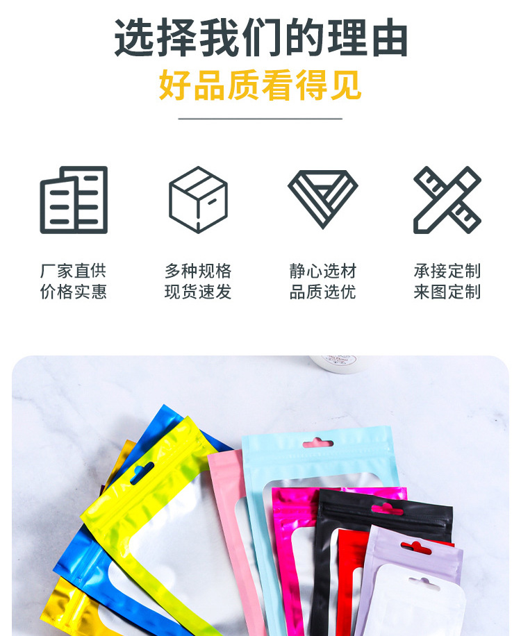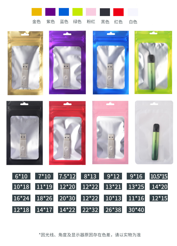 跨境爆款数码电子产品包装袋 彩色哑光铝箔袋 饰品礼品自封袋批发