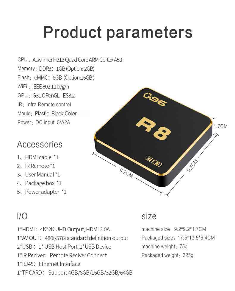 Q96 R8 H313安卓网络电视机顶盒 4K外贸电视盒子跨境 TV BOX
