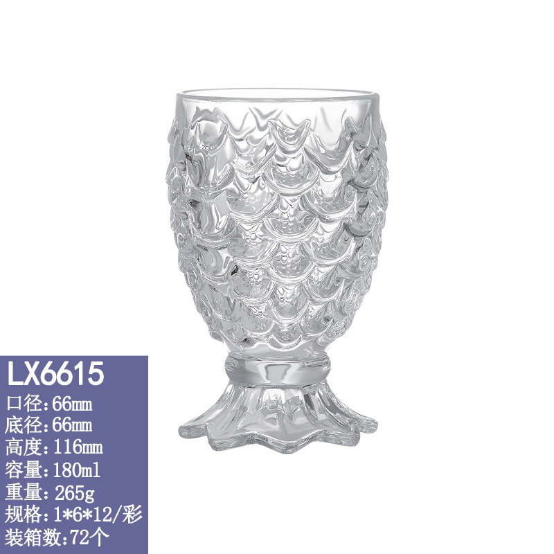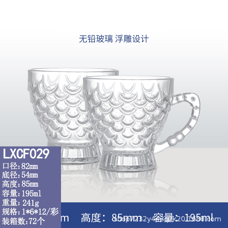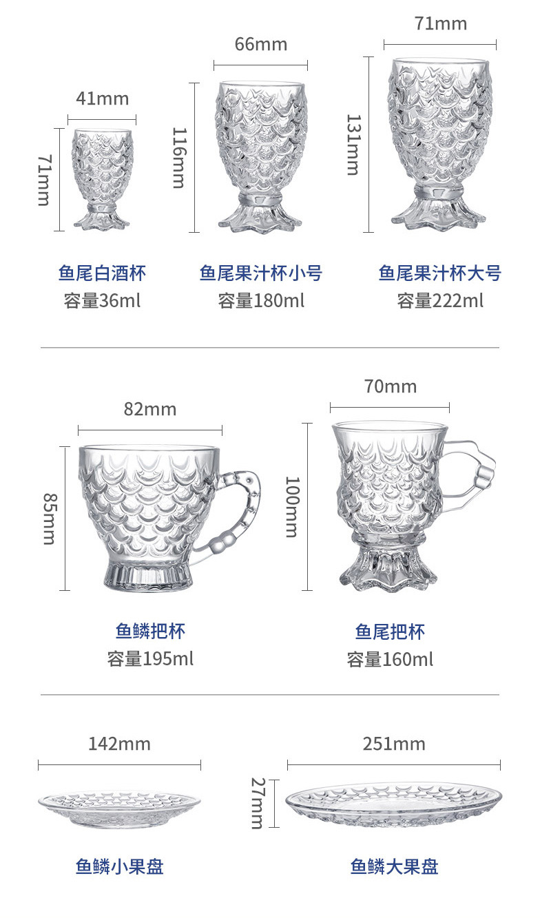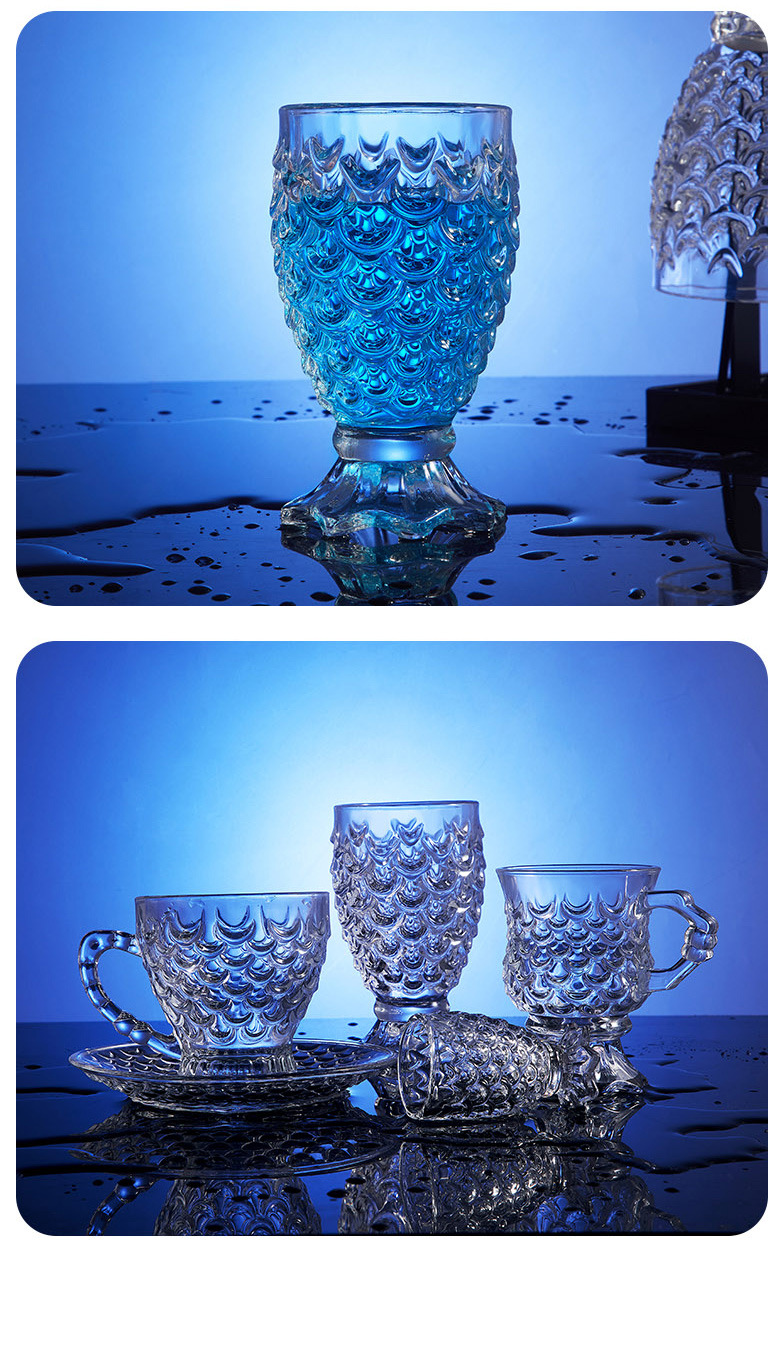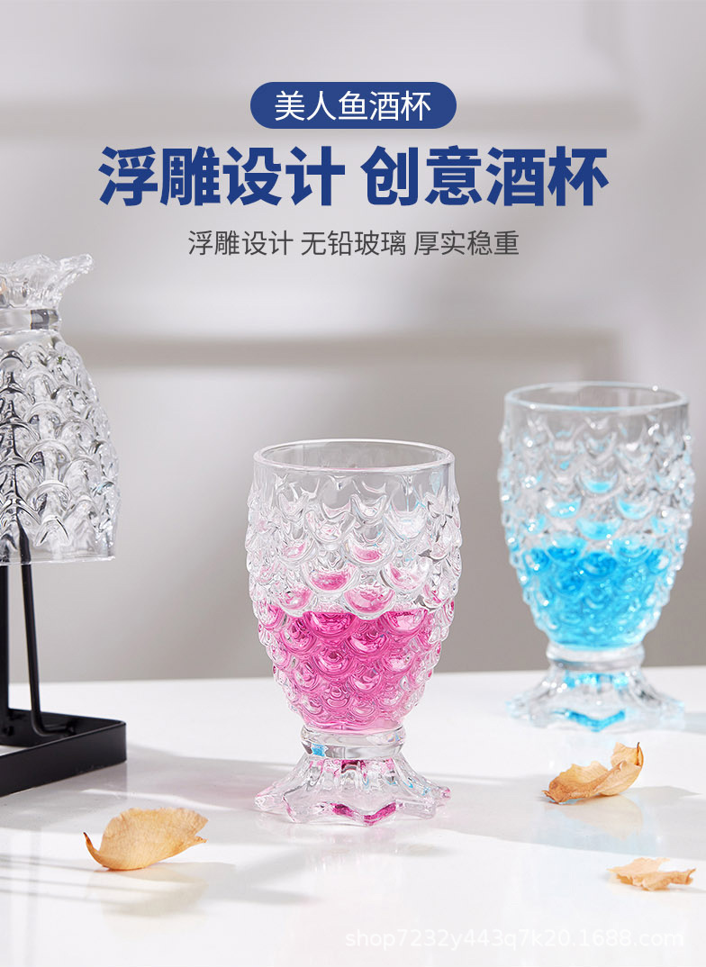 玻璃杯浮雕鱼鳞纹玻璃杯美人鱼尾杯家用高颜值创意网红水杯批发
