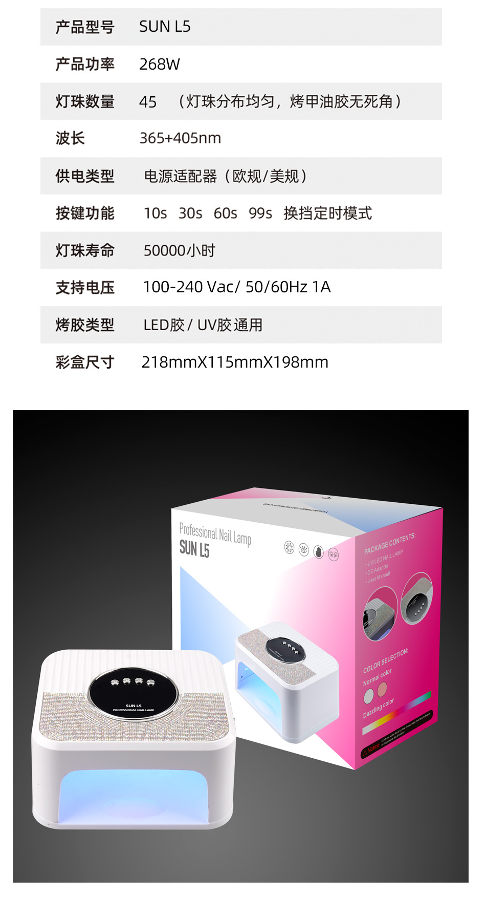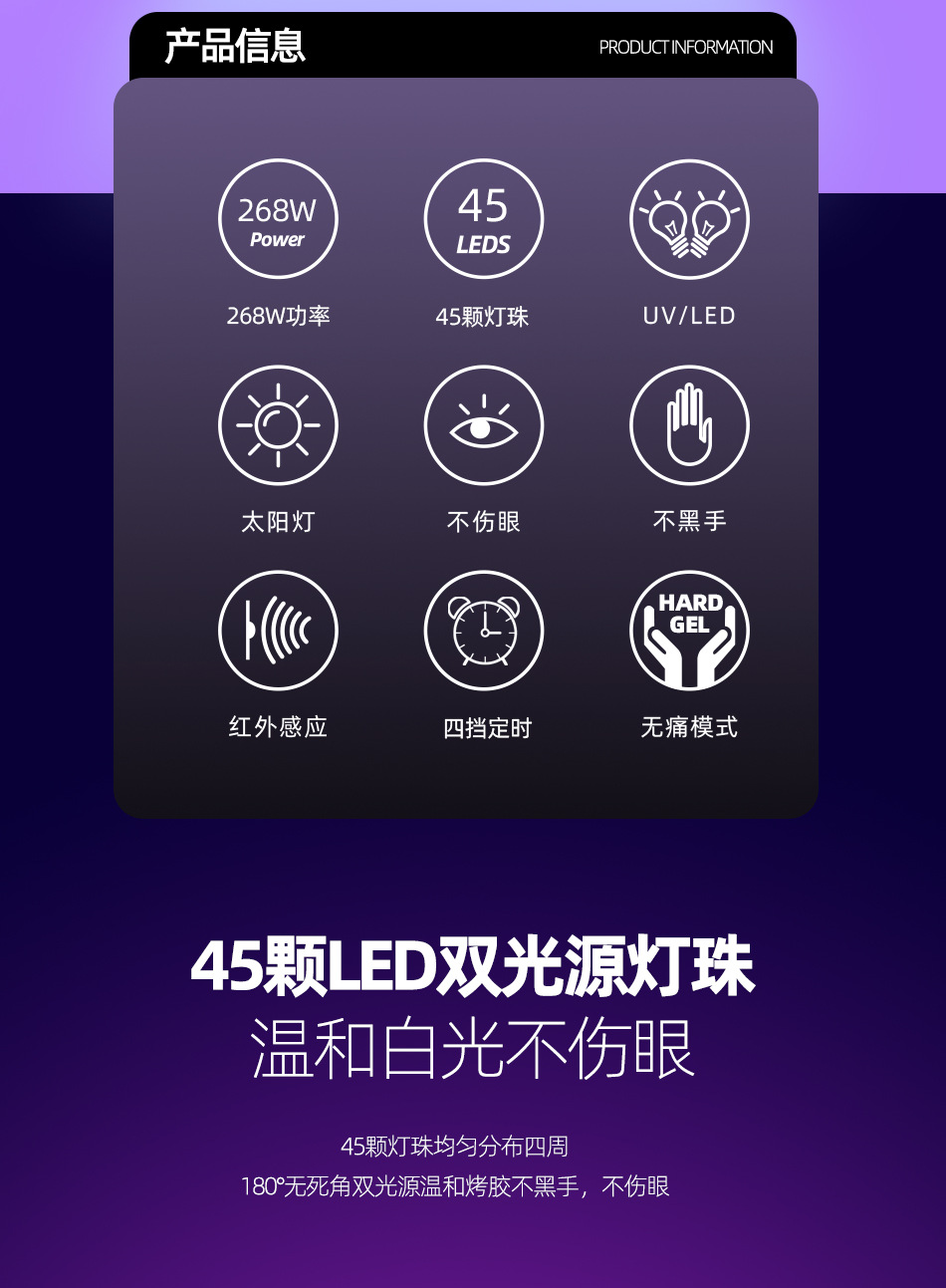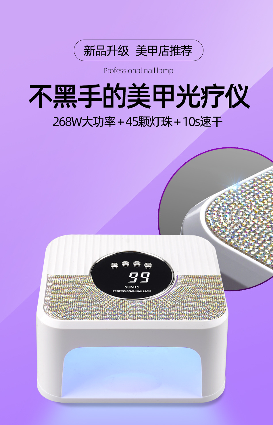 跨境大容量美甲灯268W大功率双手美甲烤灯速干不黑手甲油胶光疗灯