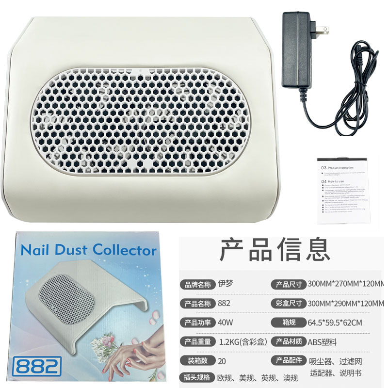 跨境882美甲吸尘器日式双风扇指甲集尘器80W大功率带过滤网吸尘机