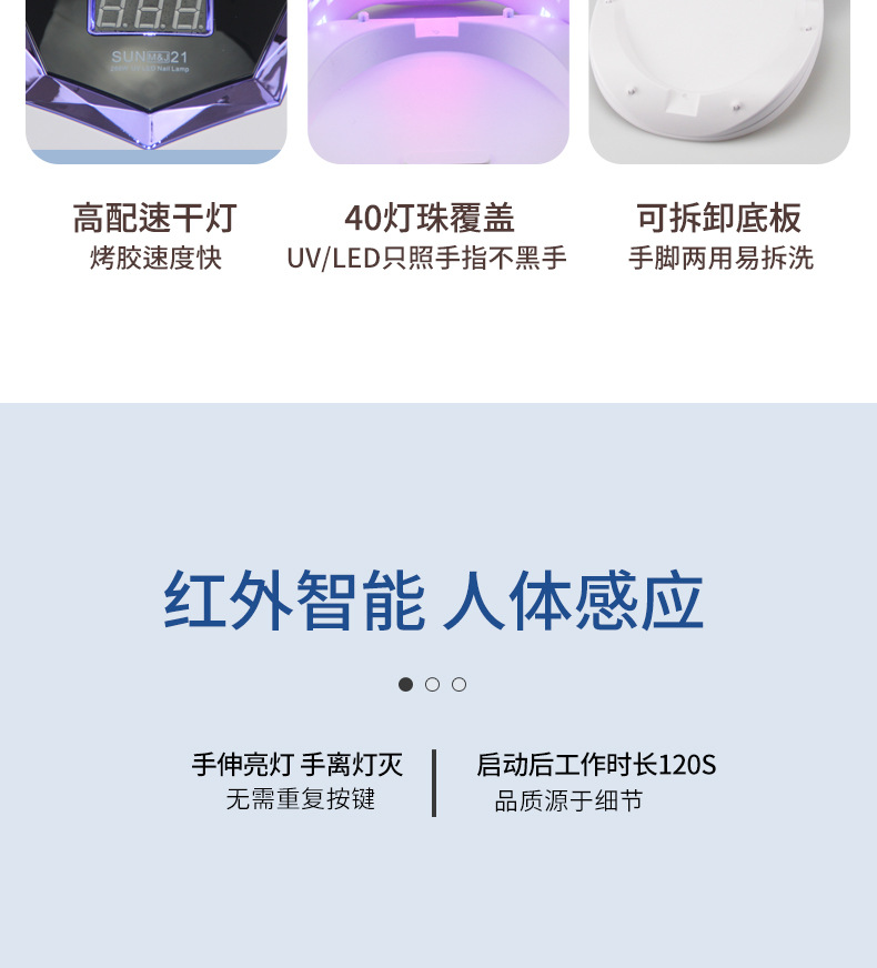 SUNMJ21美甲灯288W高功率速干指甲油胶烤灯厂家直发40leduv光疗机