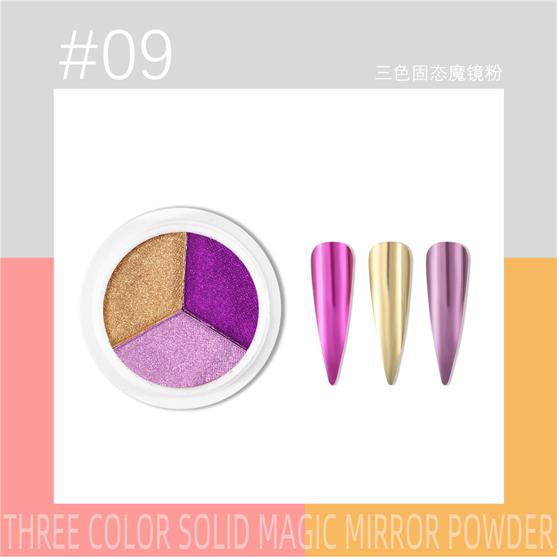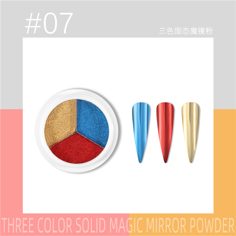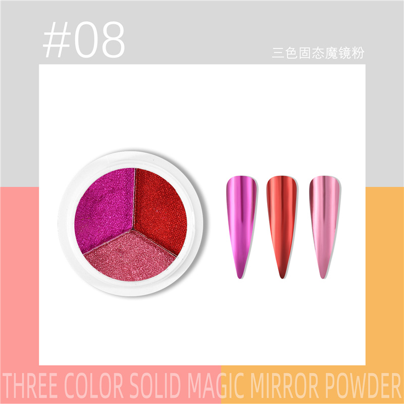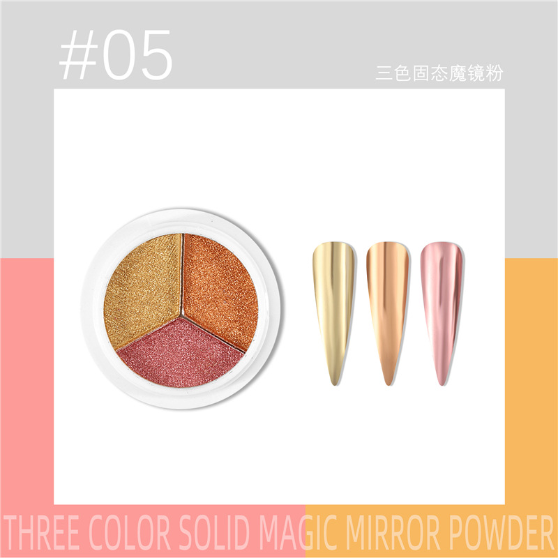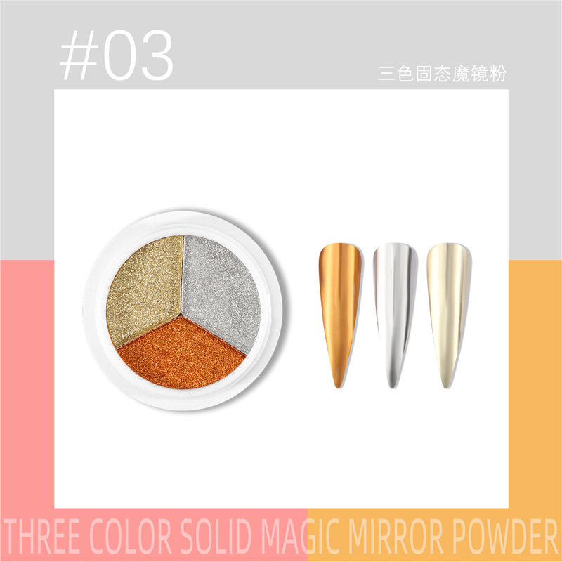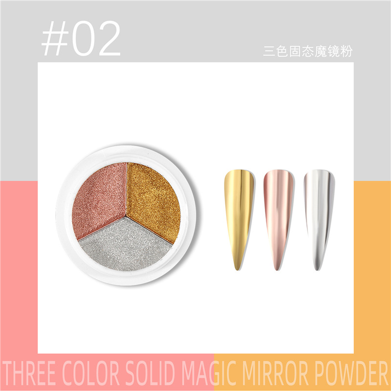 三色固态魔镜粉新品美甲日系超亮不飞粉美甲镜面粉钛金粉
