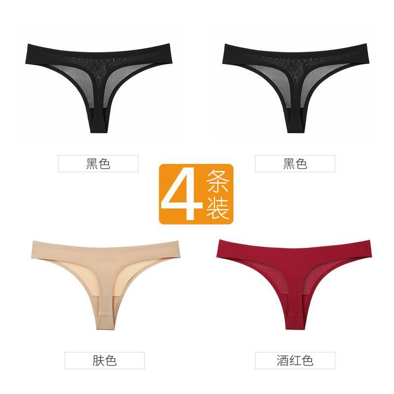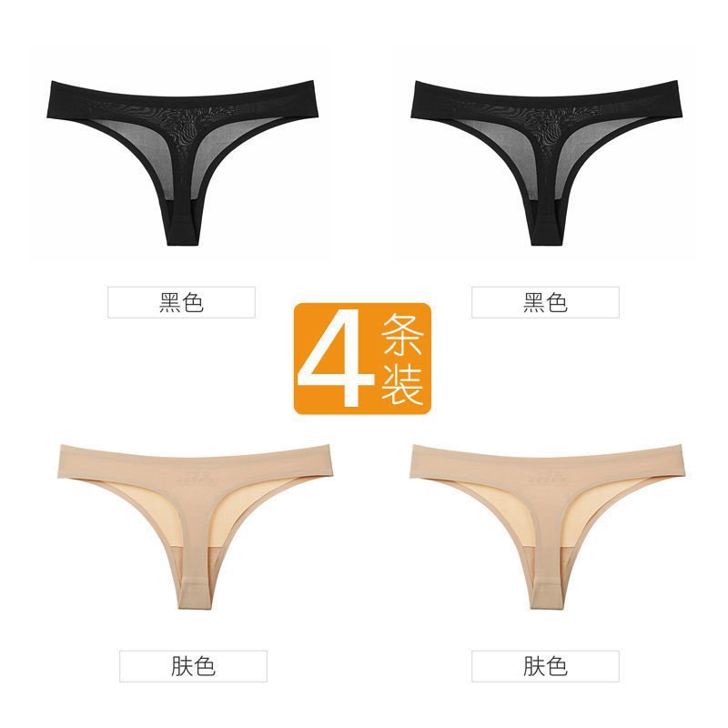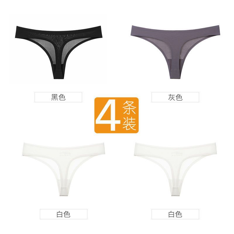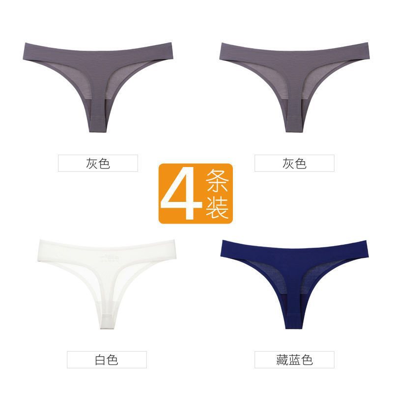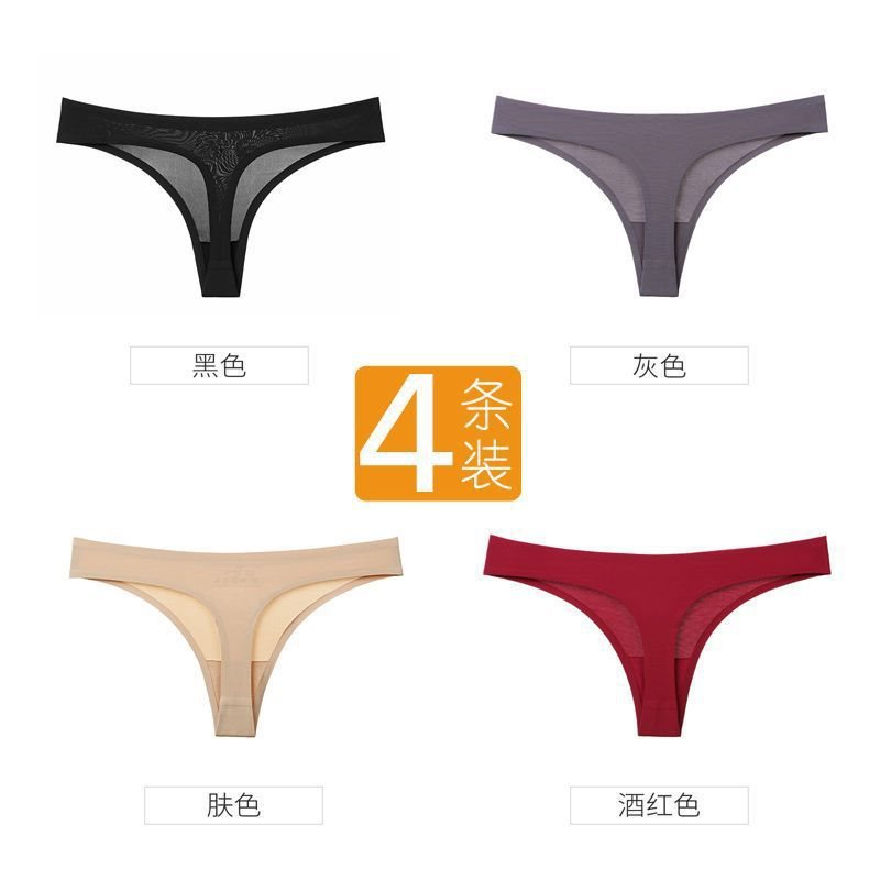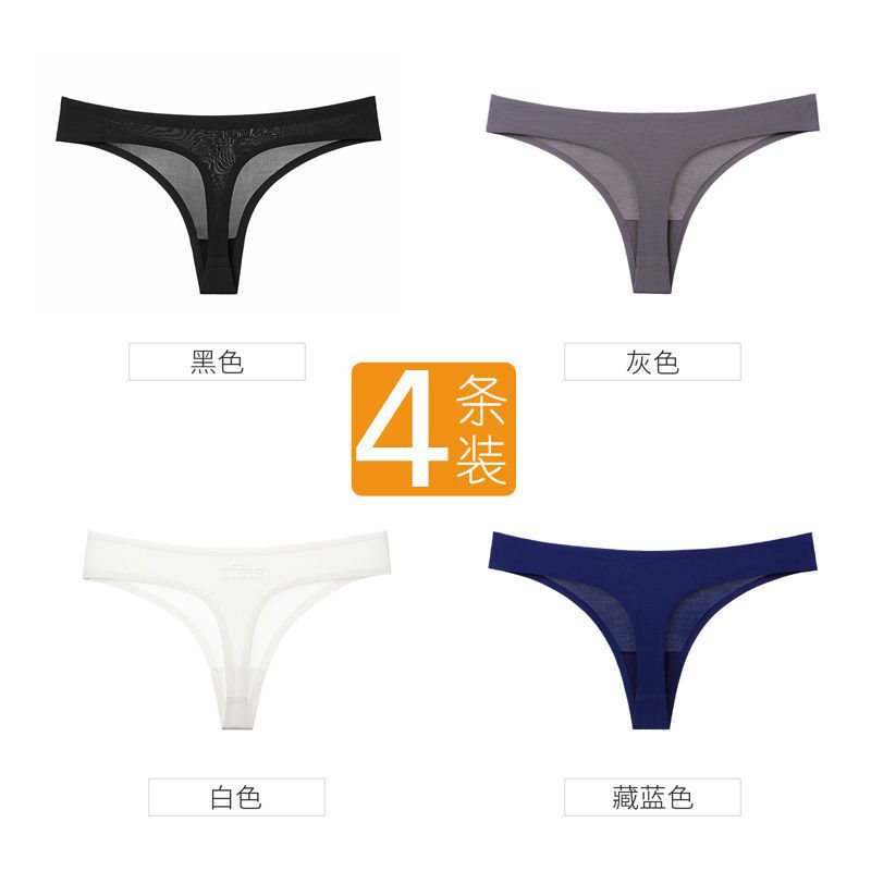 丁字裤4条装内裤女冰丝一片式无痕低腰性感欧美大码运动健身裤