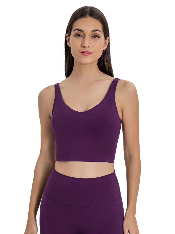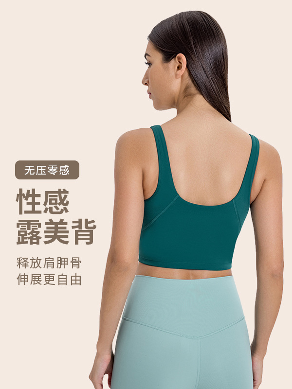 跨境新款U型美背含胸垫运动背心女高强度防震瑜伽文胸裸感瑜伽服