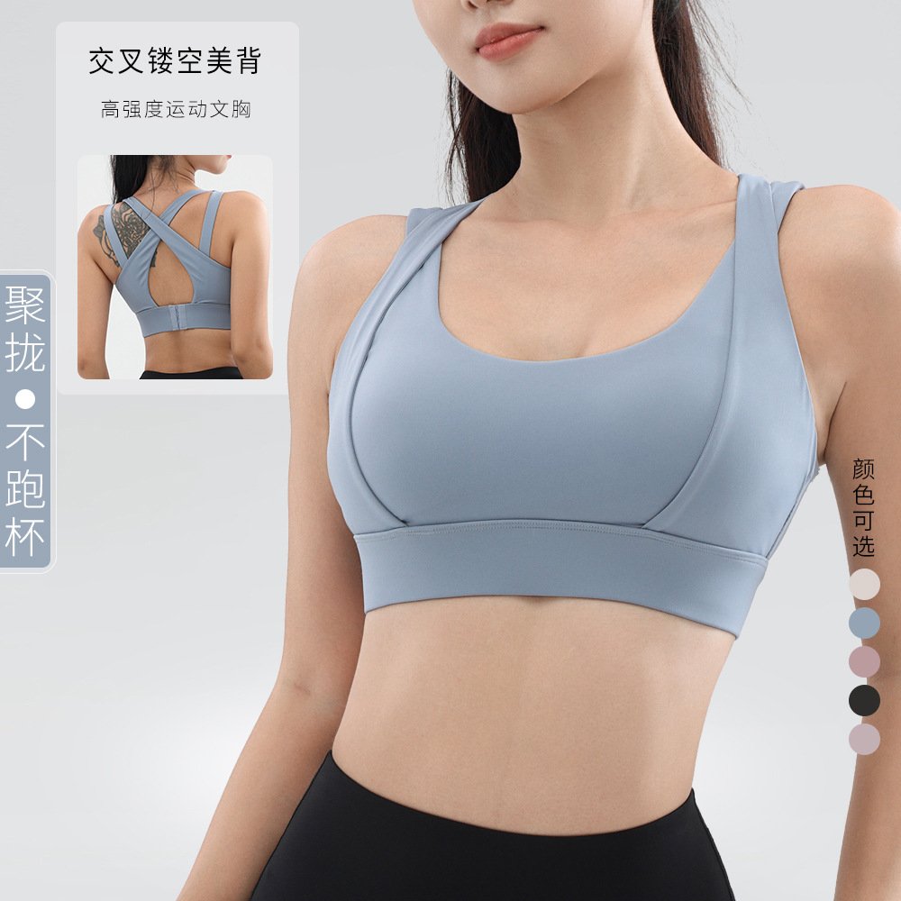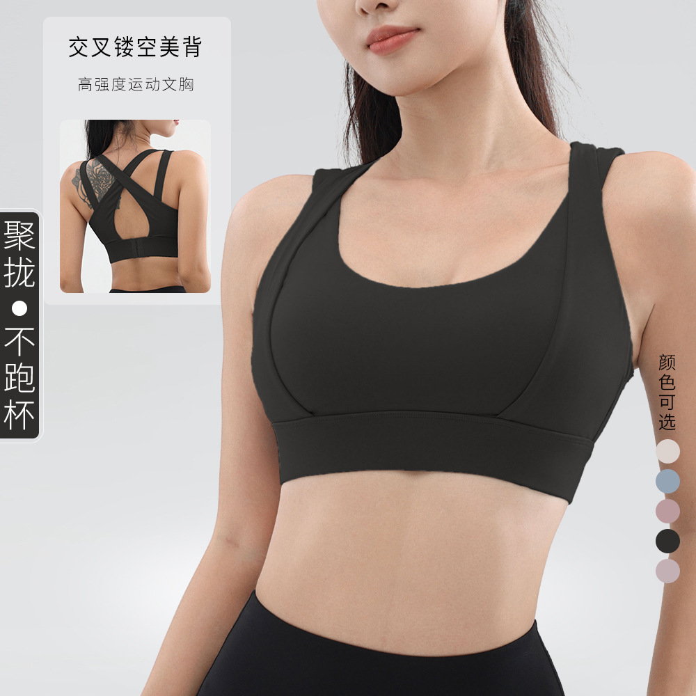 运动内衣女防震防下垂跑步交叉背心带胸垫健身服高强度瑜伽文胸