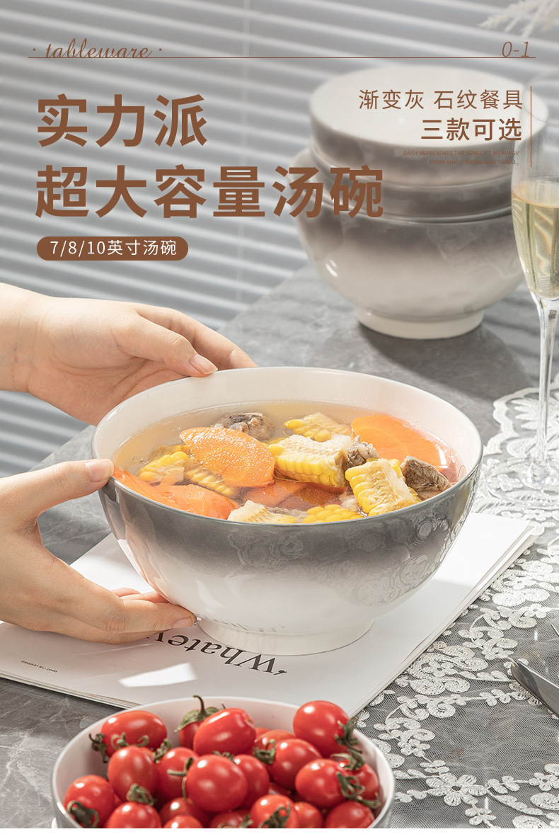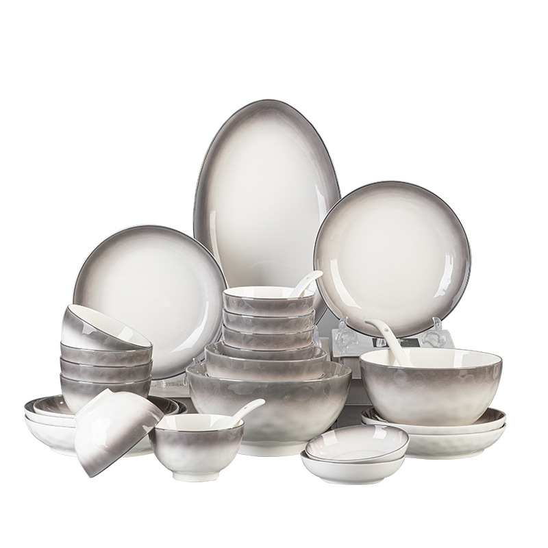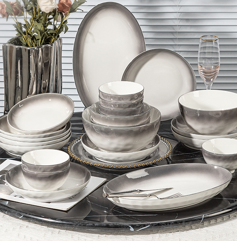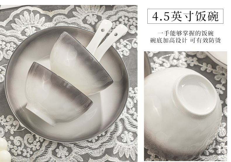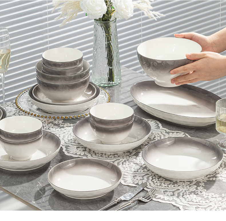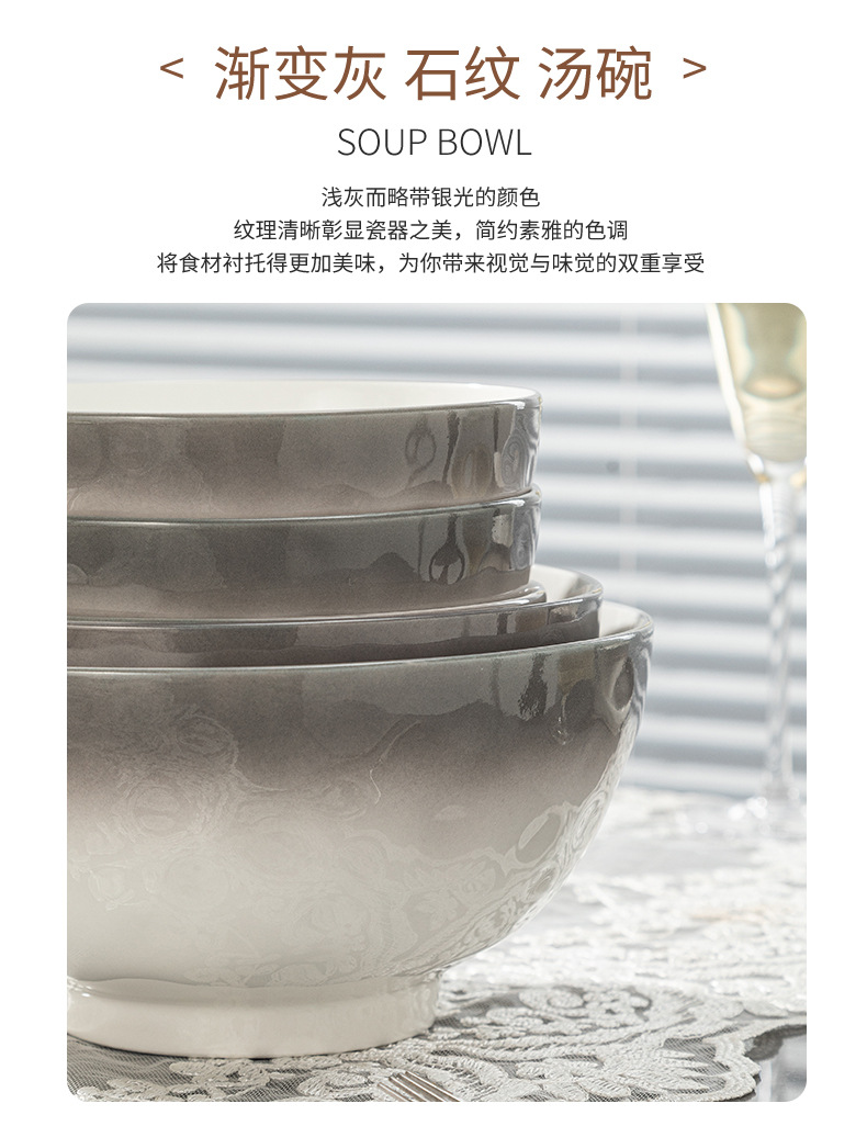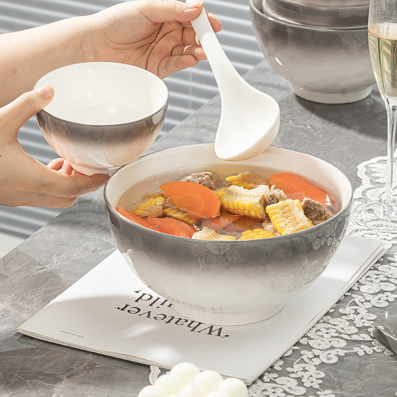 釉下彩饭碗渐变灰轻奢高颜值北欧风2024新款菜盘子乔迁陶瓷碗碟