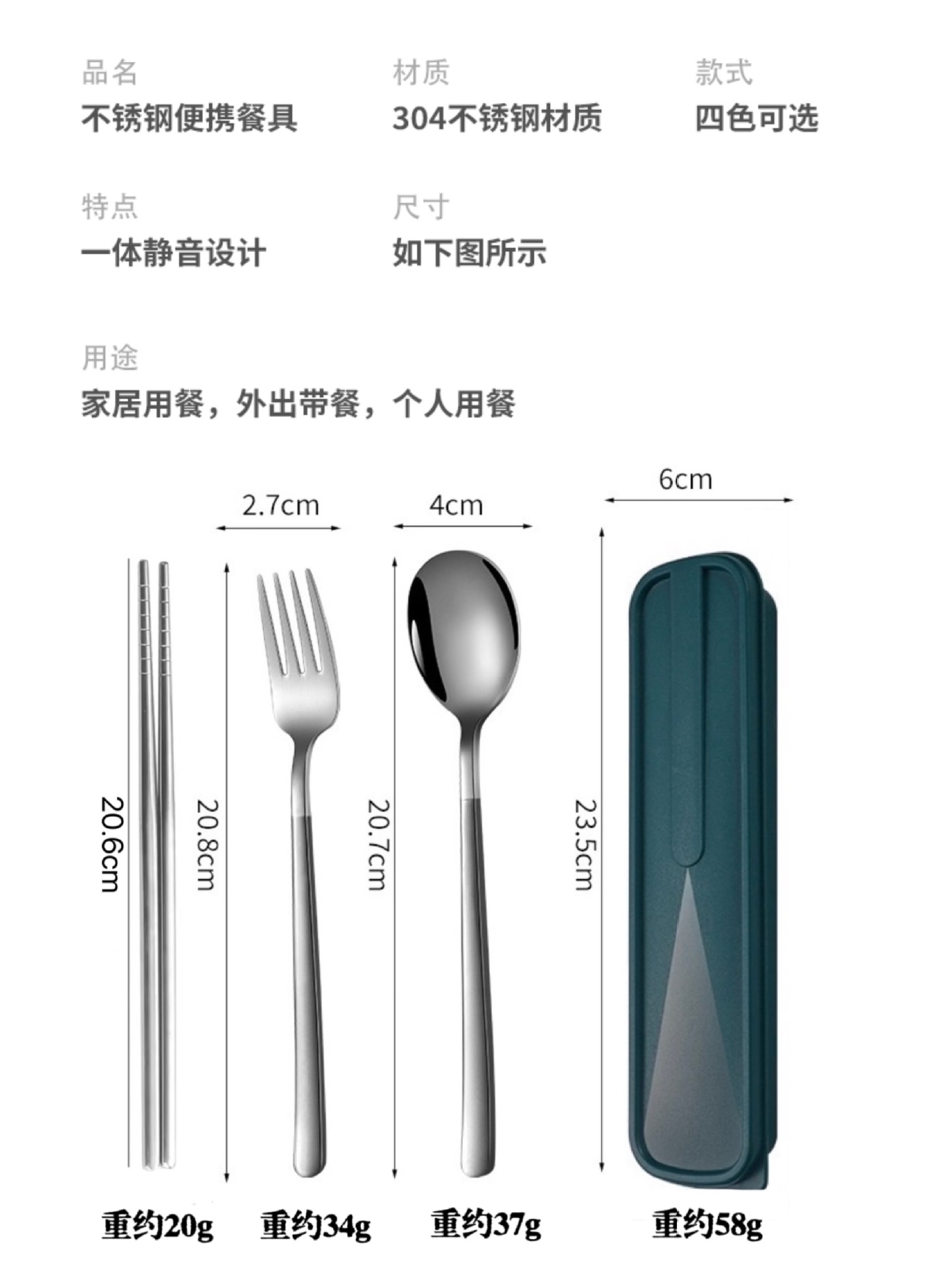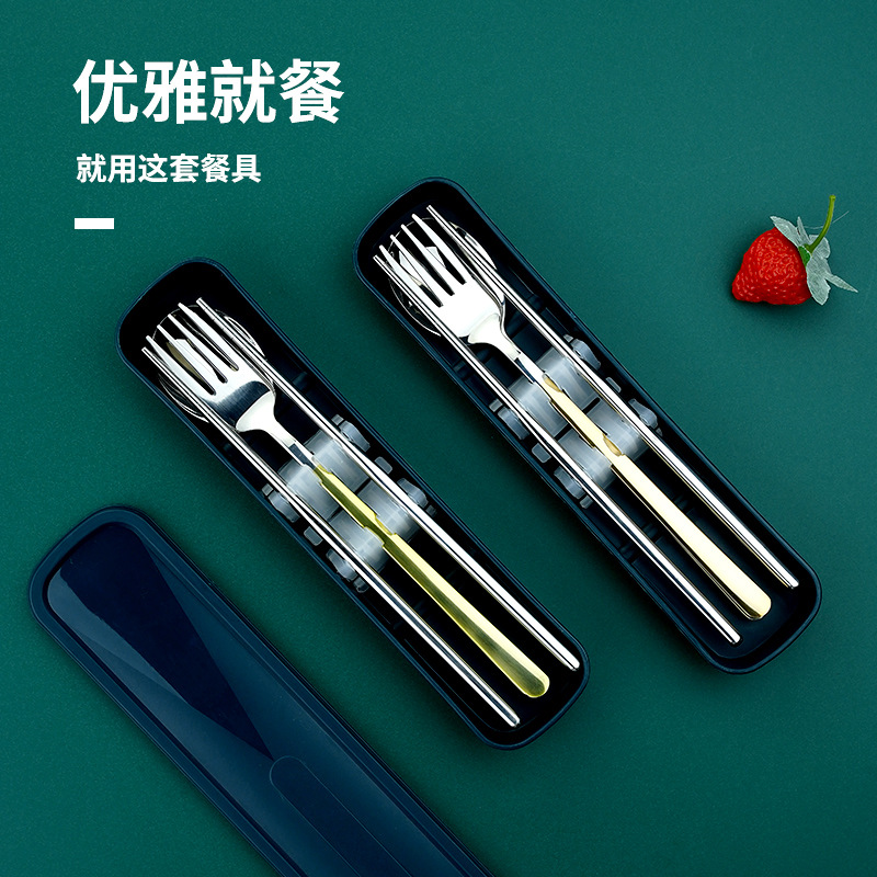 304不锈钢韩式便携餐具户外上班族学生三件套筷子叉子勺礼品套装