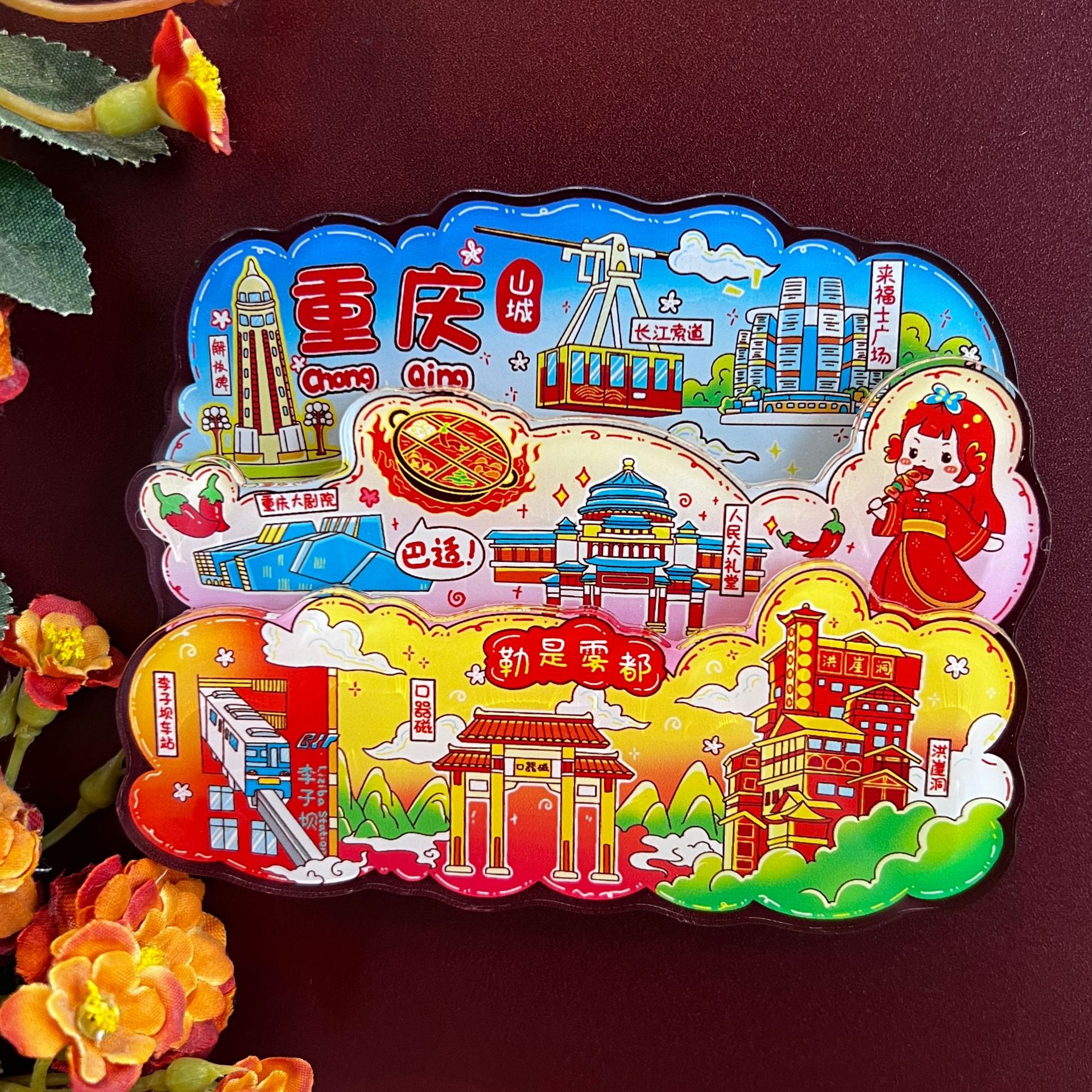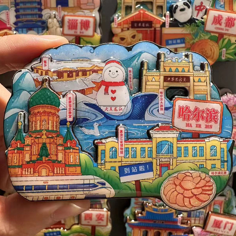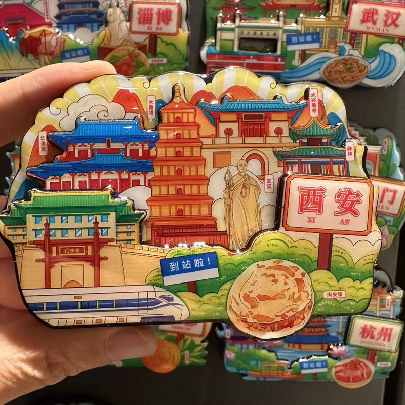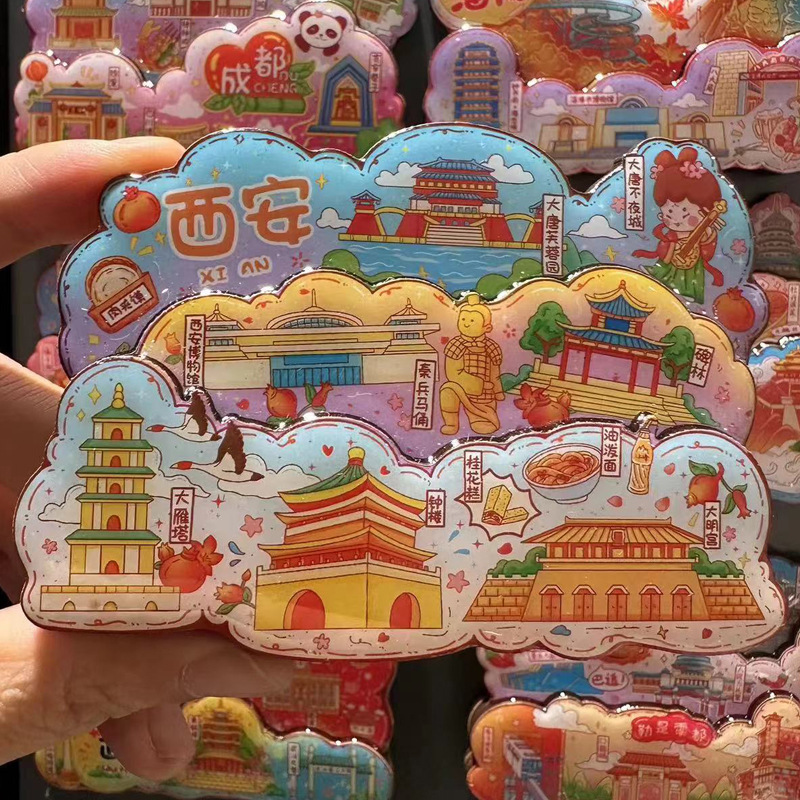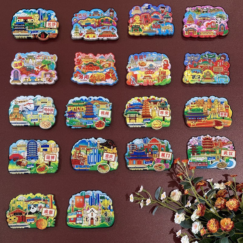 三层立体创意重庆西安洛阳文创城市亚克力冰箱贴旅游纪念品冰箱贴
