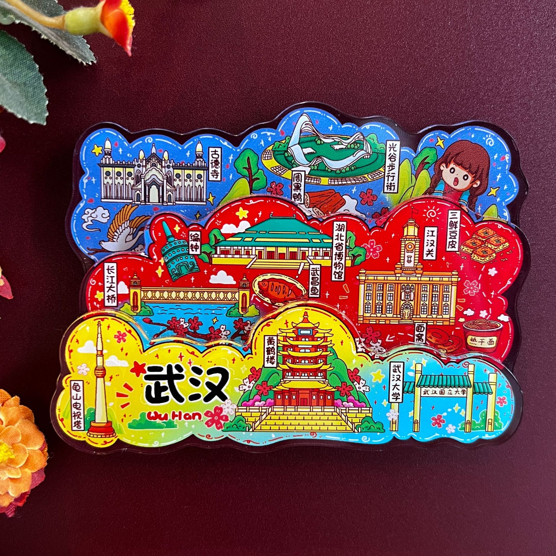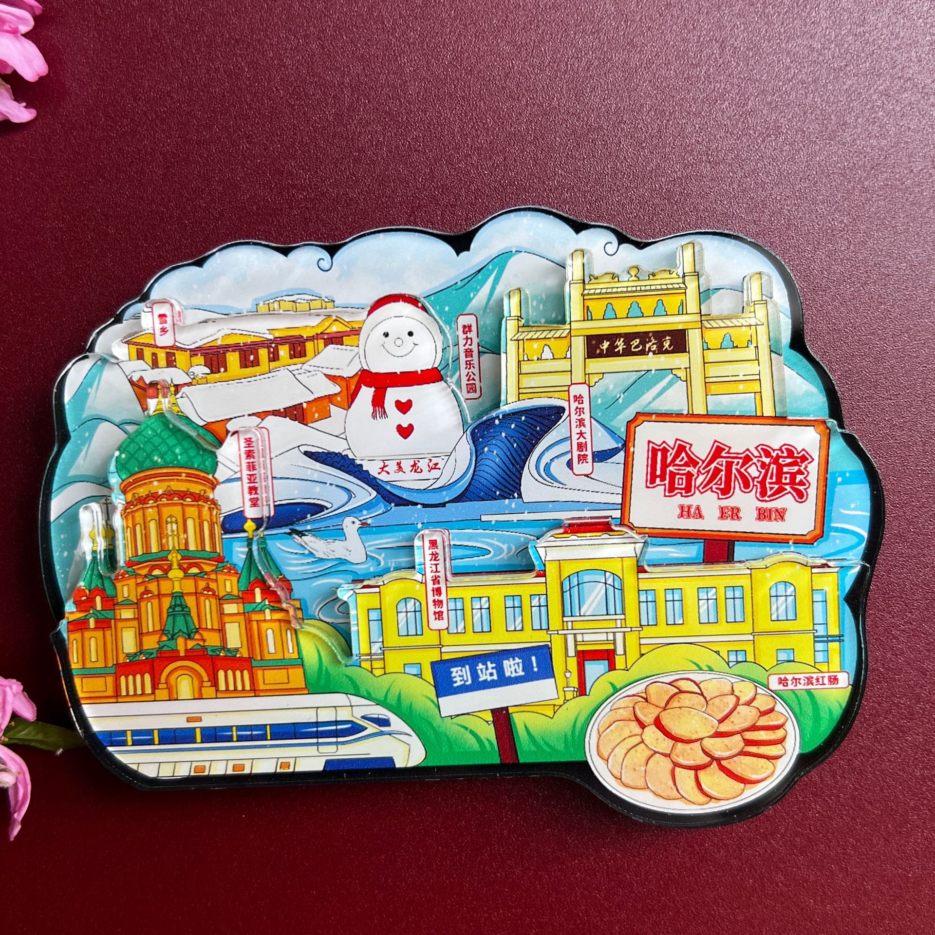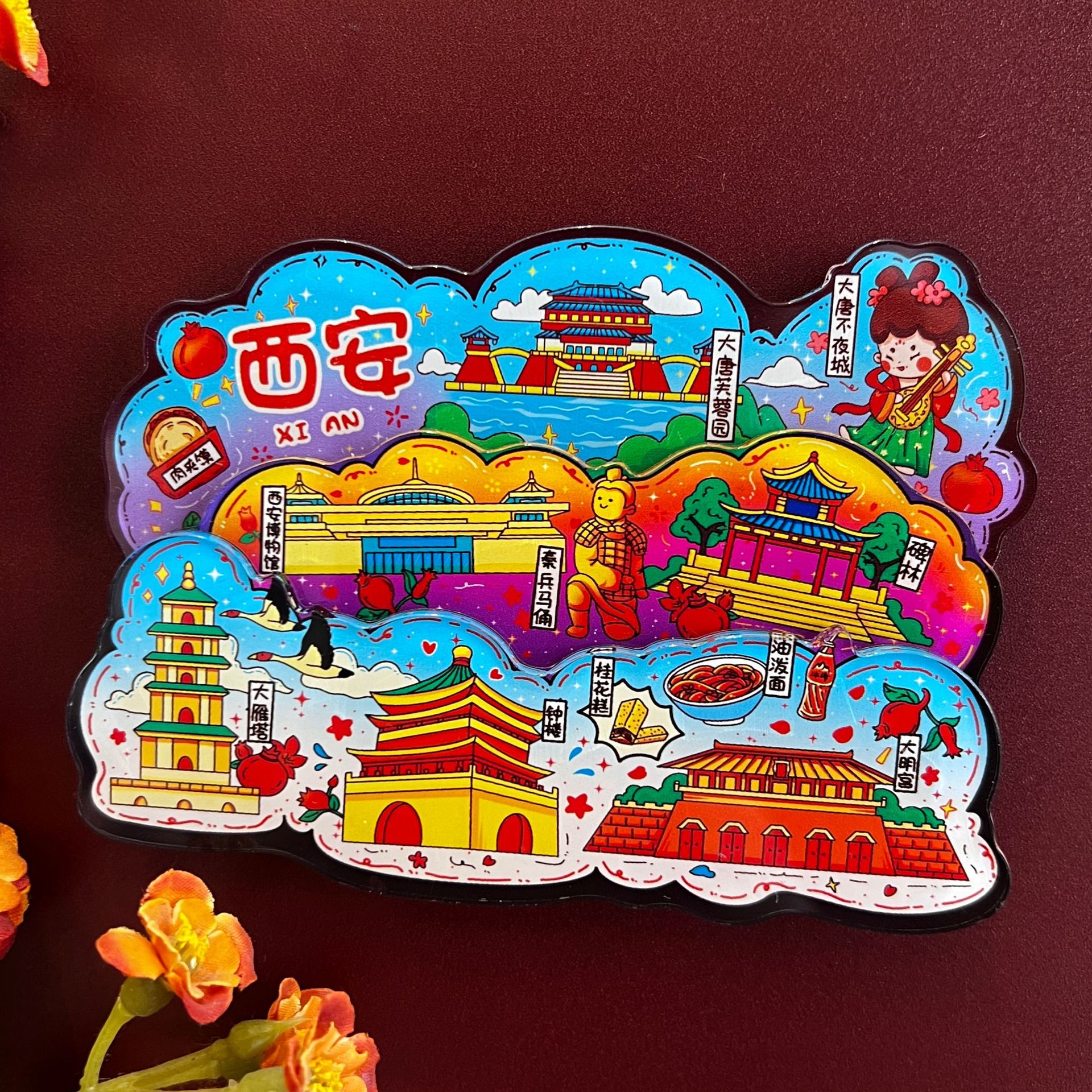 三层立体创意重庆西安洛阳文创城市亚克力冰箱贴旅游纪念品冰箱贴