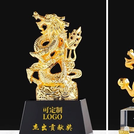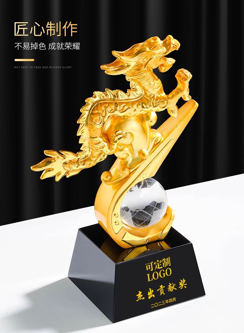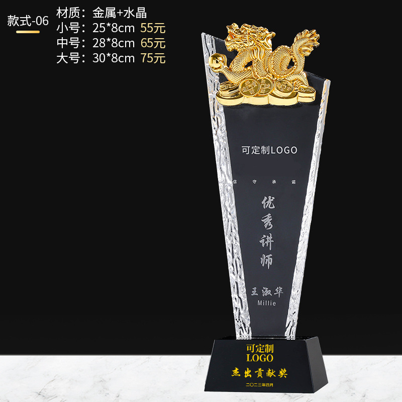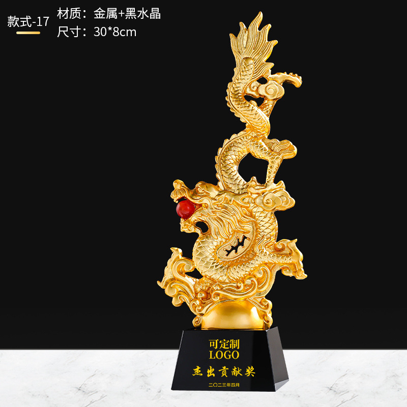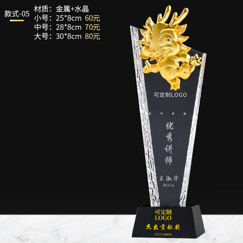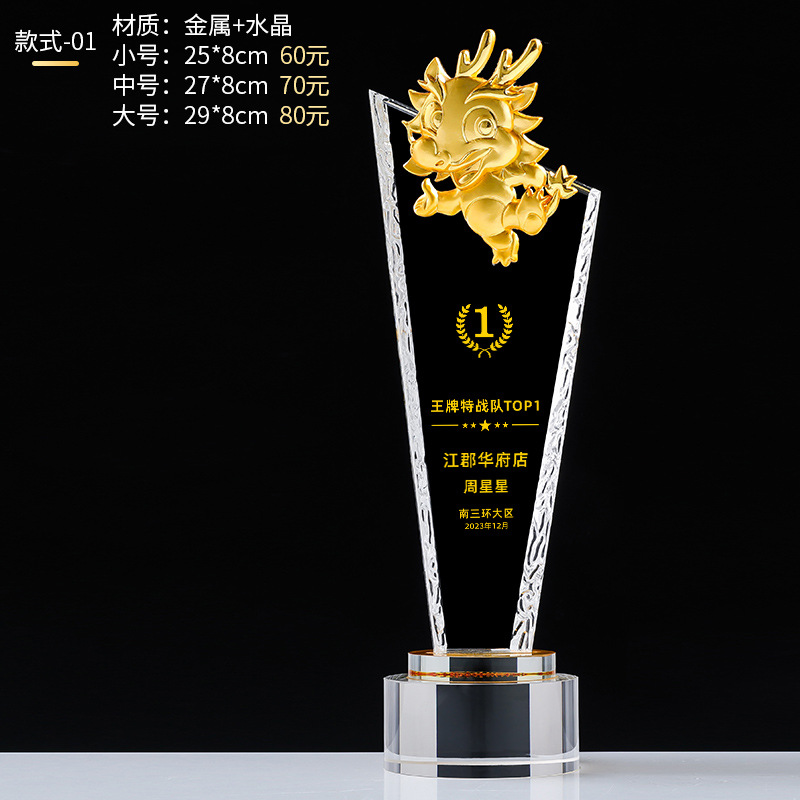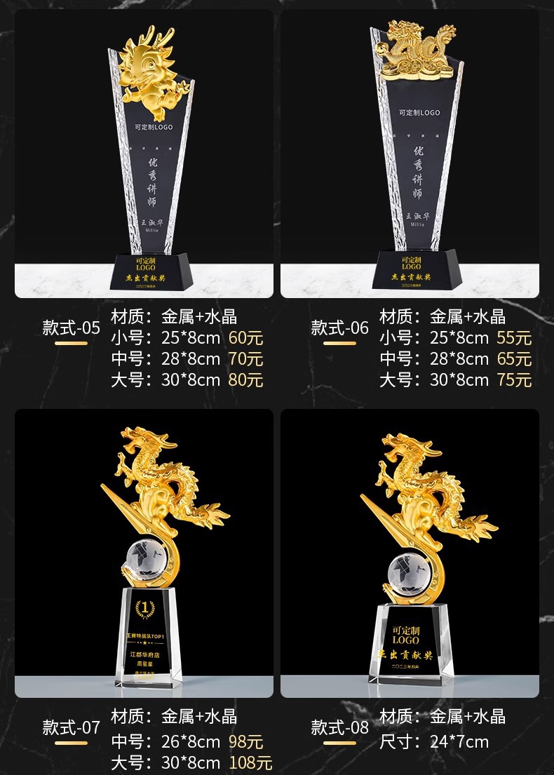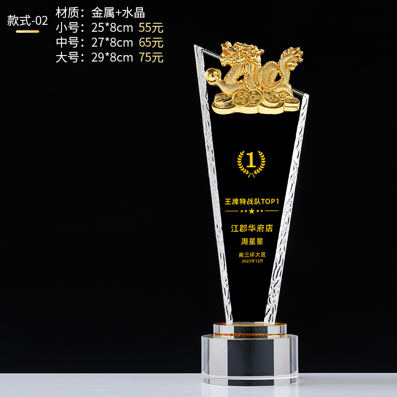 龙年造型水晶奖杯定制中国龙舟比赛颁奖冠军团队优秀员工金属奖牌
