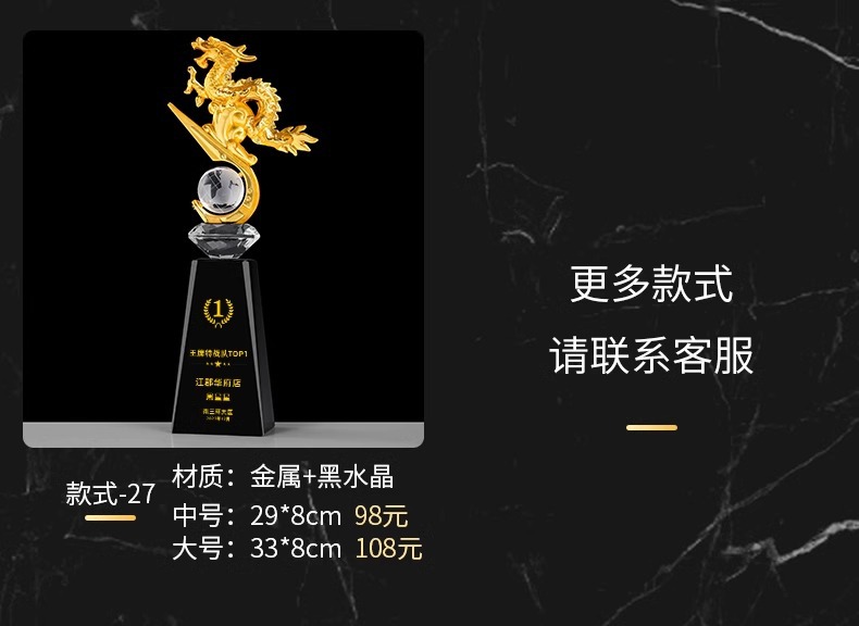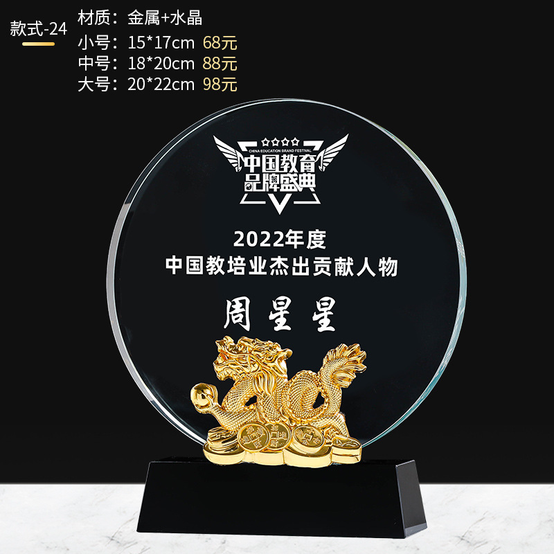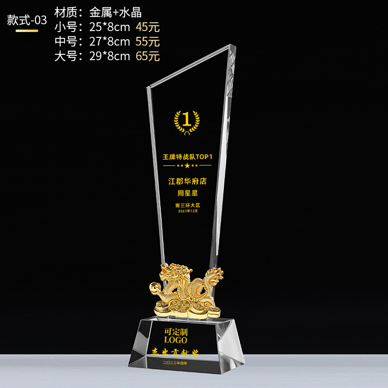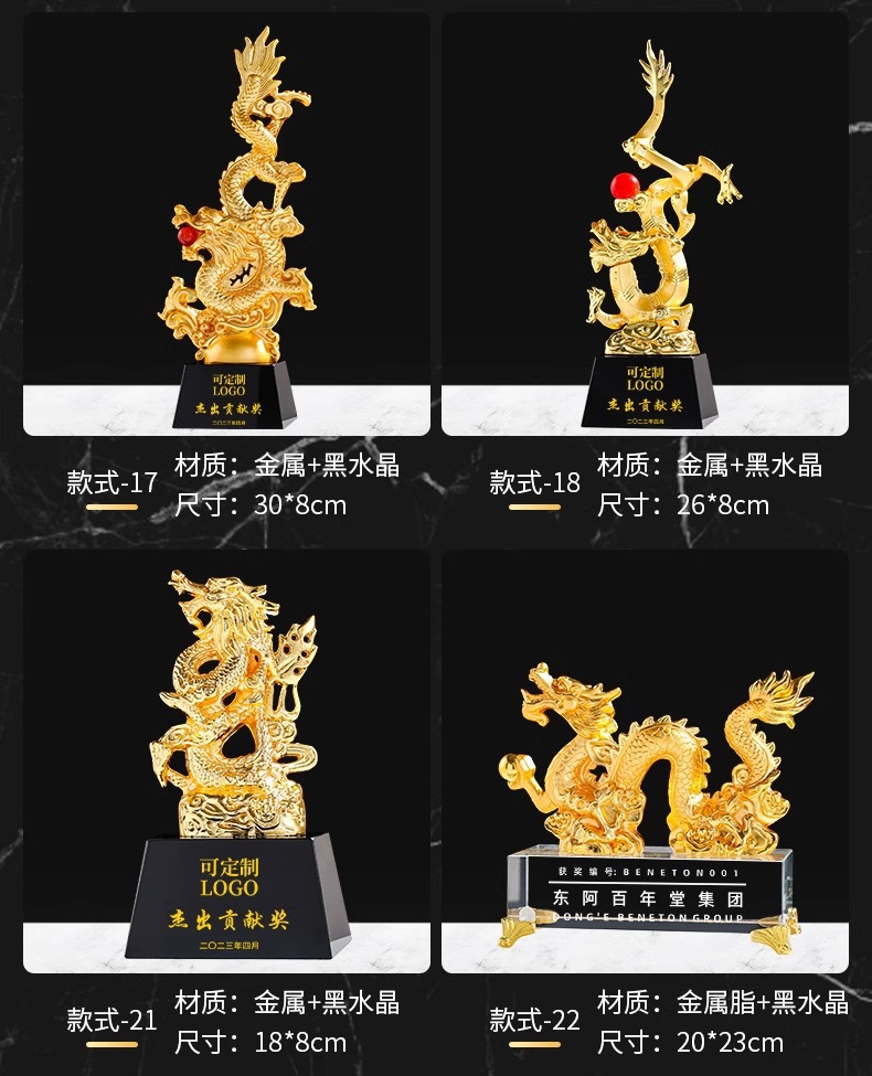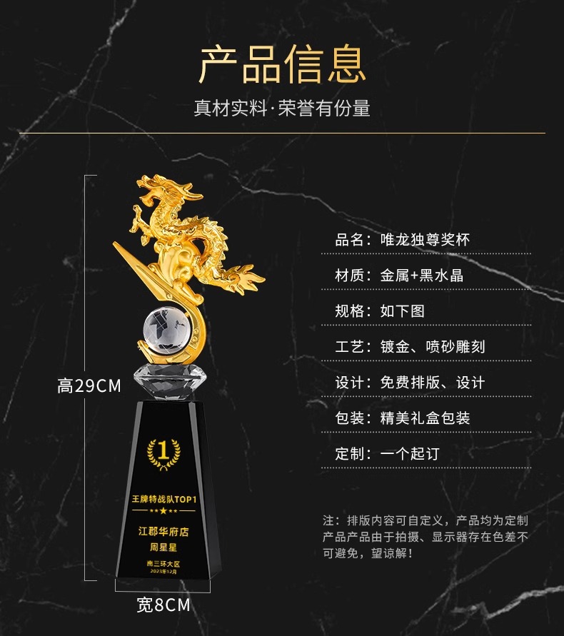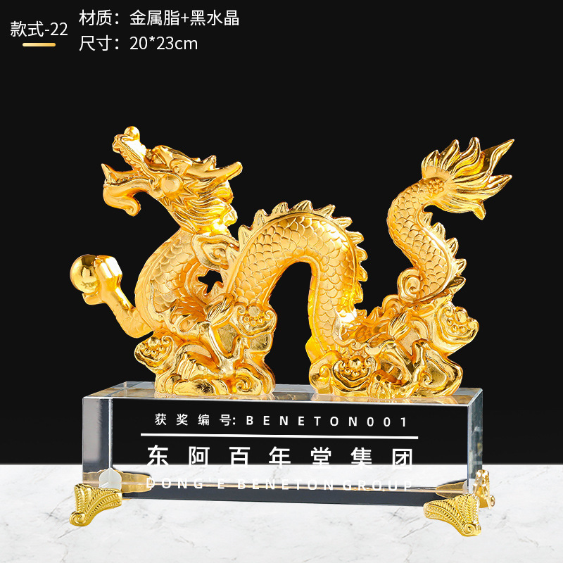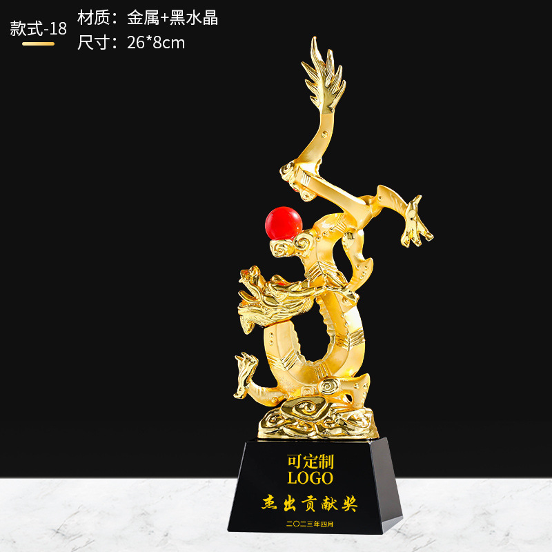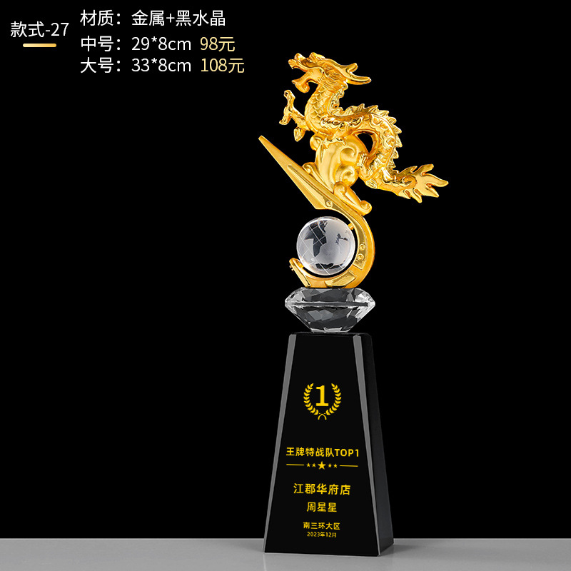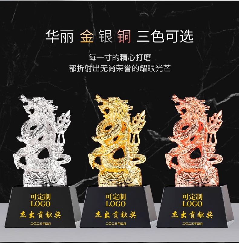 龙年造型水晶奖杯定制中国龙舟比赛颁奖冠军团队优秀员工金属奖牌