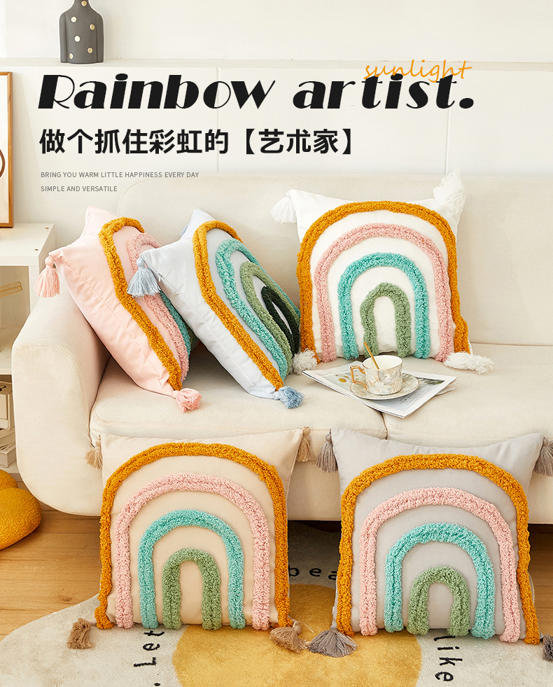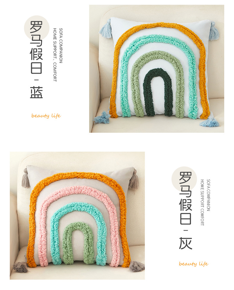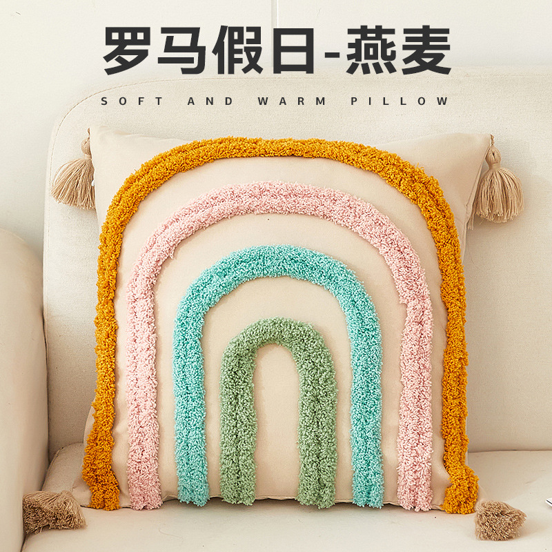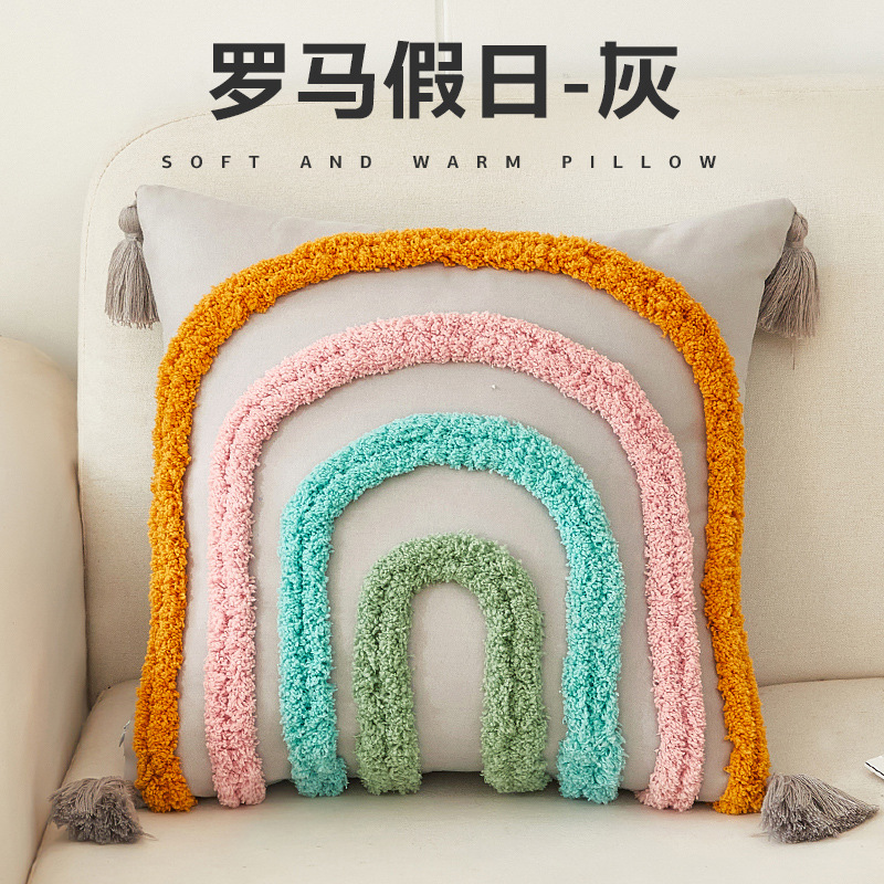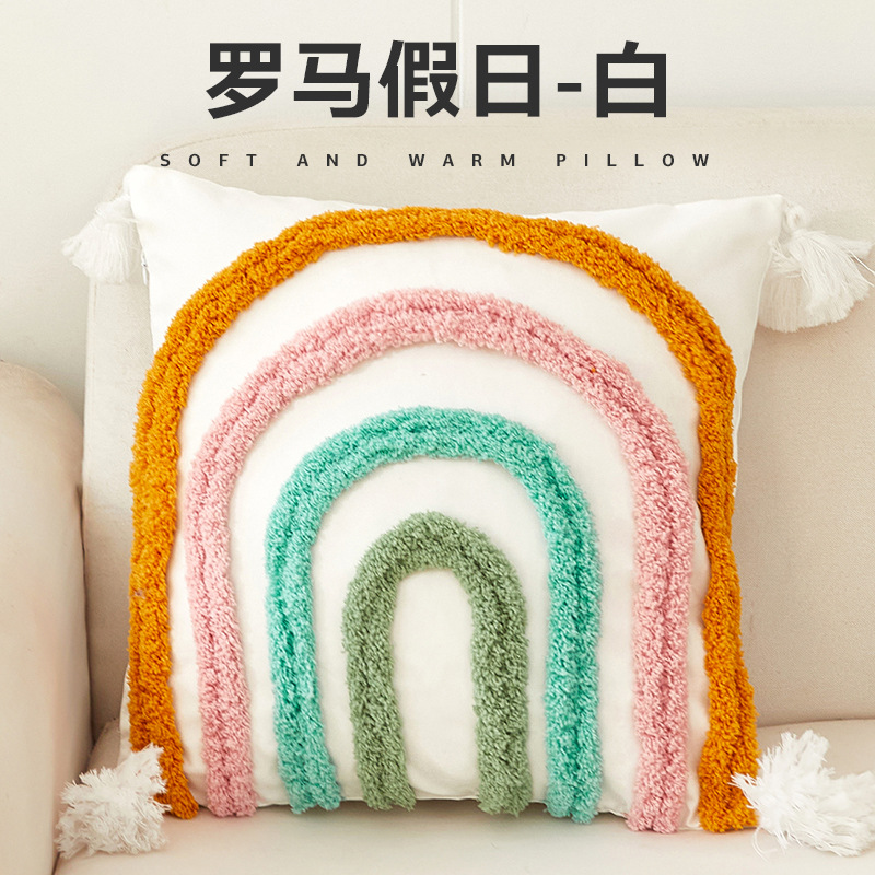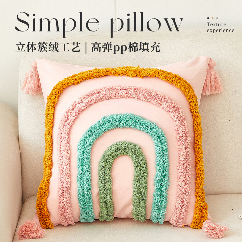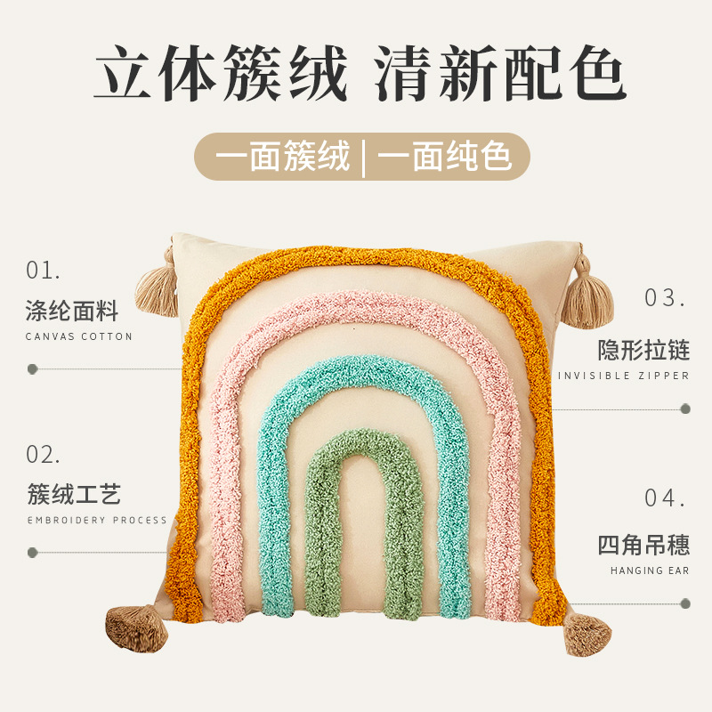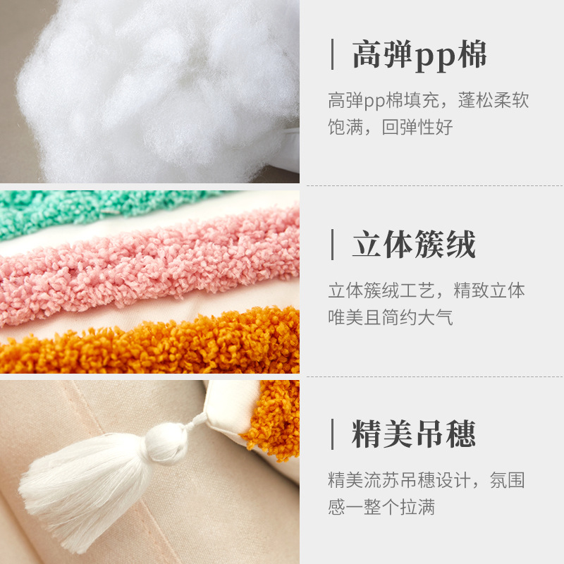 新款吊穗简约风抱枕立体簇绒工艺高弹加厚抱枕芯靠垫家用抱枕批发