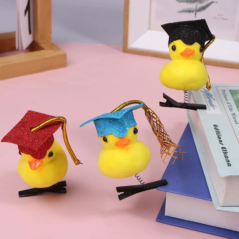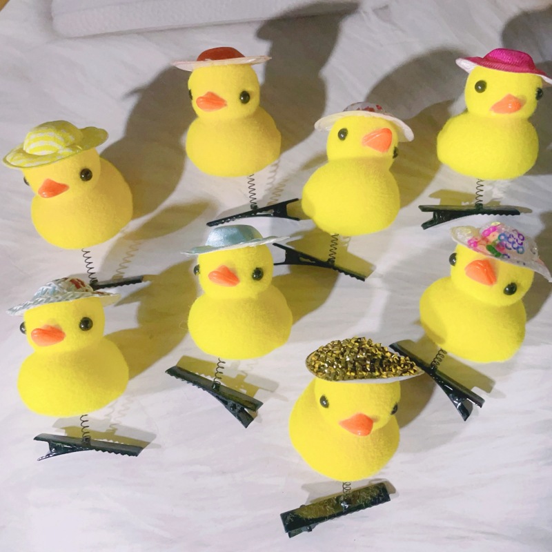新款植绒小黄鸭发夹大黄鸭弹簧发卡地推扫码小礼品学生奖品发饰品