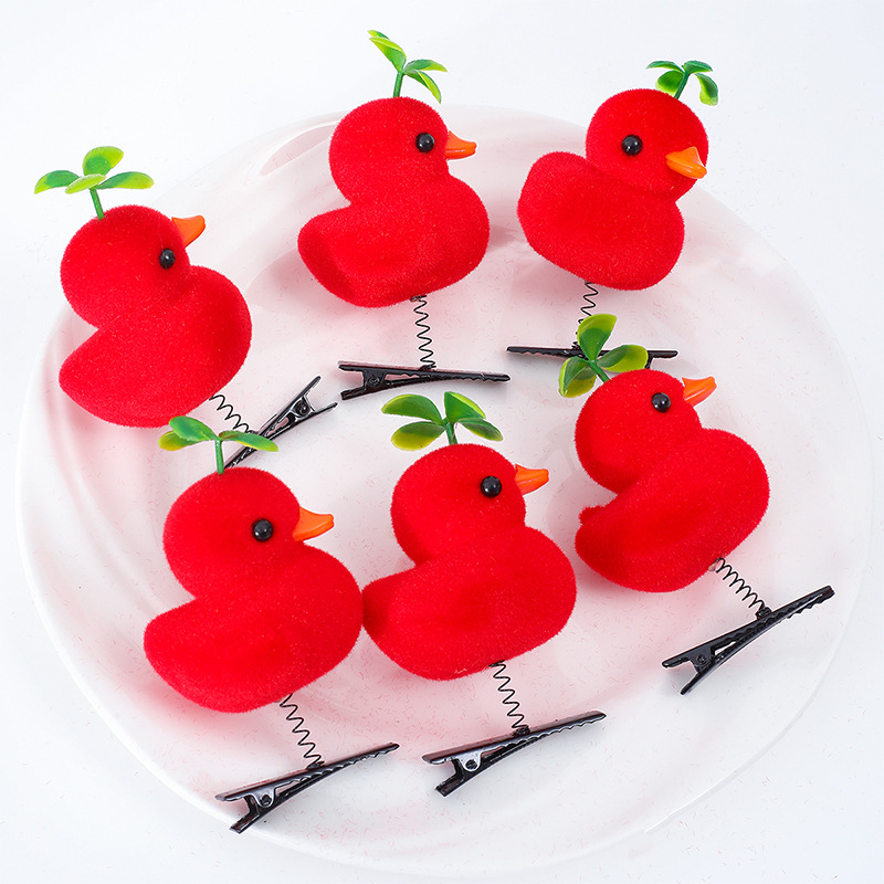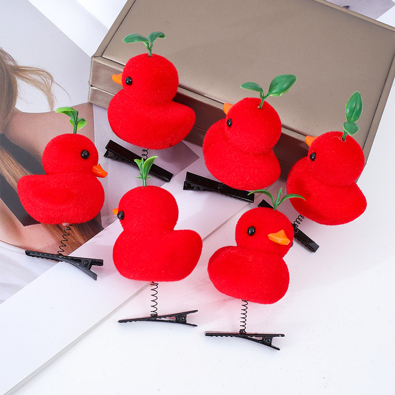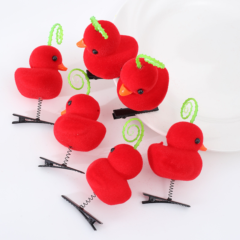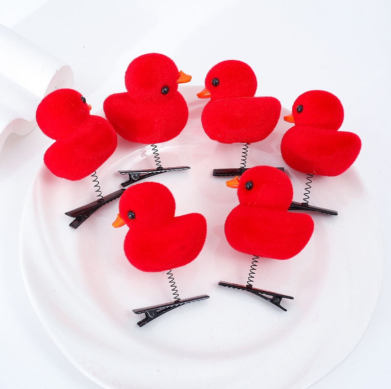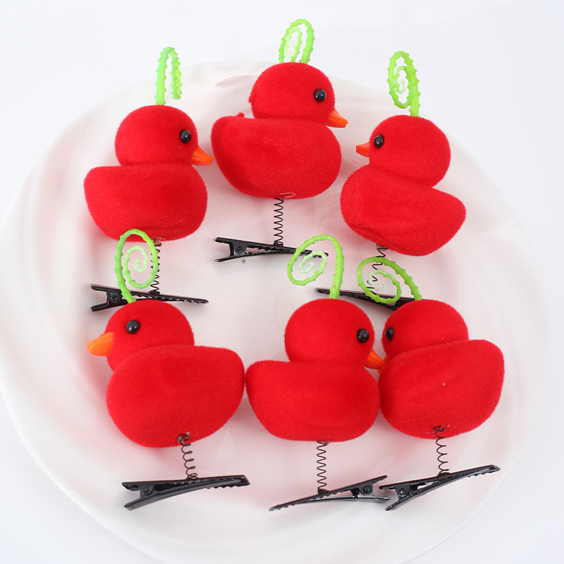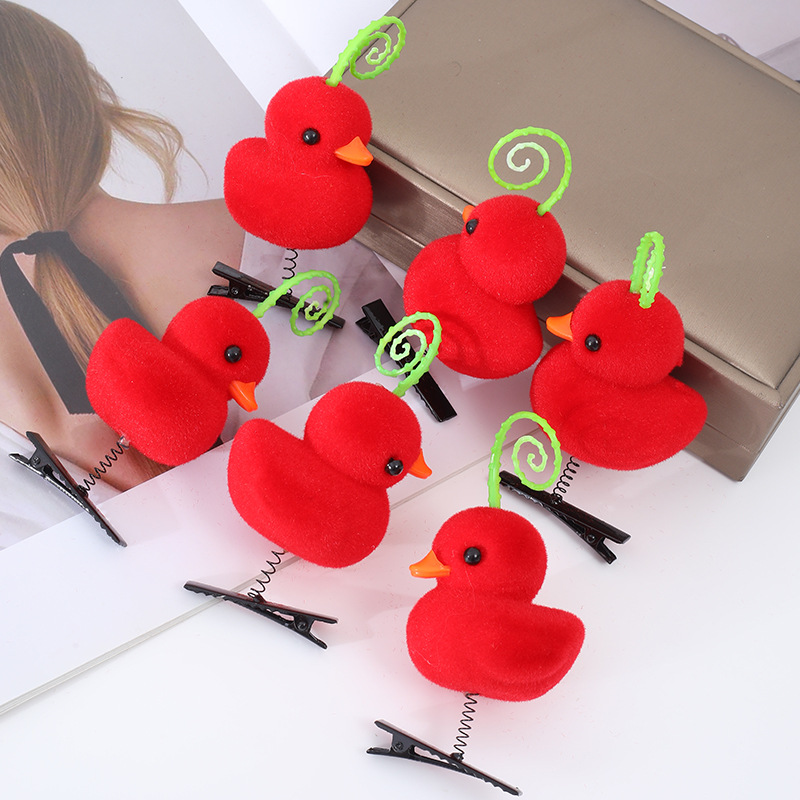卖萌小黄鸭发夹植绒小红鸭弹簧发卡地摊夜市摆摊学生玩具地摊礼品
