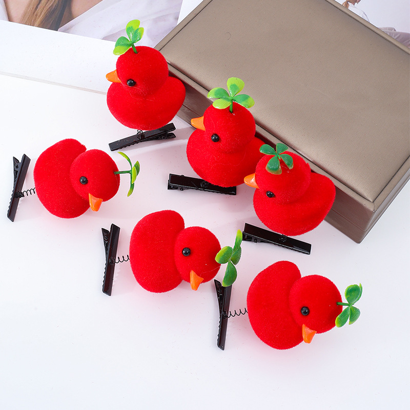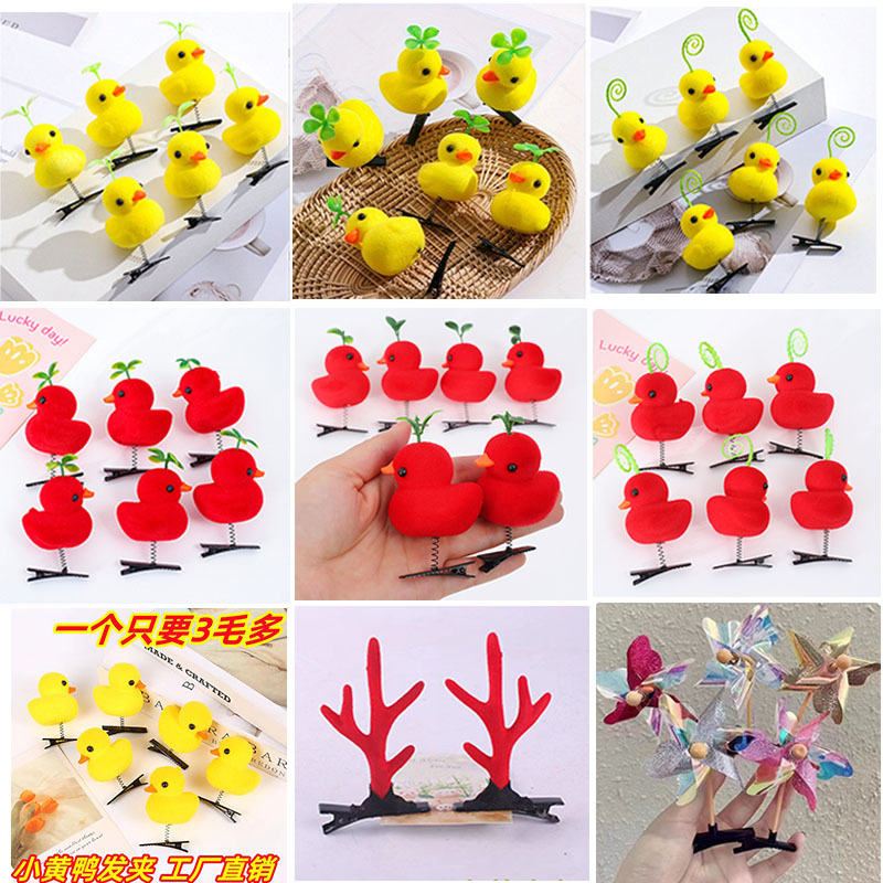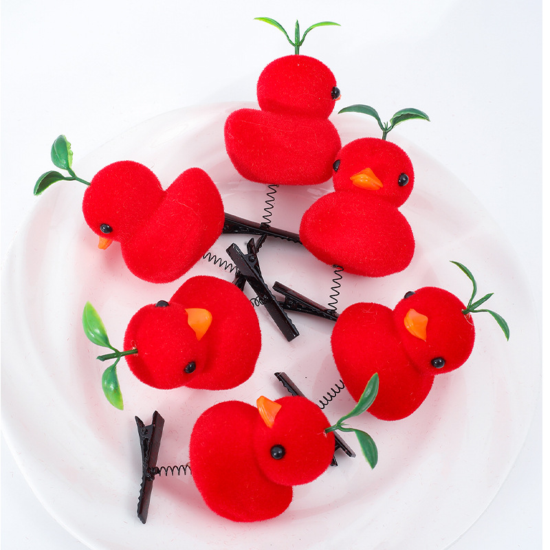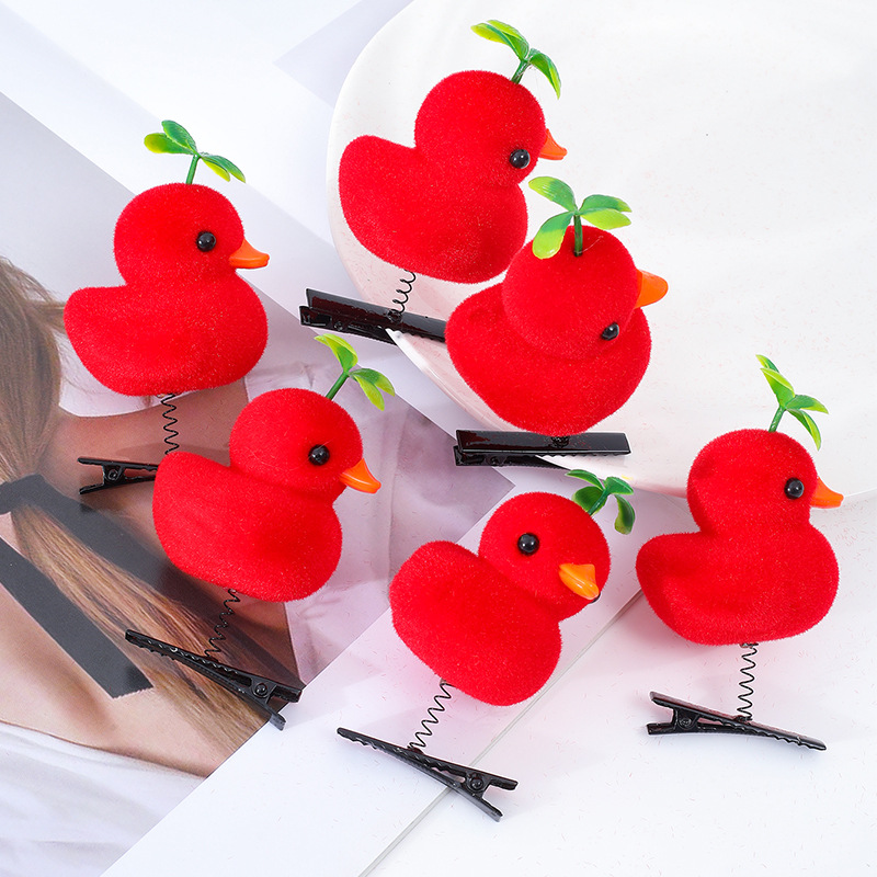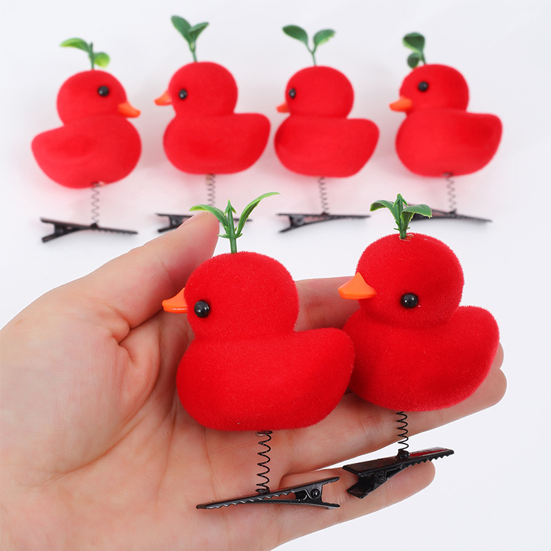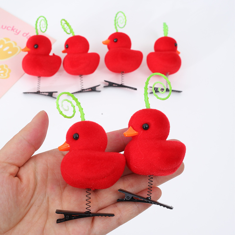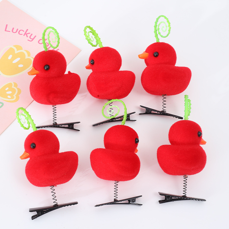 卖萌小黄鸭发夹植绒小红鸭弹簧发卡地摊夜市摆摊学生玩具地摊礼品