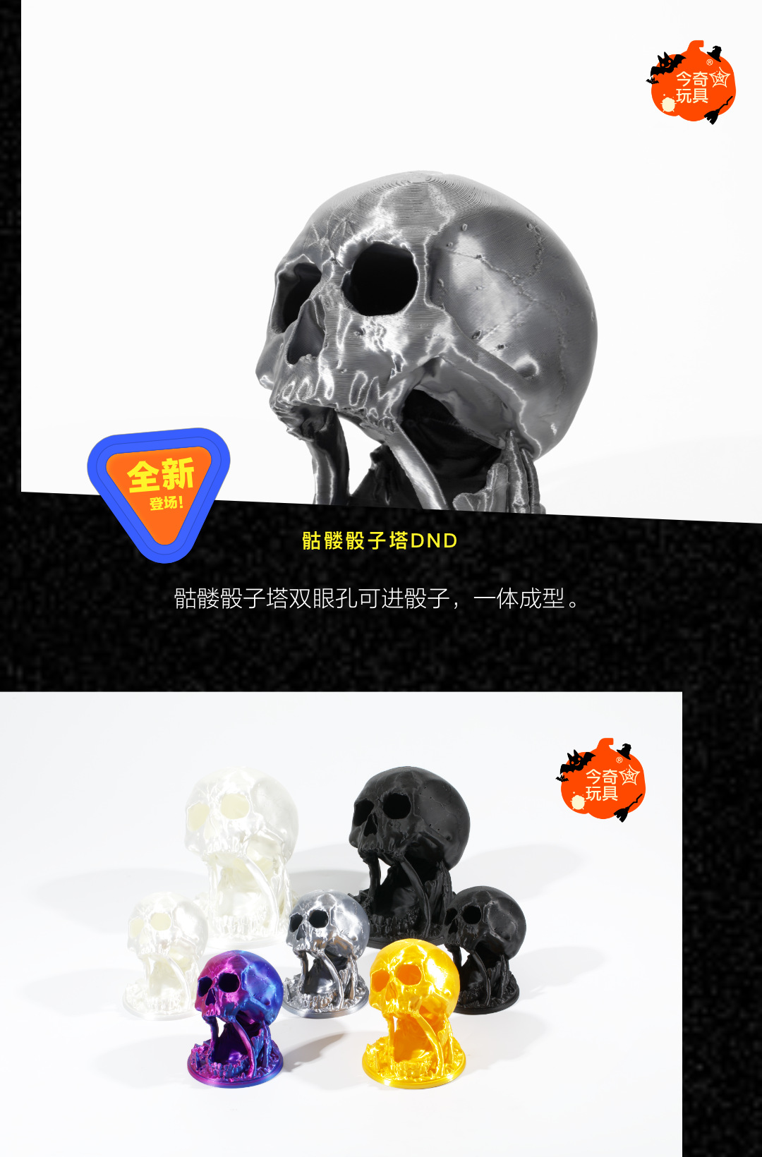 跨境热销3D打印骰子塔套装骷髅龙与地下城新品桌游礼品复古万圣节