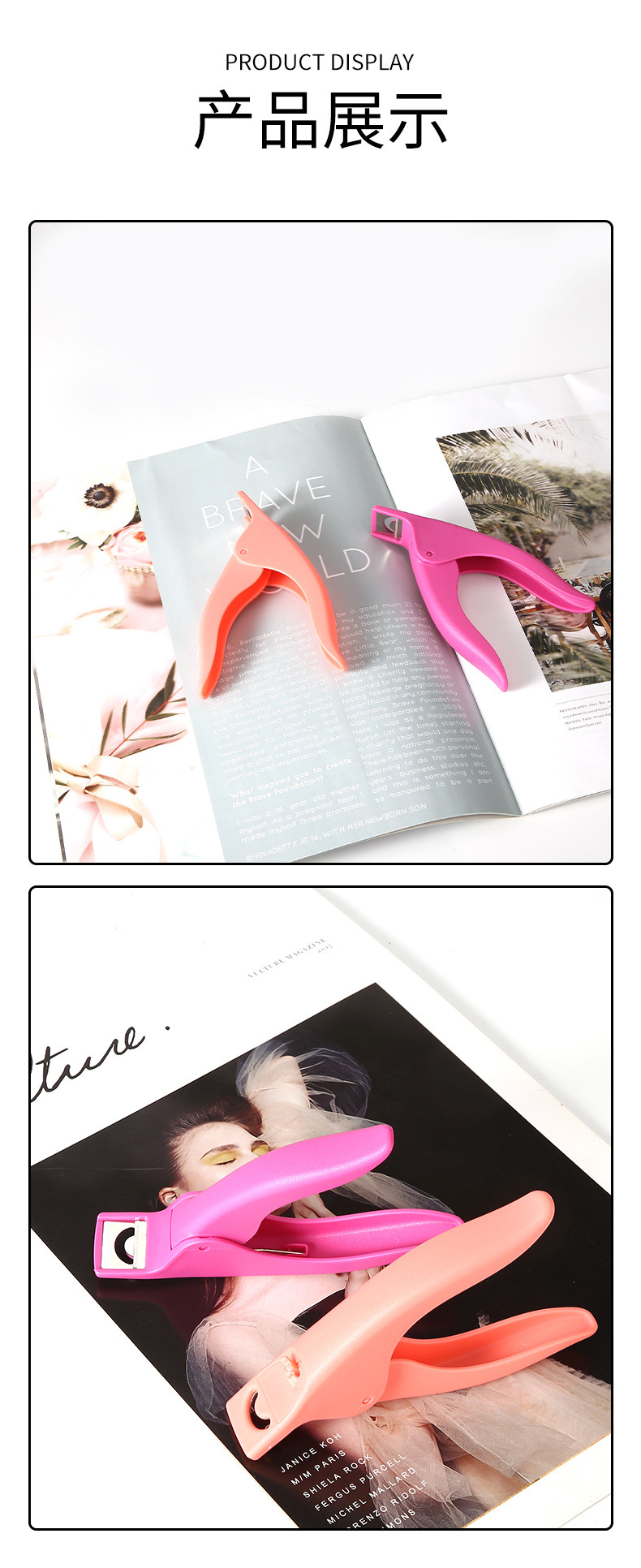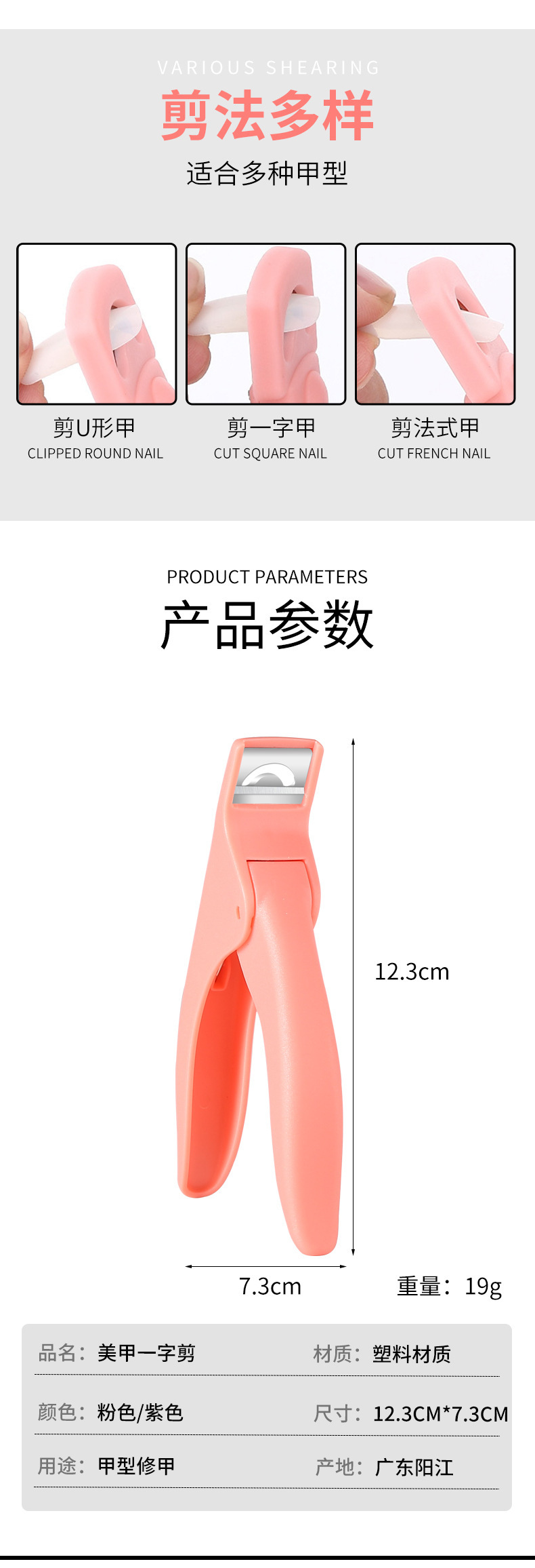 TC14黄卡塑料一字剪甲片剪U型法式指甲剪延长甲修形剪美甲工具