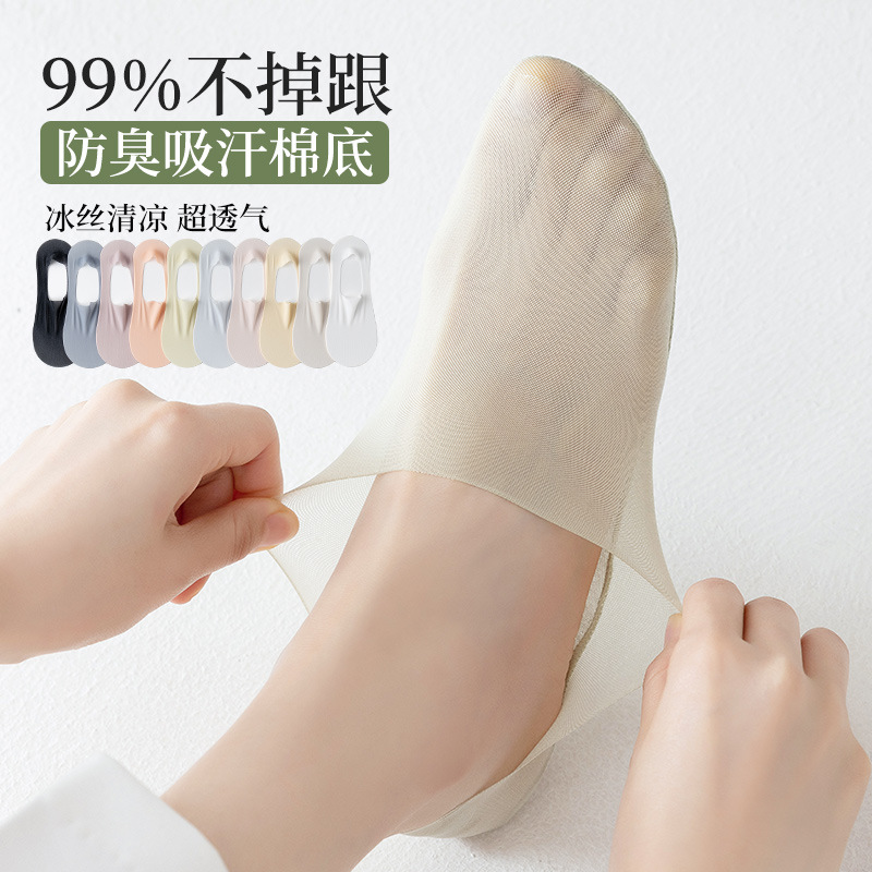 袜子女船袜冰丝隐形袜网眼透气防滑不掉跟纯色百搭简约棉底短筒袜