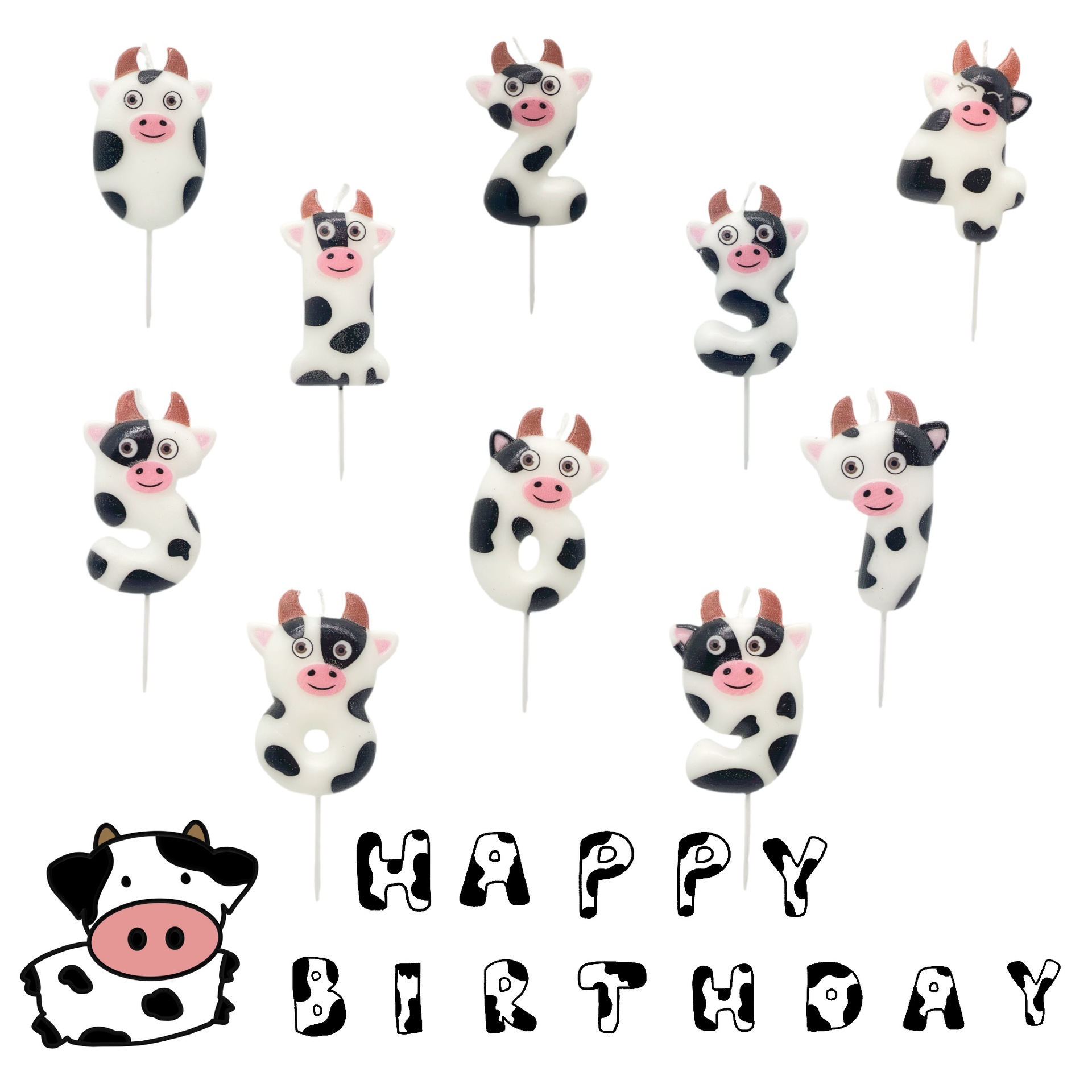 创意奶牛生日蛋糕数字蜡烛派对甜品台装饰摆件卡通可爱大数字插件