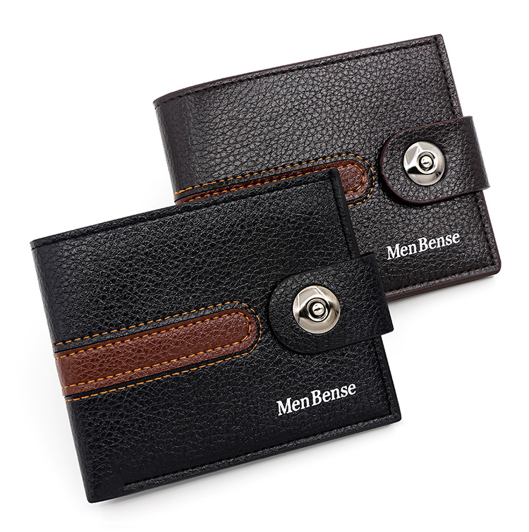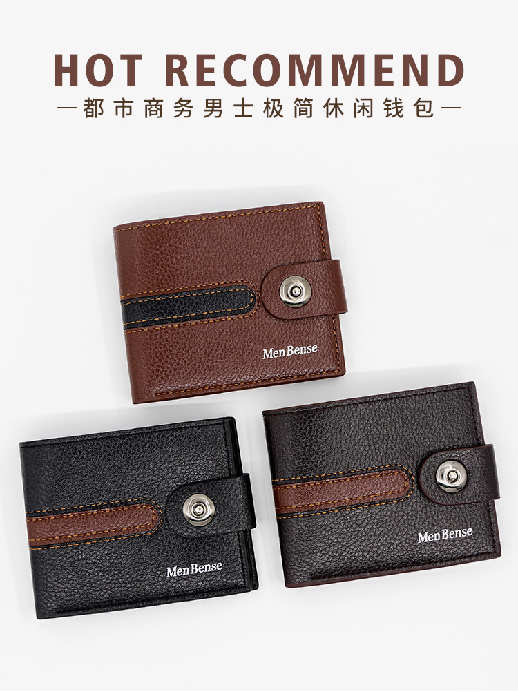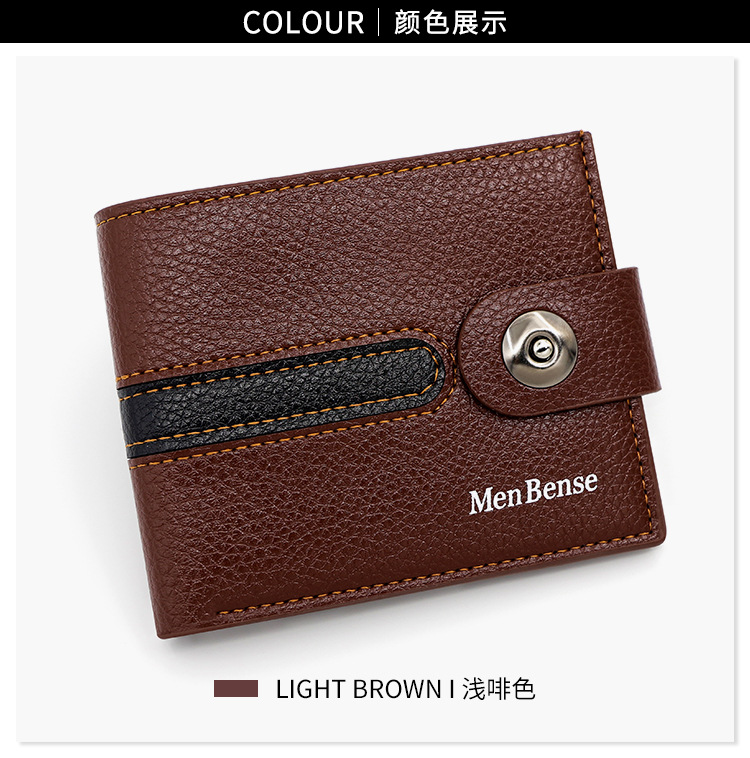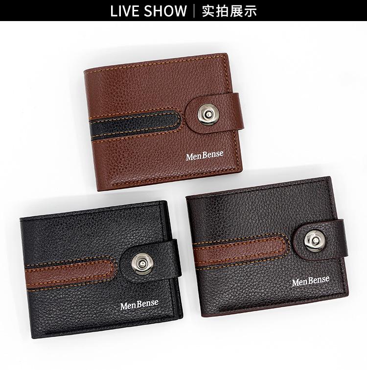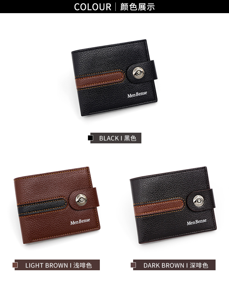 韩版休闲男士短款磁扣钱包时尚大容量拼色多卡位男士钱夹