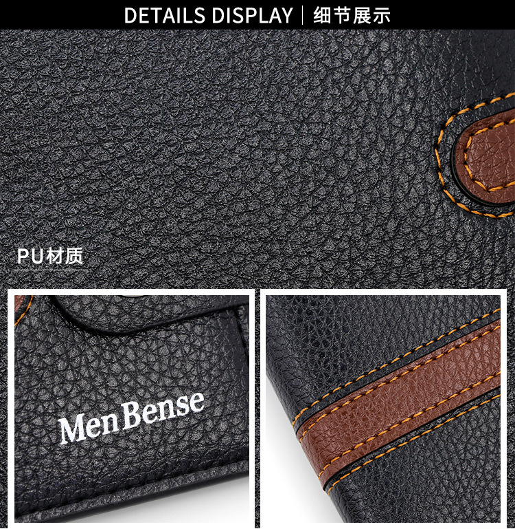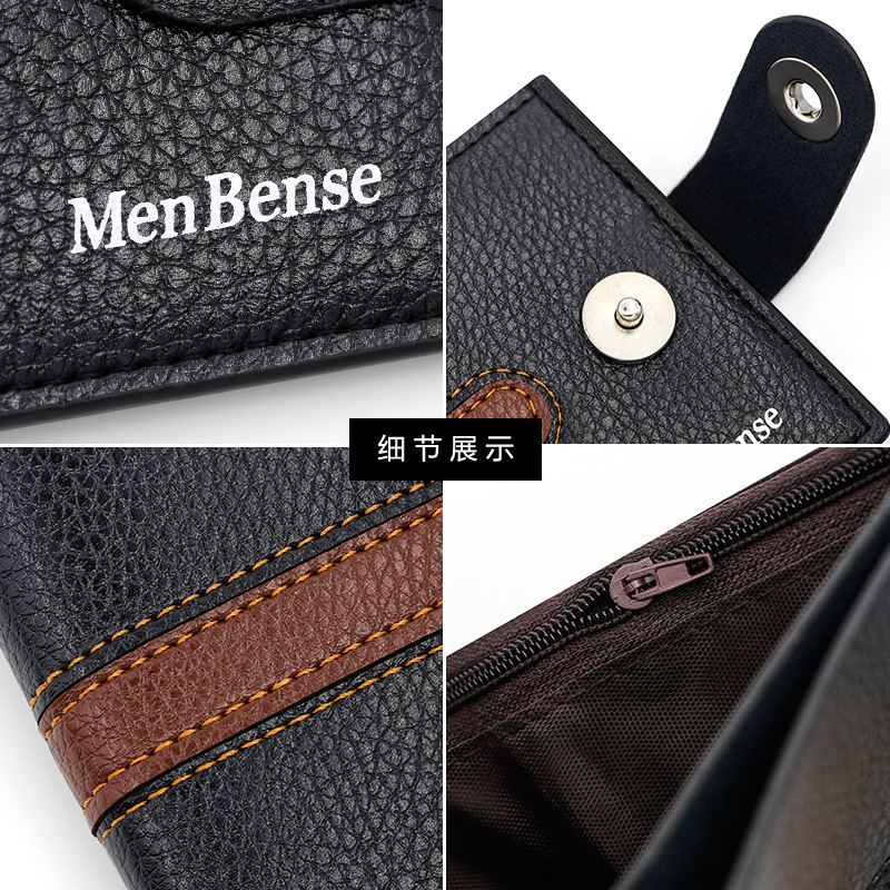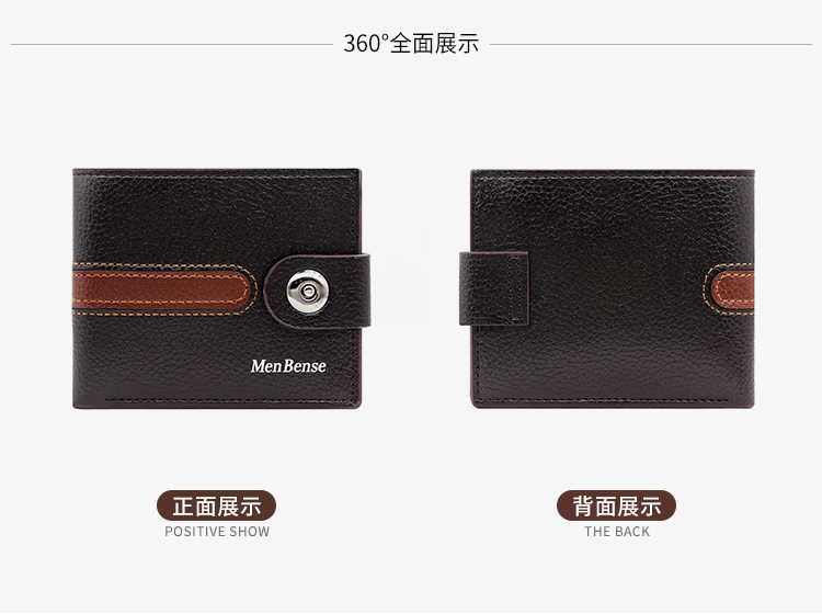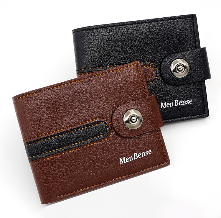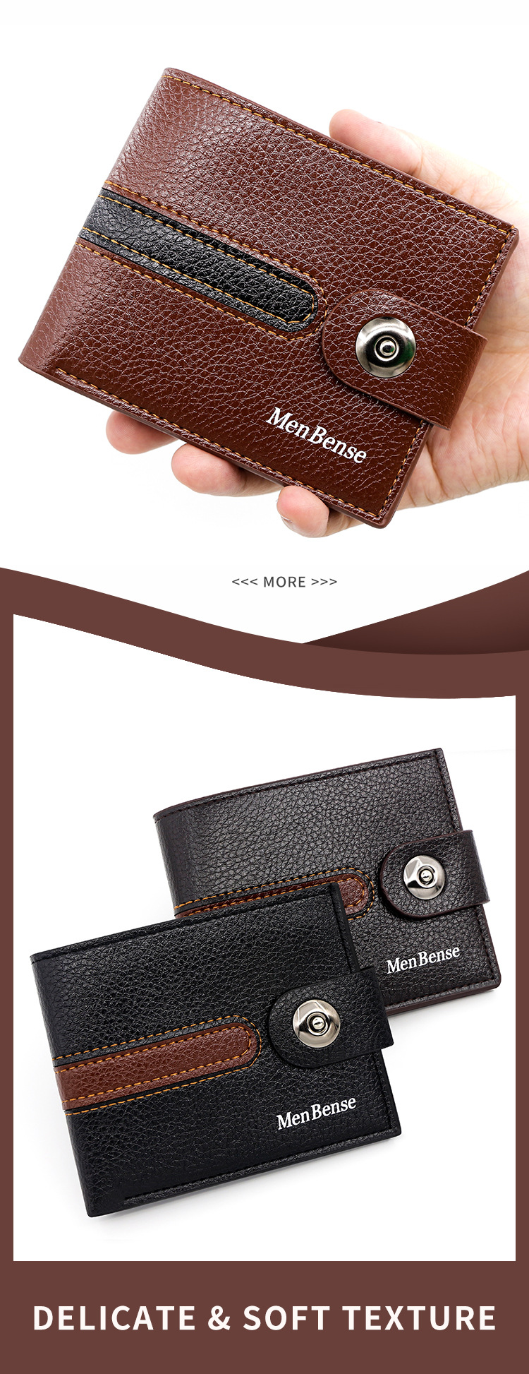 韩版休闲男士短款磁扣钱包时尚大容量拼色多卡位男士钱夹