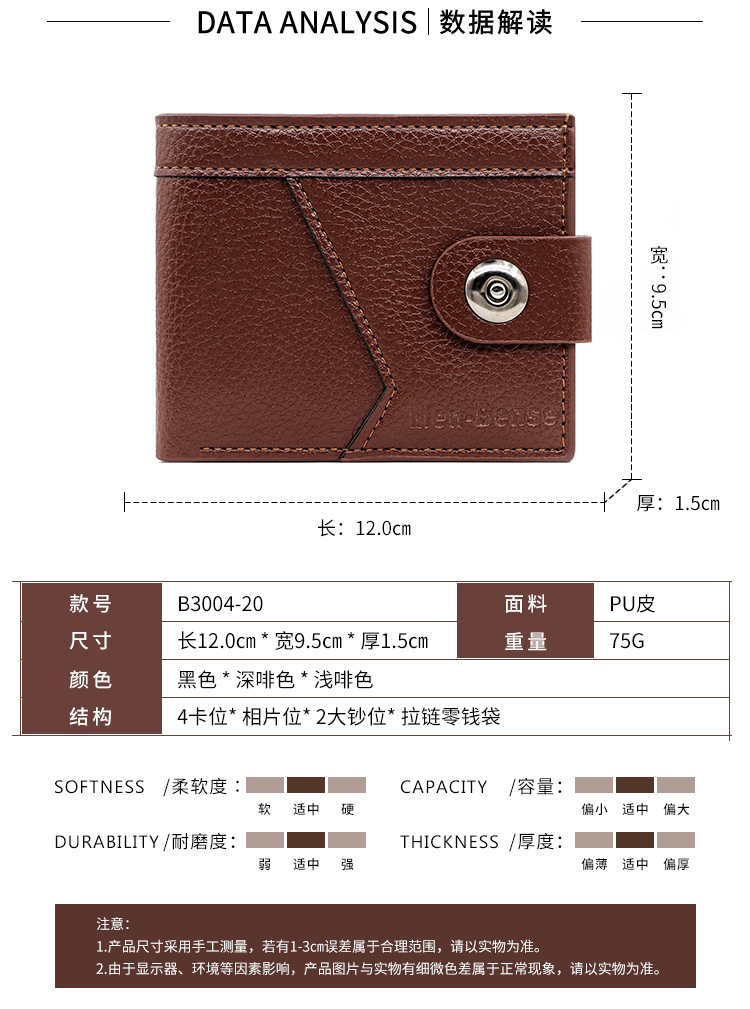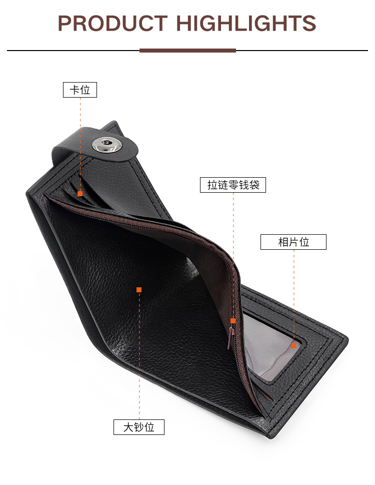新款男士钱包韩版休闲男士短款磁扣钱包时尚大容量多卡位男士钱夹