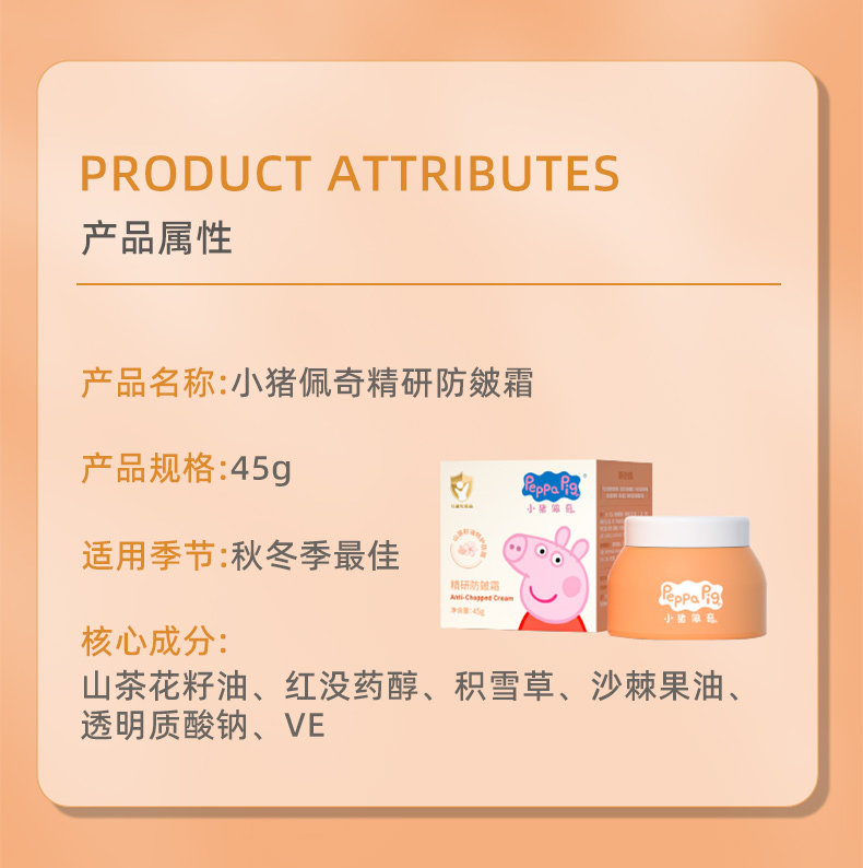 小猪佩奇婴儿面霜幼儿专用舒缓干裂补水保湿滋润霜宝宝防皴霜45g